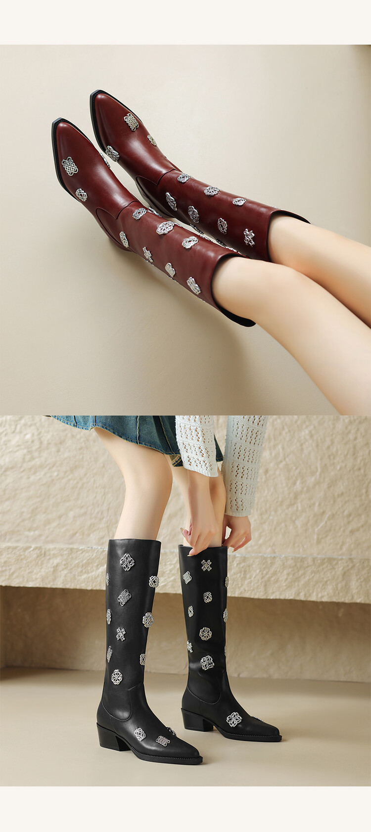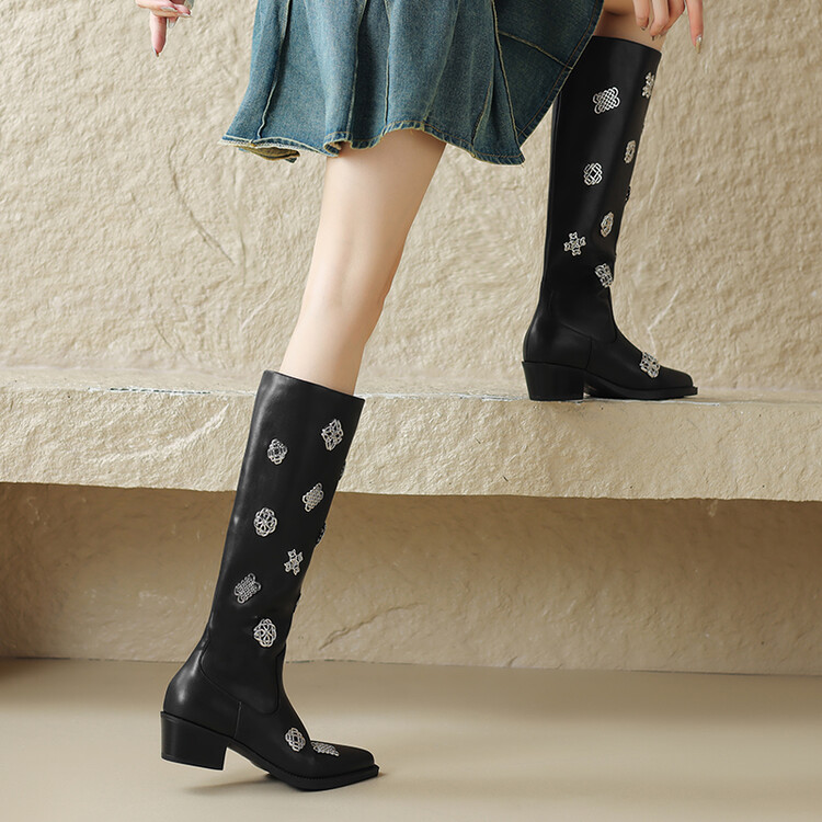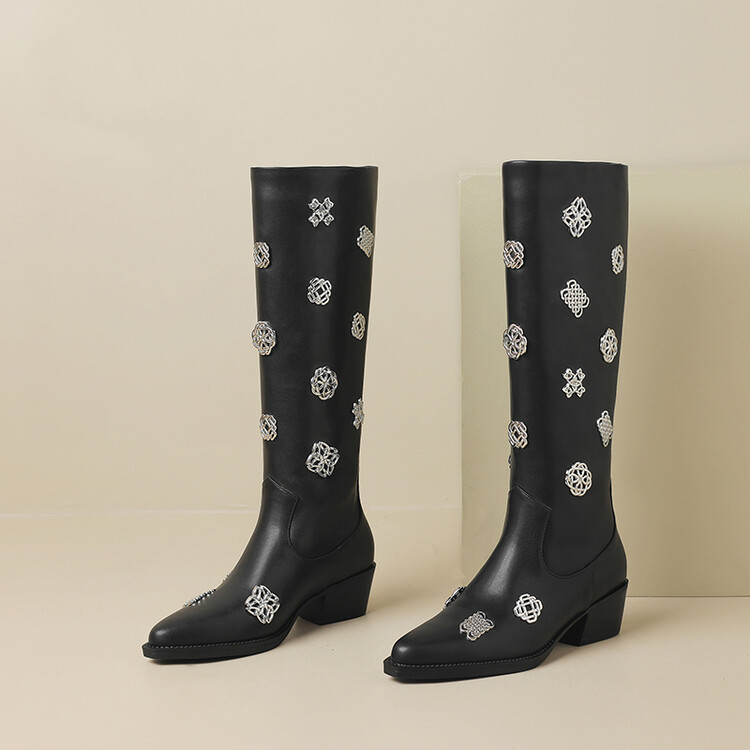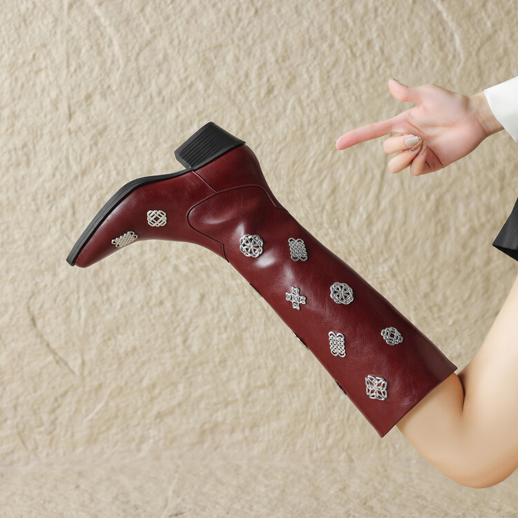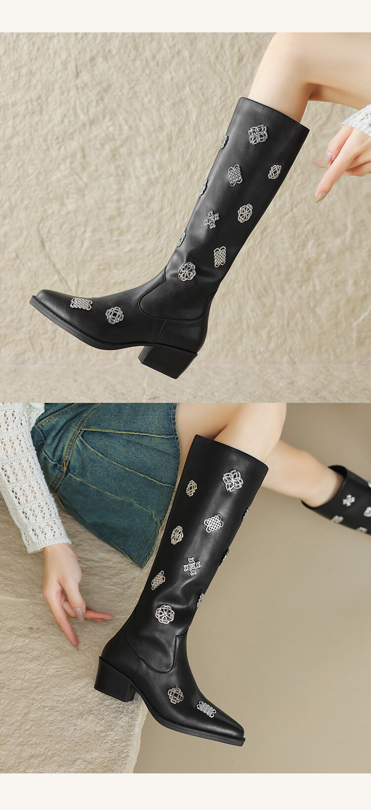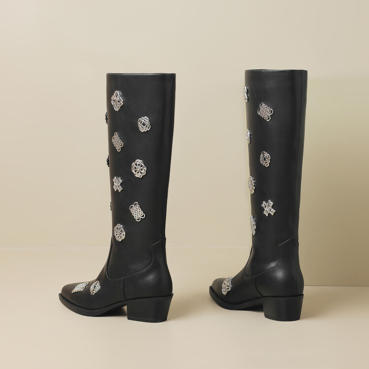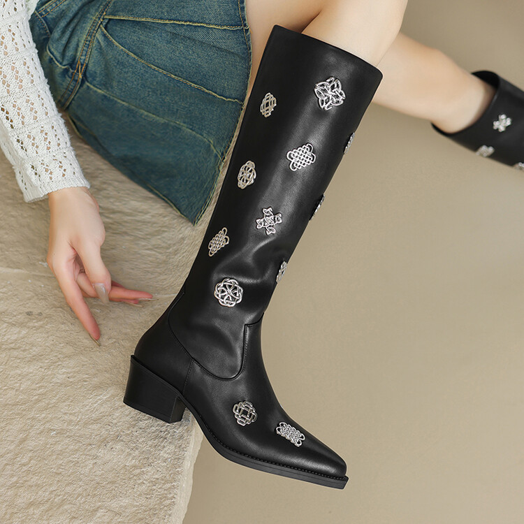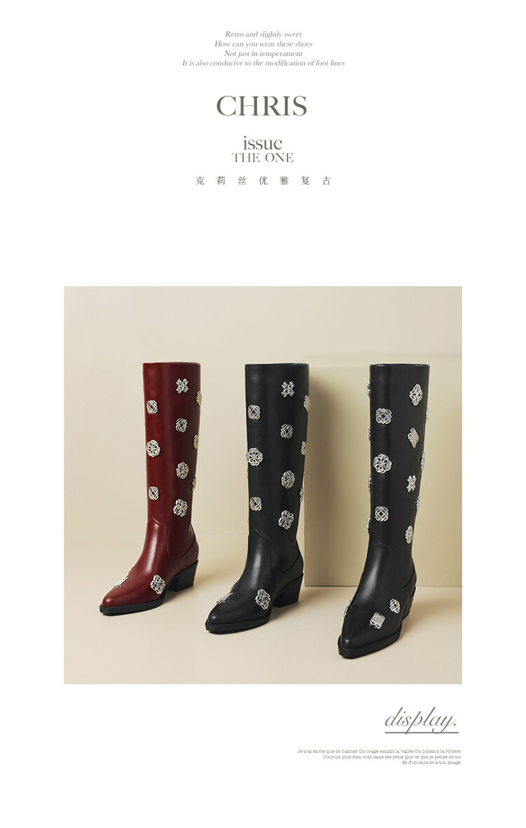 冬季新款,时尚复古风金属装饰长靴CZ-2329-3