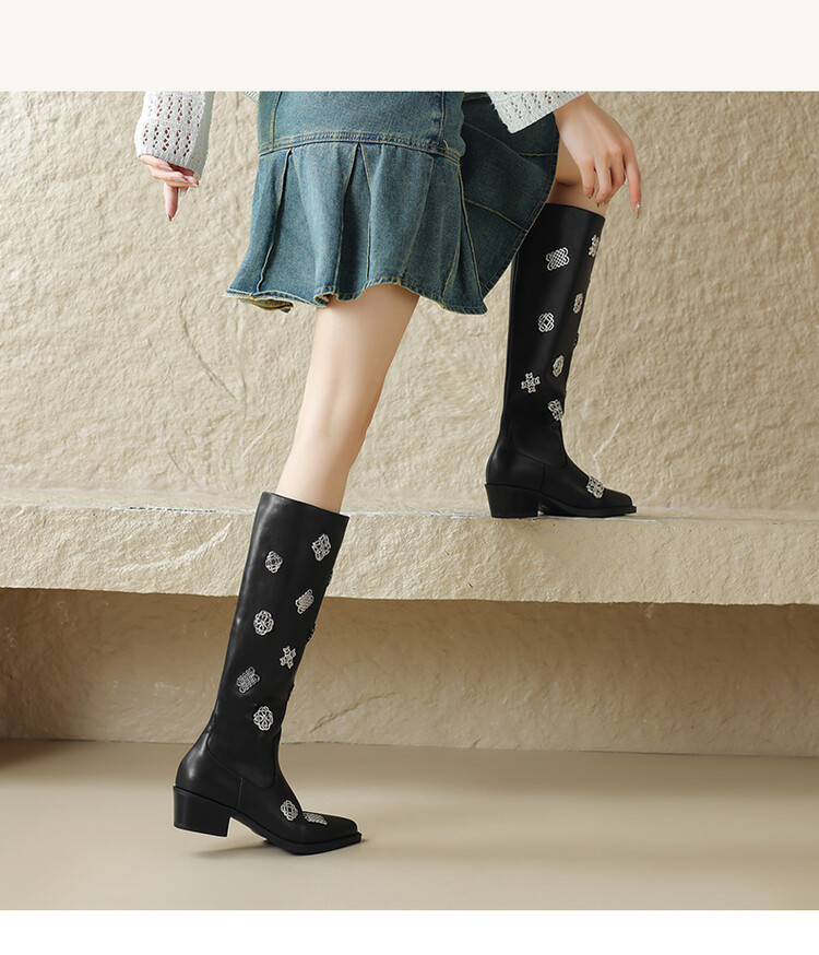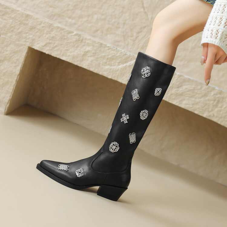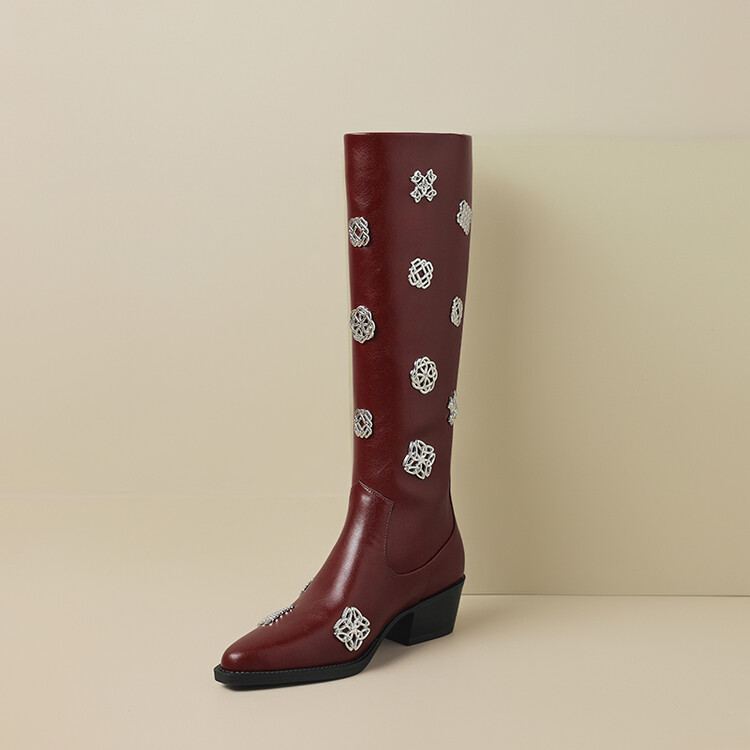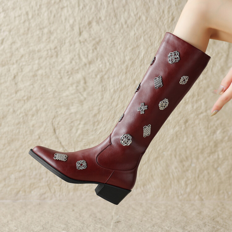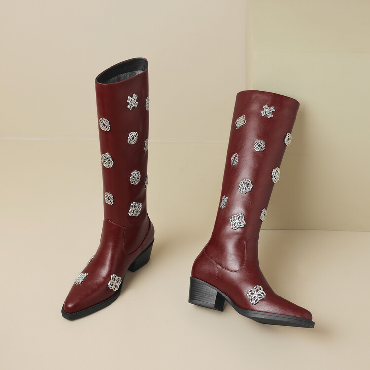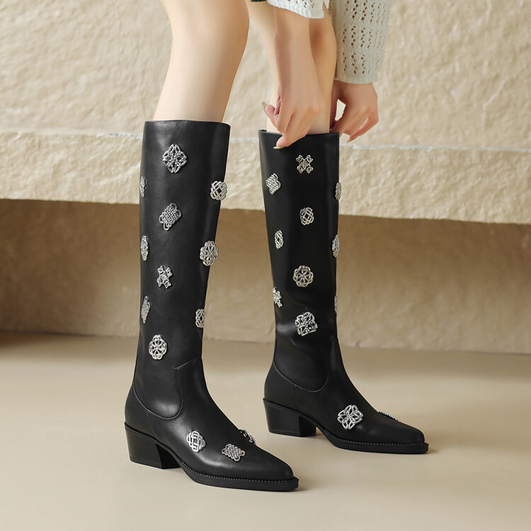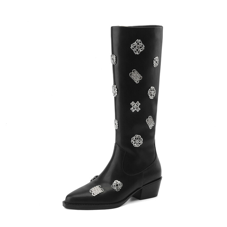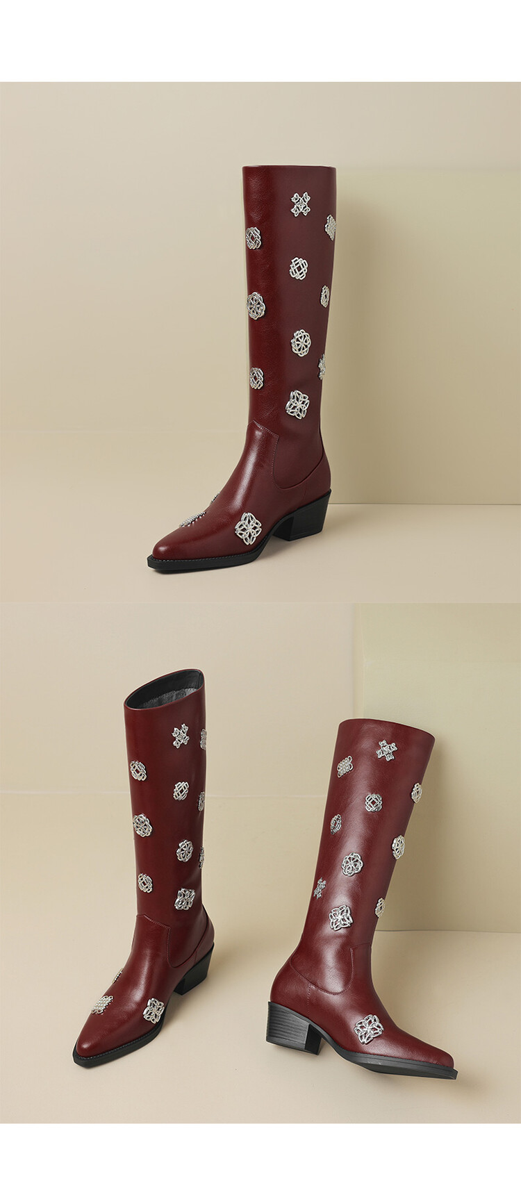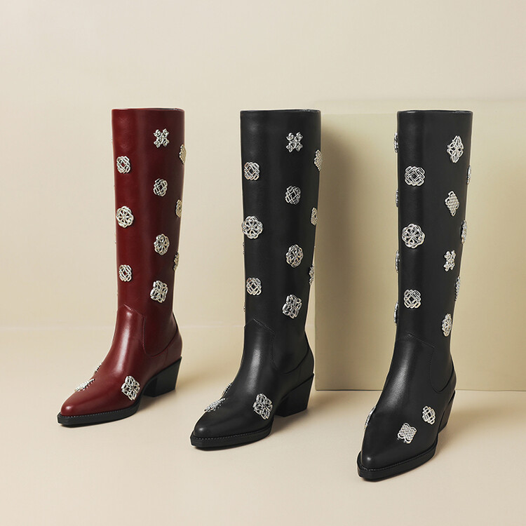 冬季新款,时尚复古风金属装饰长靴CZ-2329-3