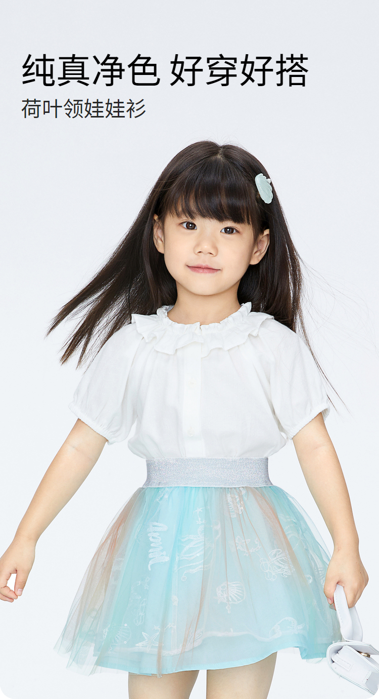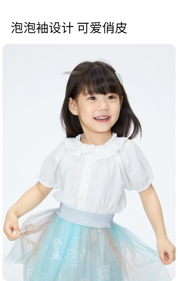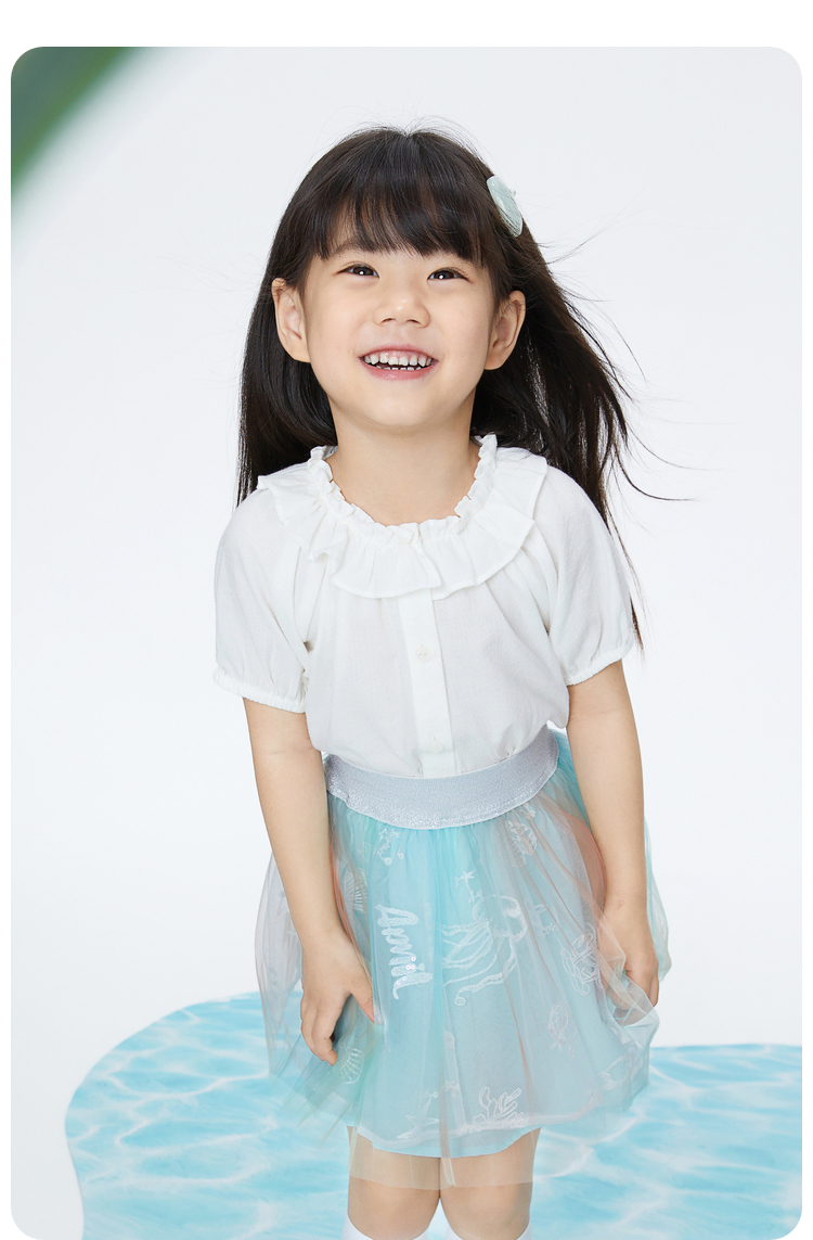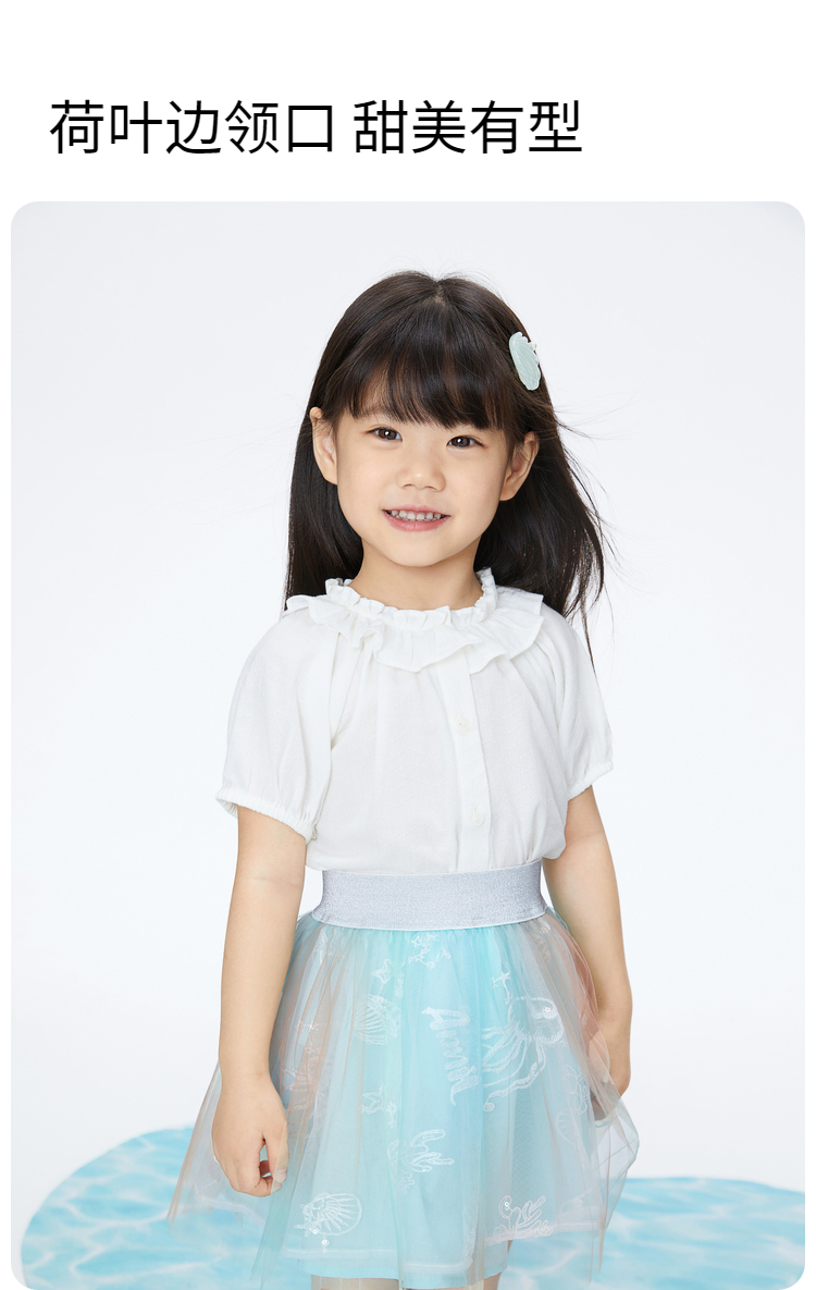 【实体店同款】女童净色荷叶领短袖上衣夏季新款安奈儿童装XG421715