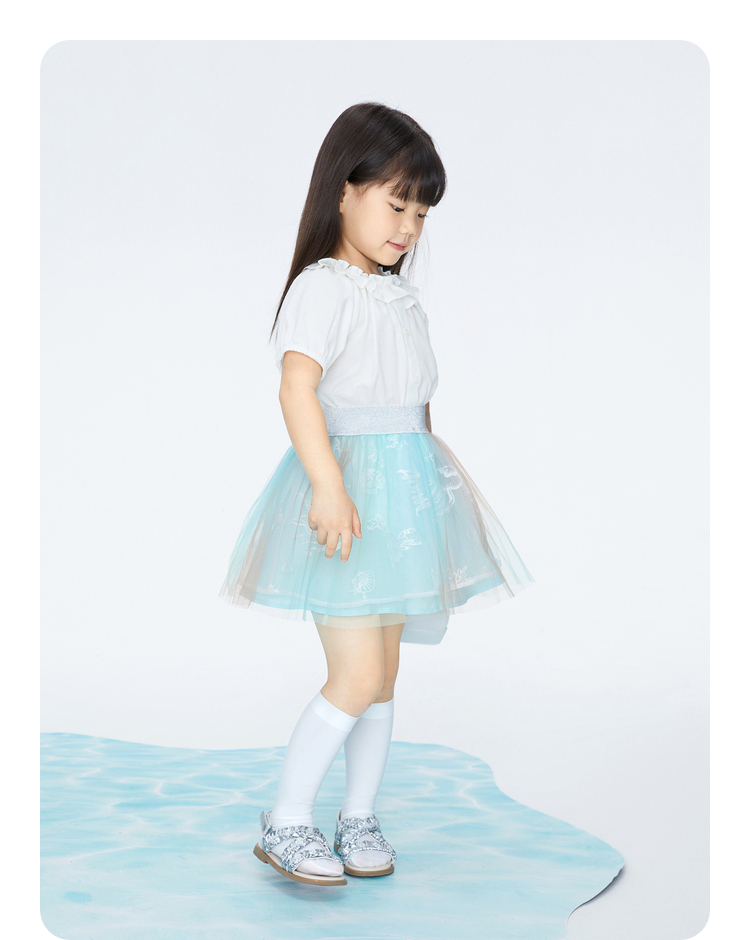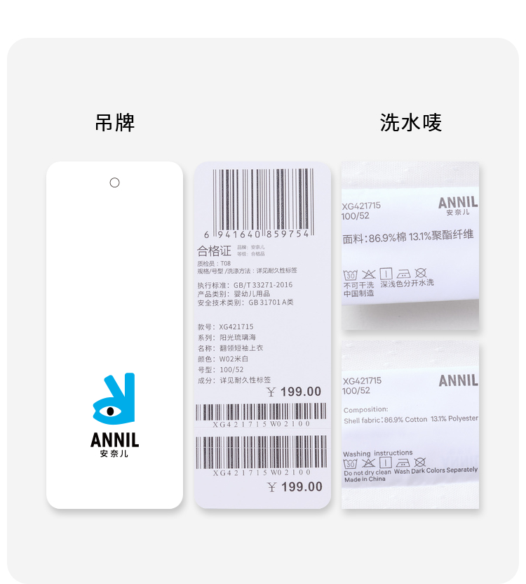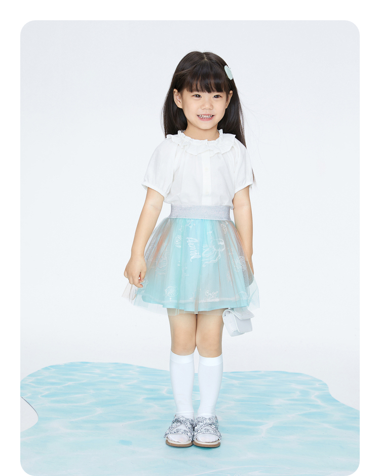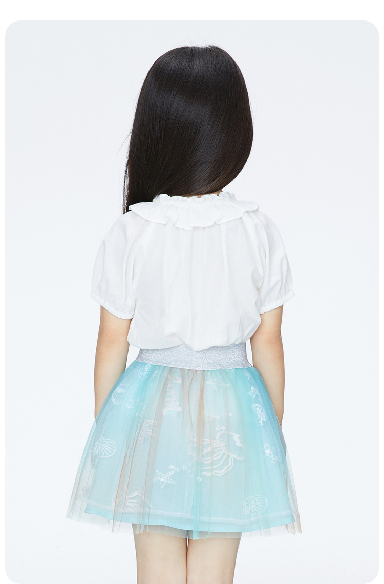 【实体店同款】女童净色荷叶领短袖上衣夏季新款安奈儿童装XG421715
