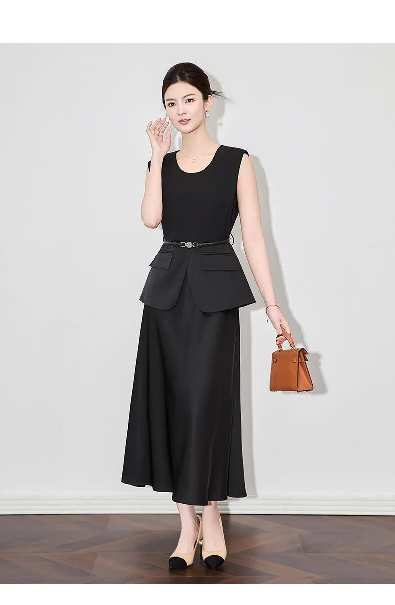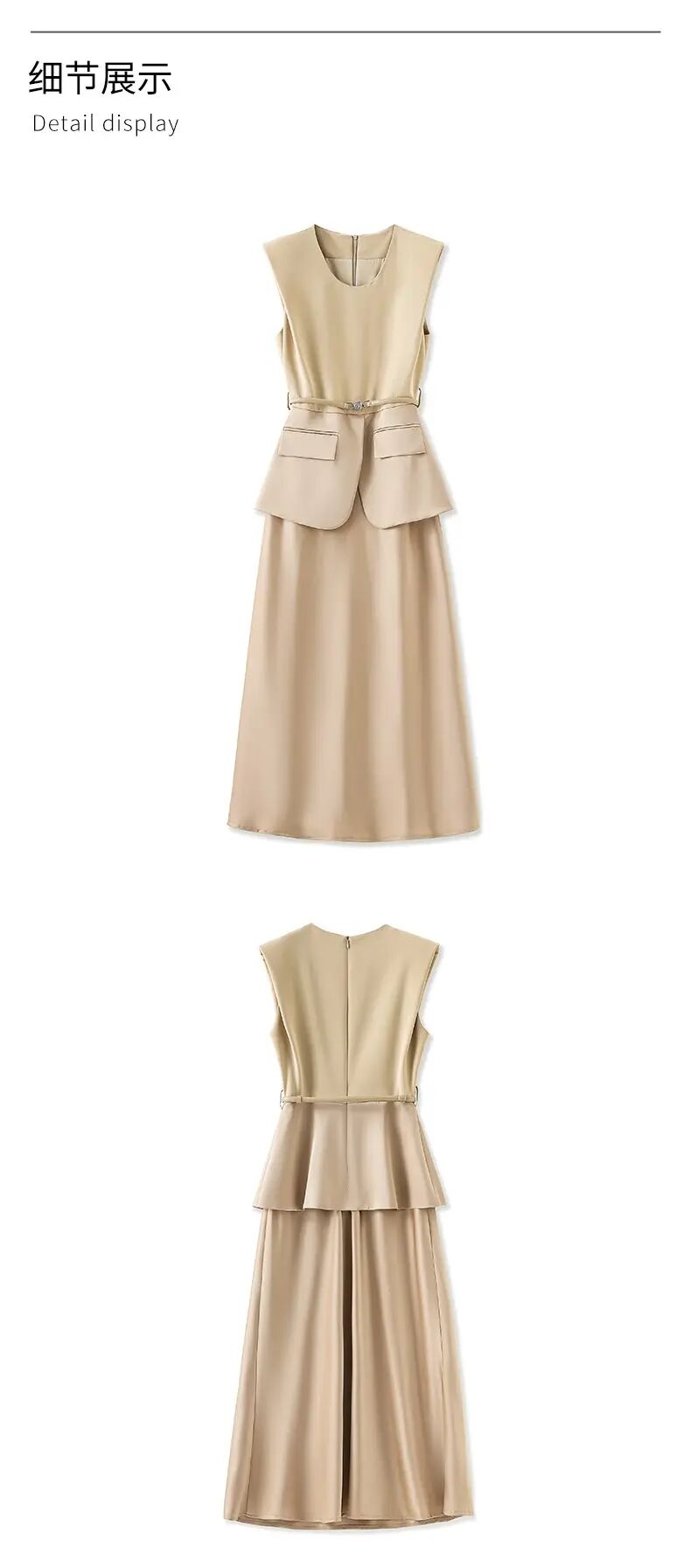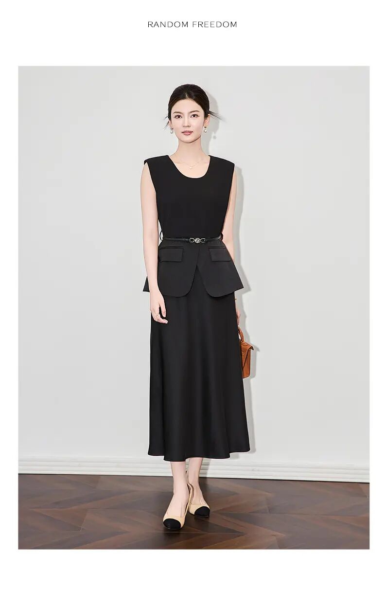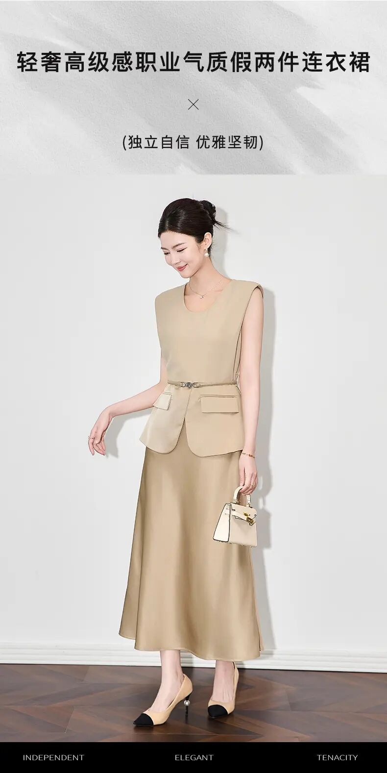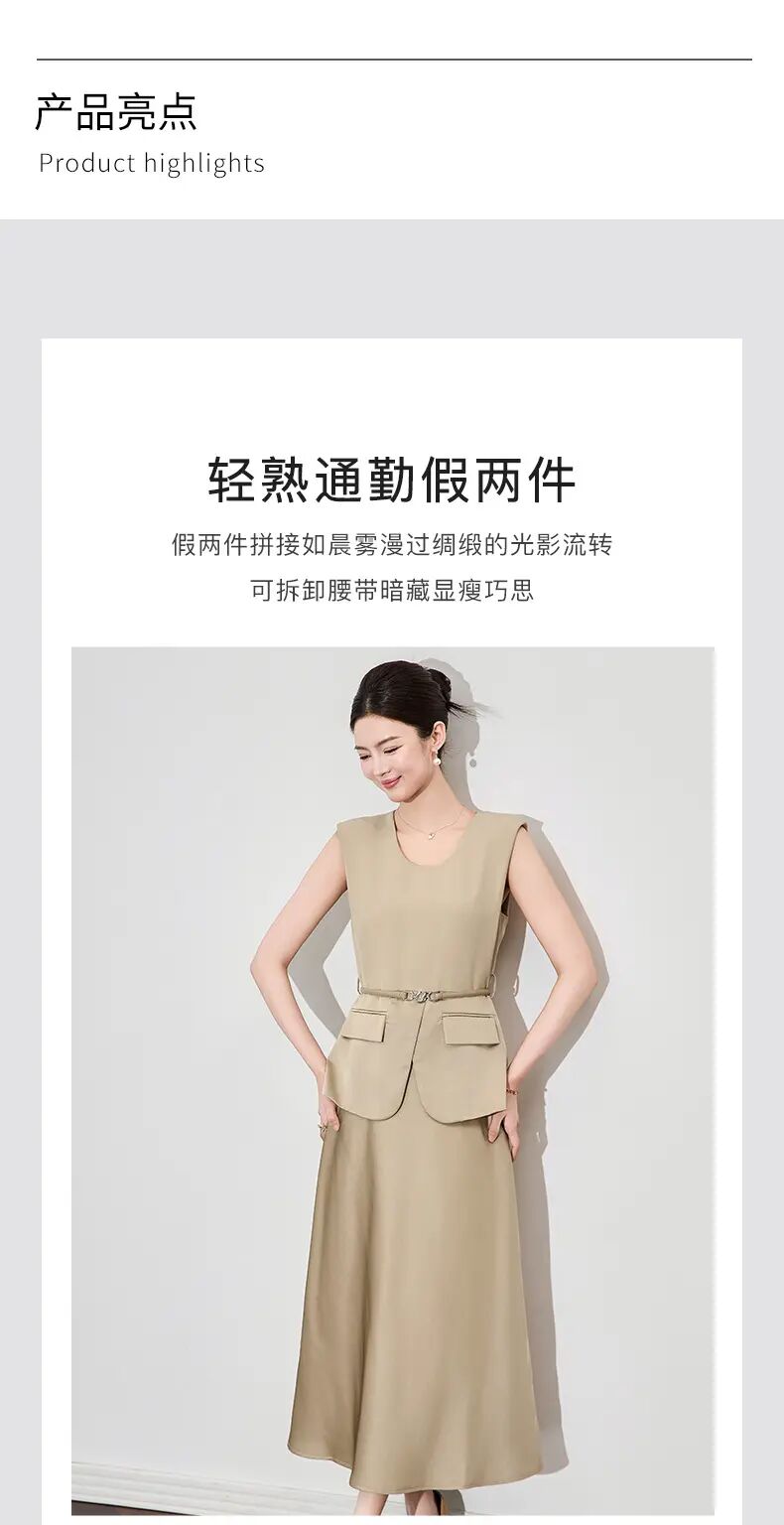 「高货wl」全新升级【铂金会员358/天猫479/差价121】(99513)洛诗琳轻熟风气质假两件连衣裙2025夏季无袖醋酸缎收腰裙子99513