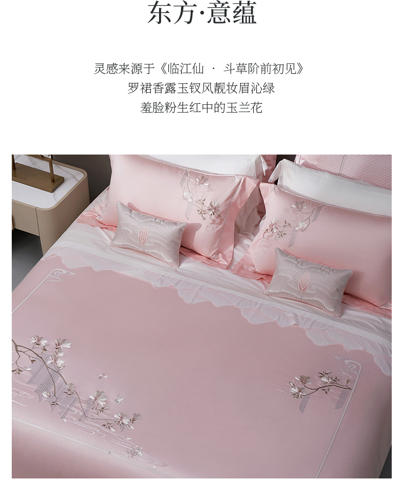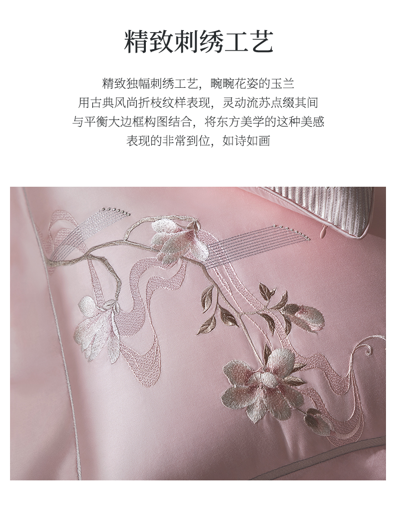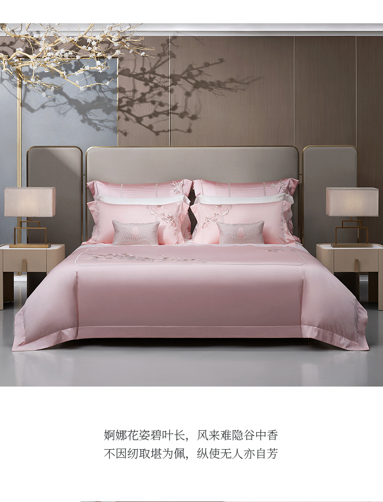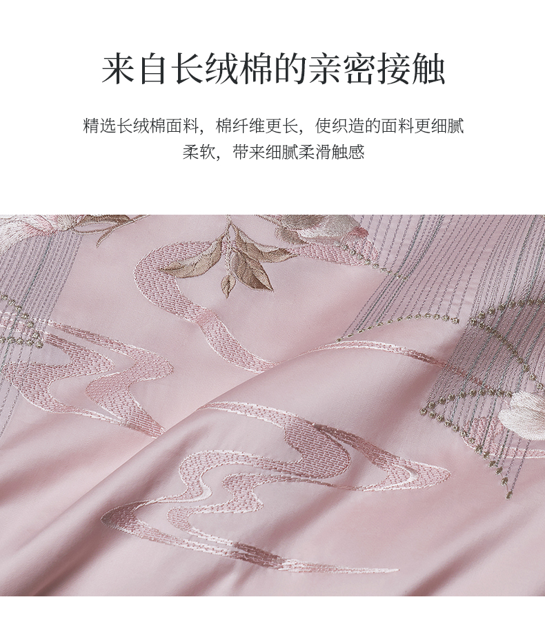 whinny/惠谊 新中式婉约100S新疆长绒棉全棉绣花四件套 香露