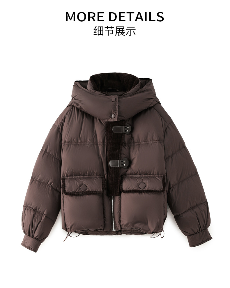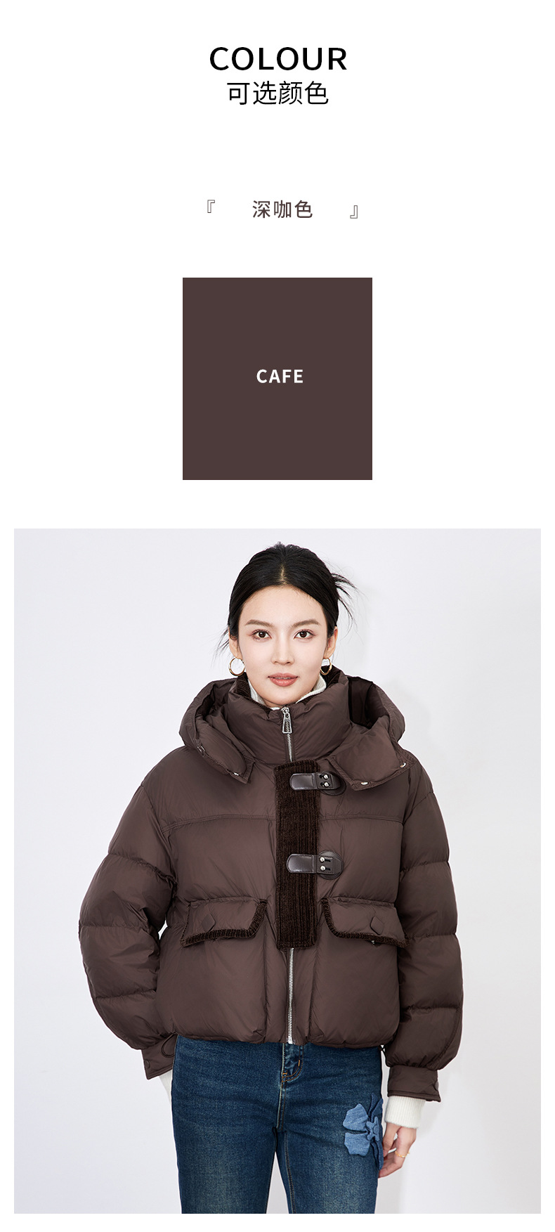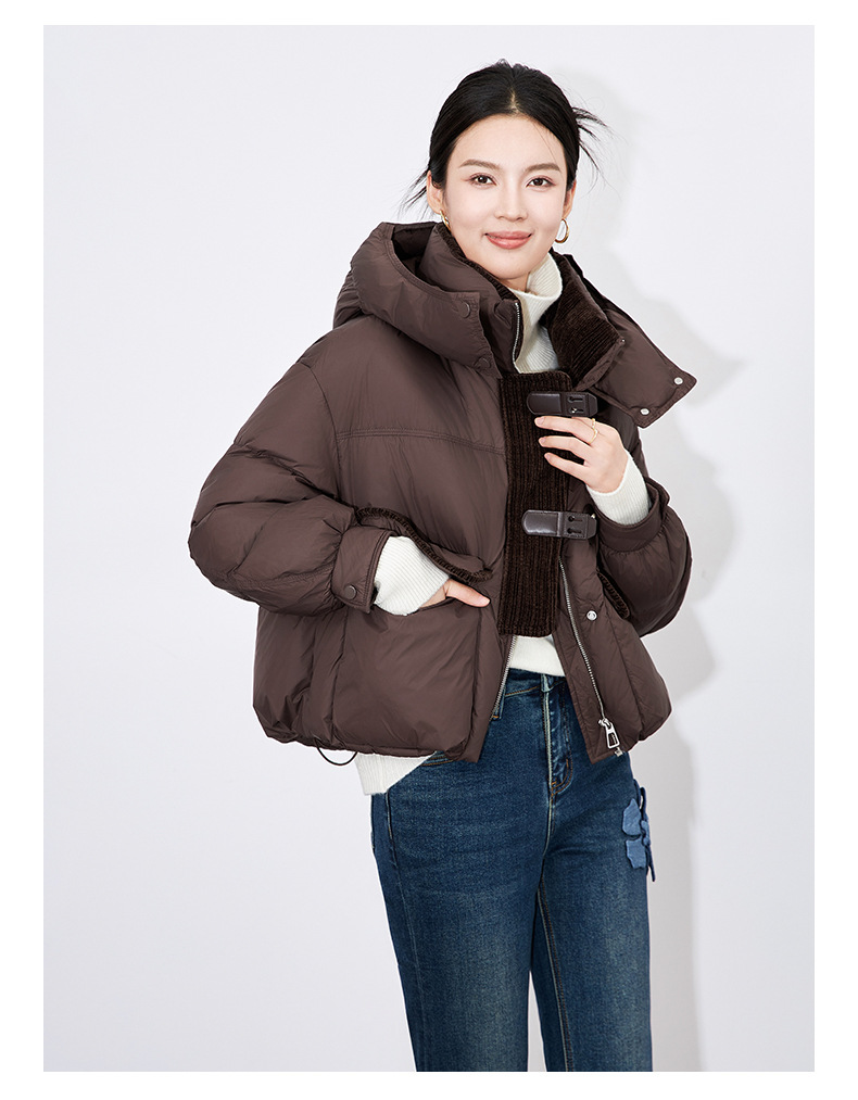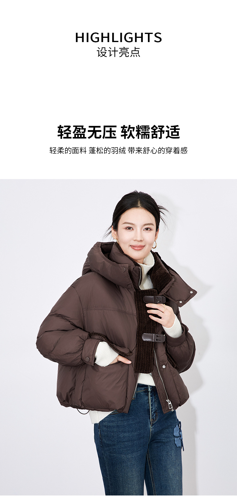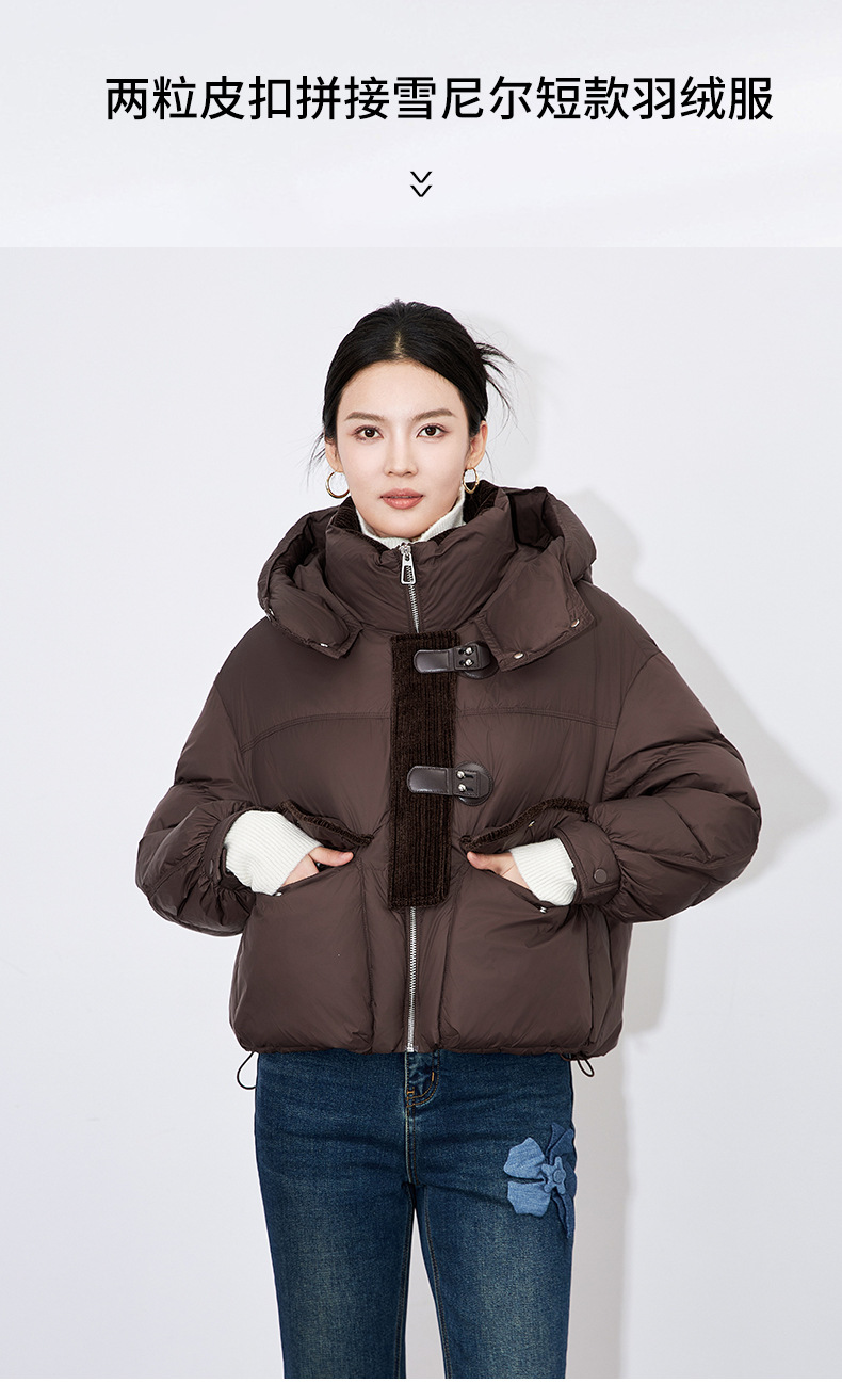 【高货wl】全新升级【铂金会员477/天猫639/差价162】(80935) 洛诗琳冬季短款立领连帽时尚休闲面包服保暖加厚羽绒服女