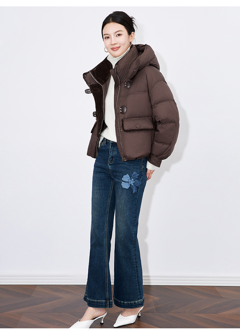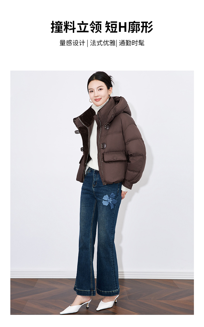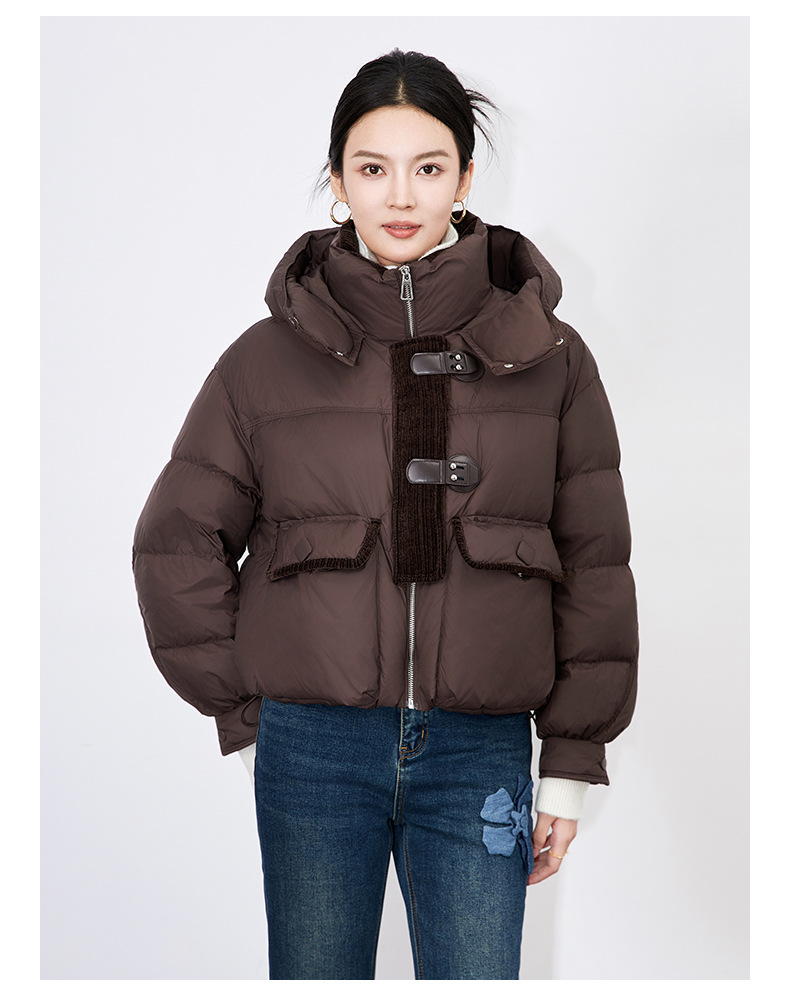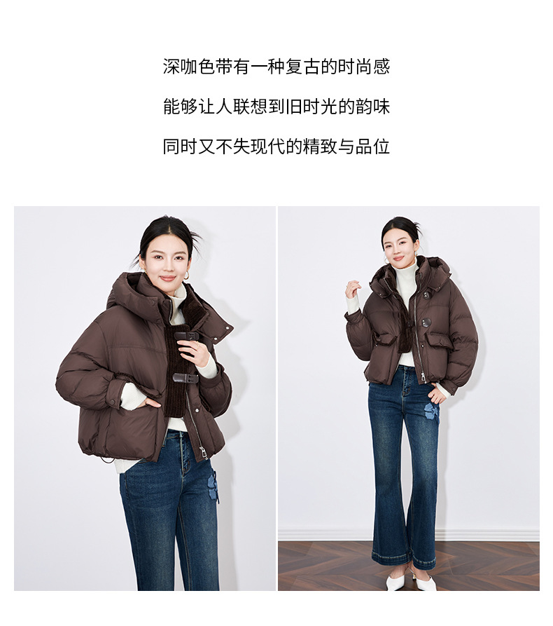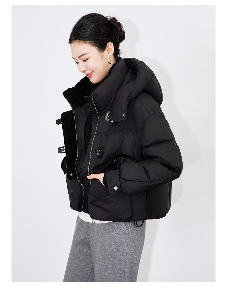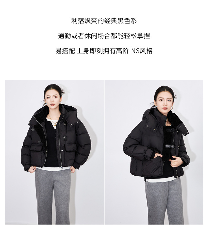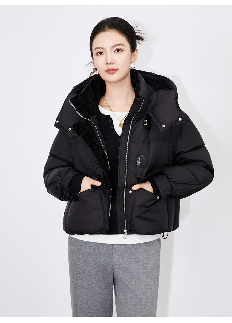【高货wl】全新升级【铂金会员477/天猫639/差价162】(80935) 洛诗琳冬季短款立领连帽时尚休闲面包服保暖加厚羽绒服女