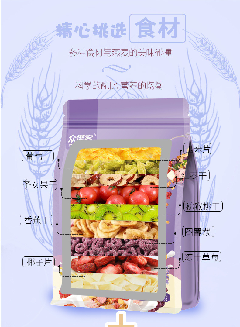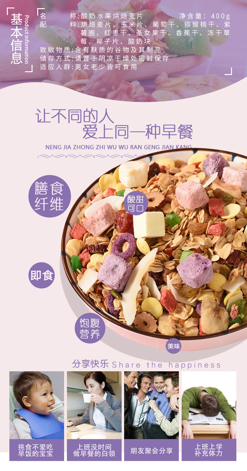 【膳食纤维!方便即食】众懒客新款酸奶麦片水果燕麦片烘焙果粒燕麦代餐即食.xa