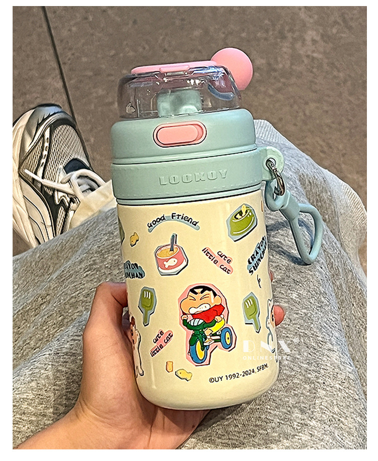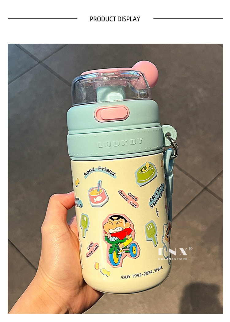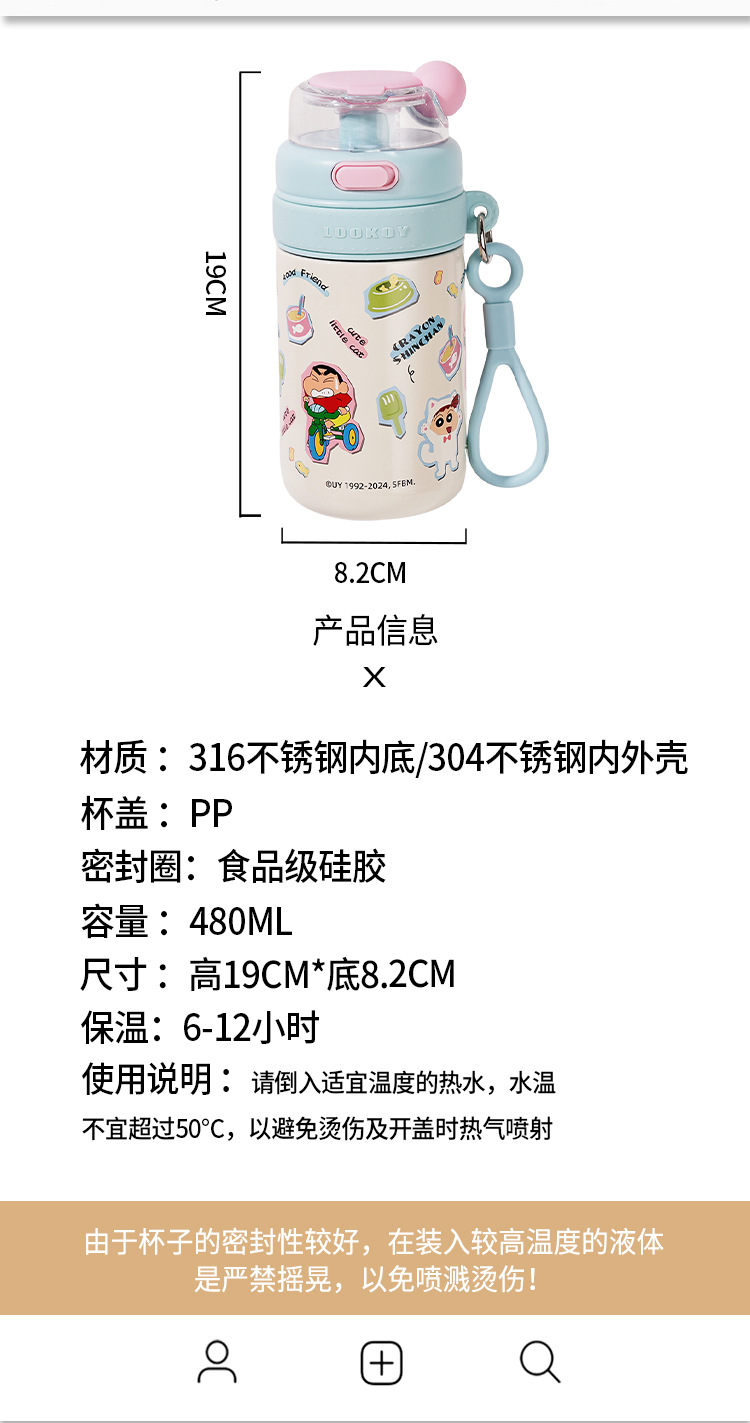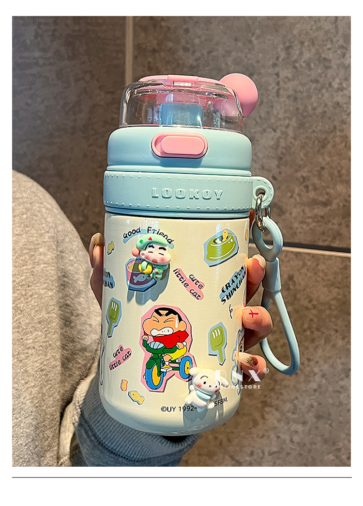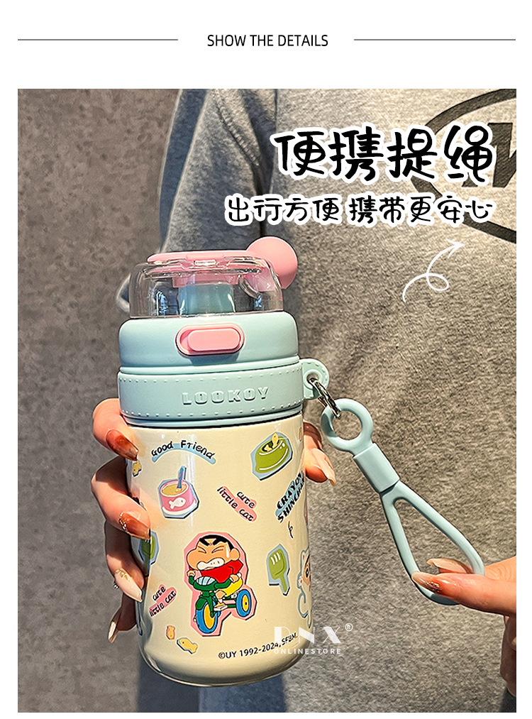 【创意保温杯,清新可爱设计】蜡笔小新可爱创意保温杯 女生不锈钢水杯 儿童吸管杯 男女生户外水杯 情侣礼物-QQ