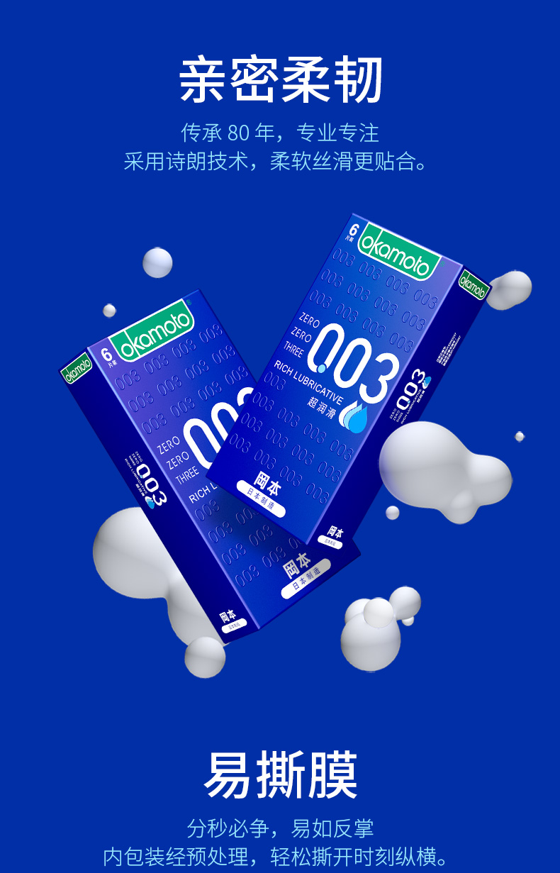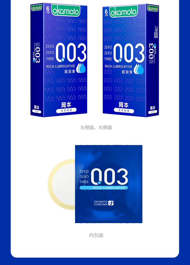 【0.03薄+超量润滑】冈本OK避孕套-0.03超润滑 3/6/10只