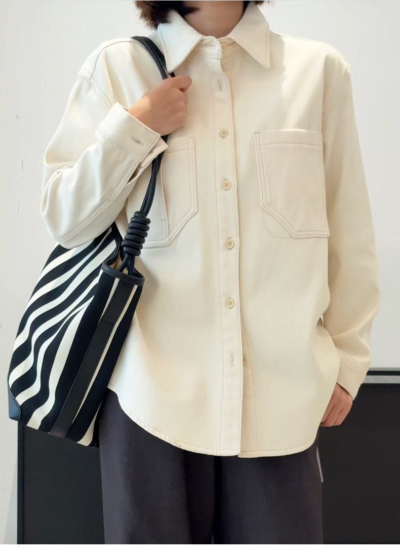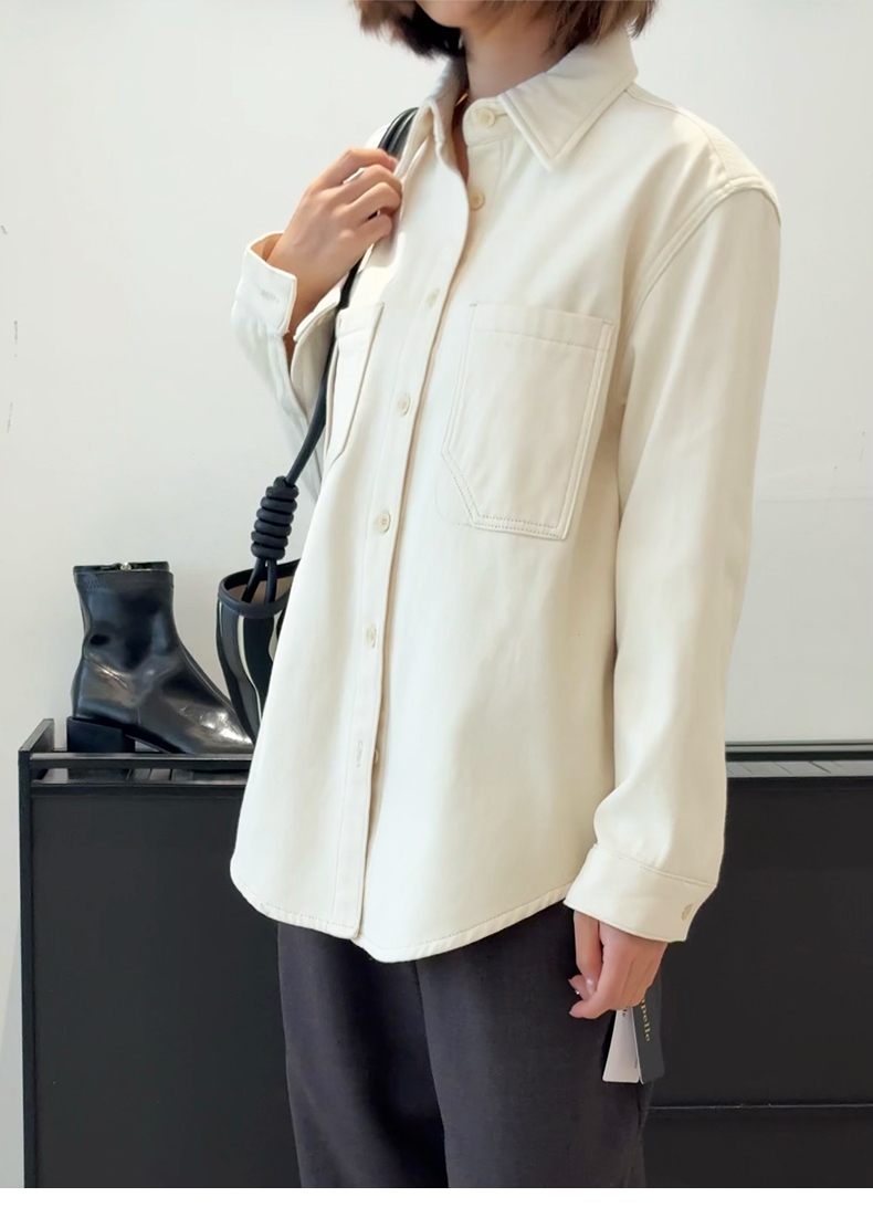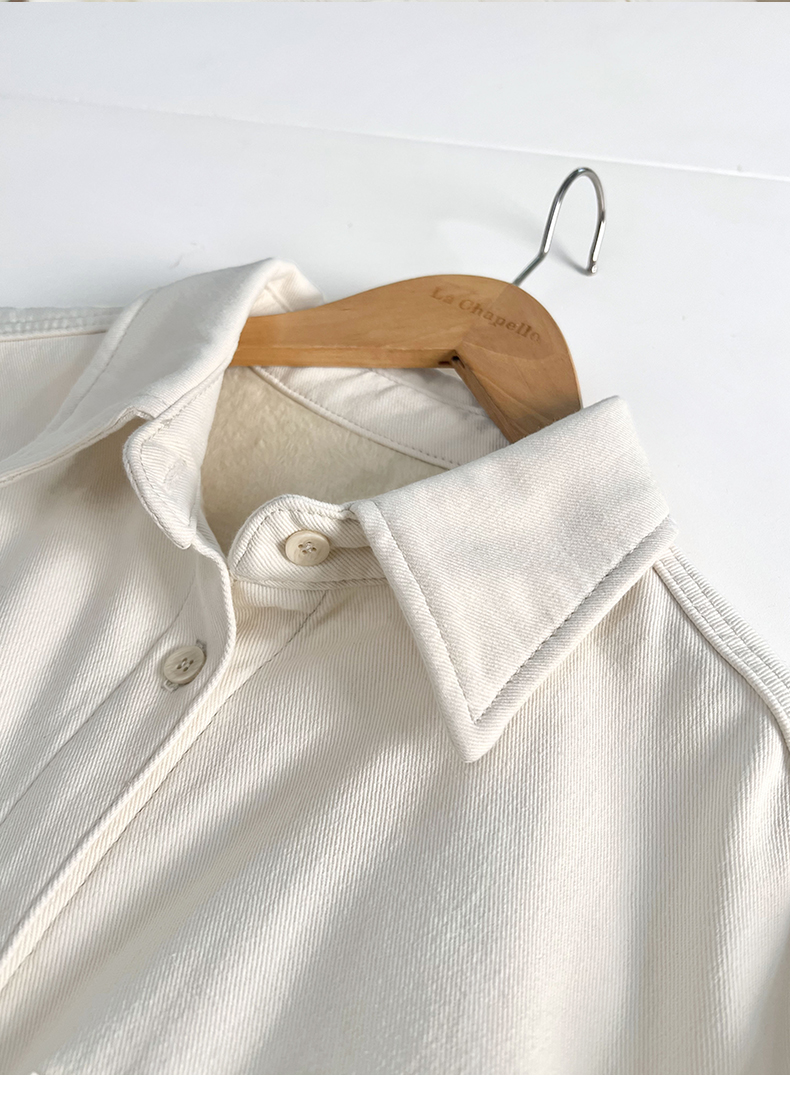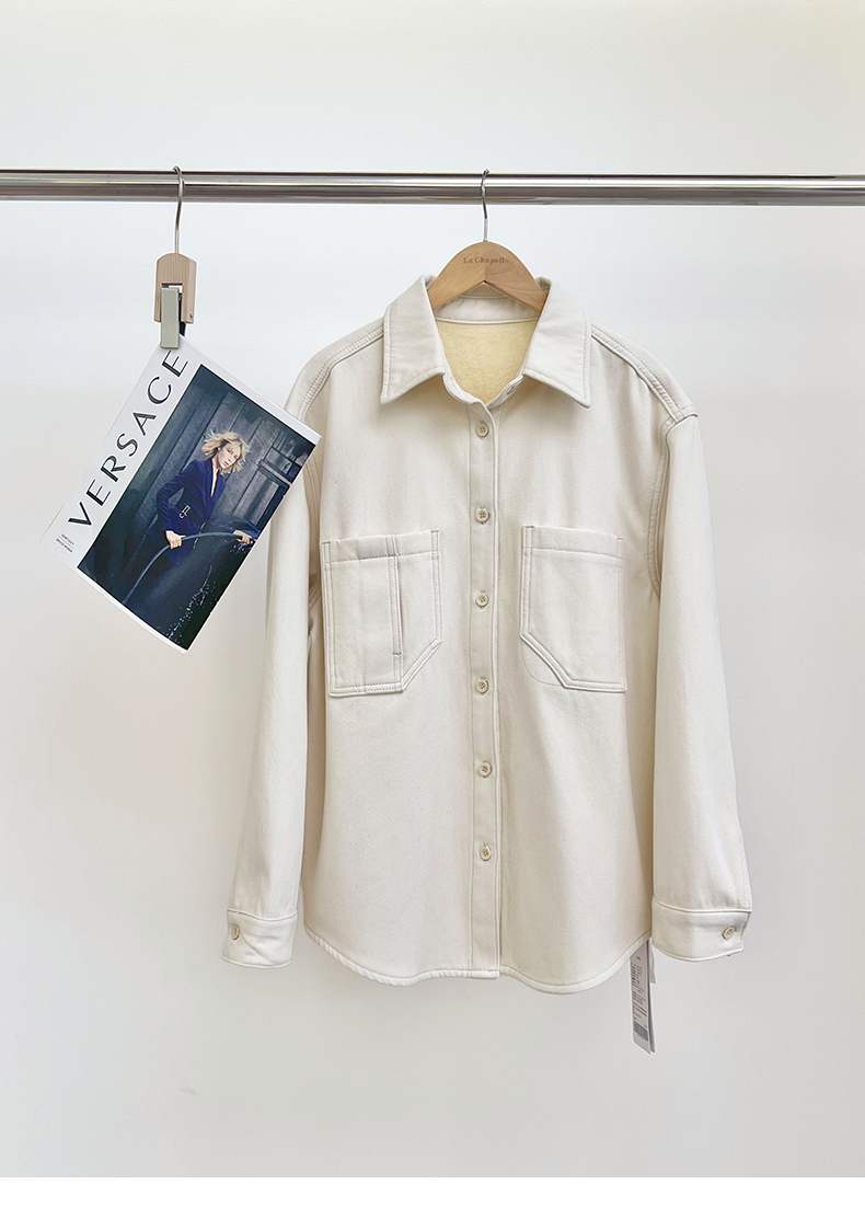 会员福利【加绒加厚~100棉】拉夏贝尔/La Chapelle设计感双口袋翻领纯棉加绒牛仔衬衫百搭外套