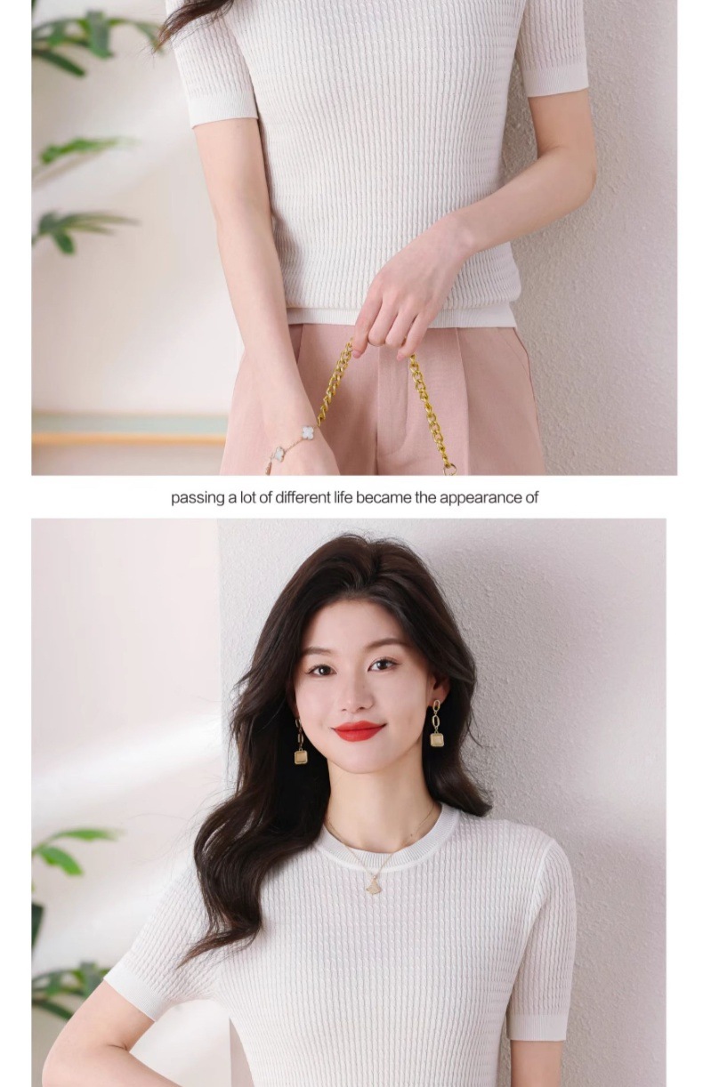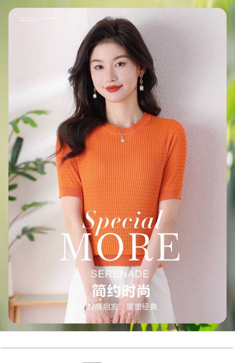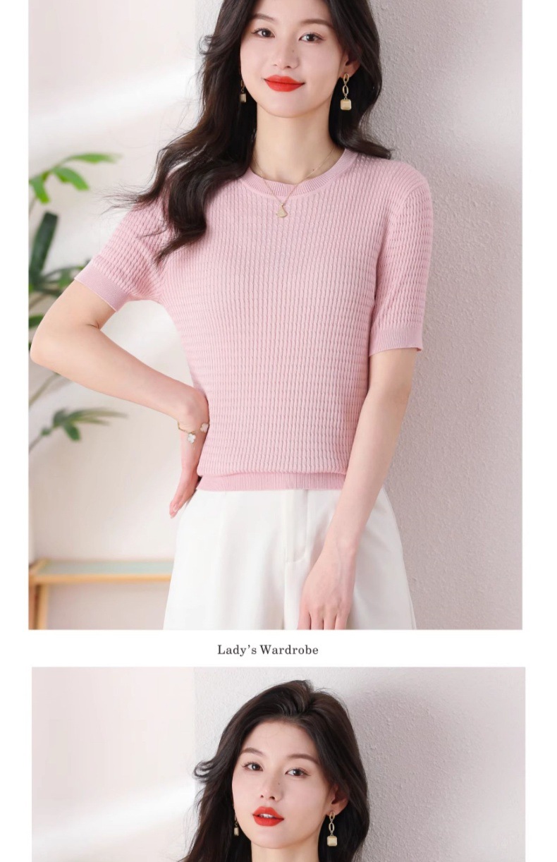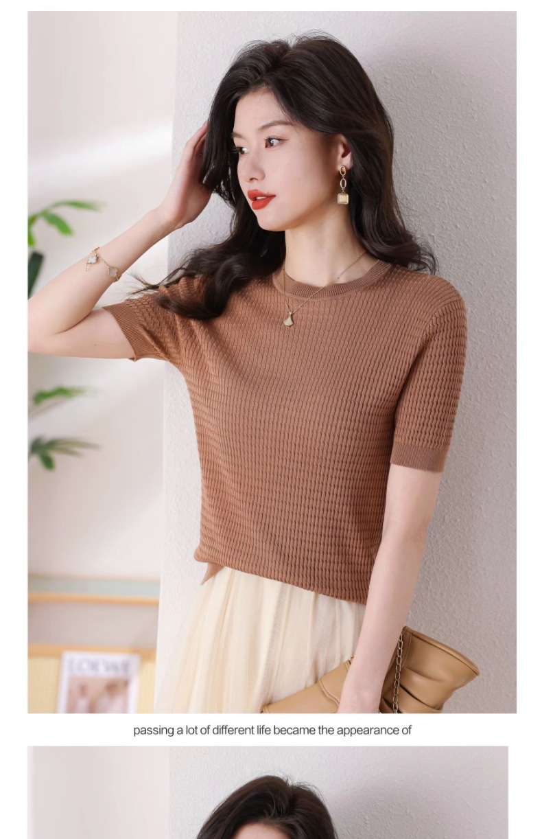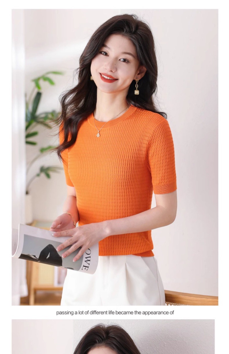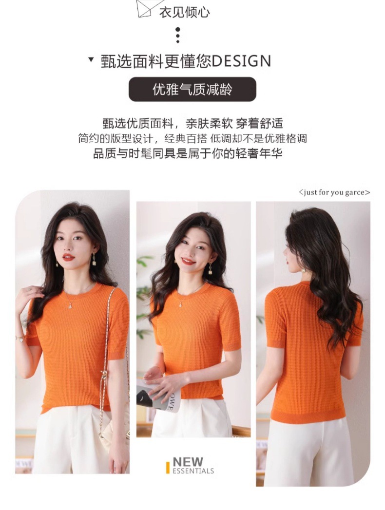 修身显瘦针织,天丝短袖薄款螺纹上衣CC-101-96900