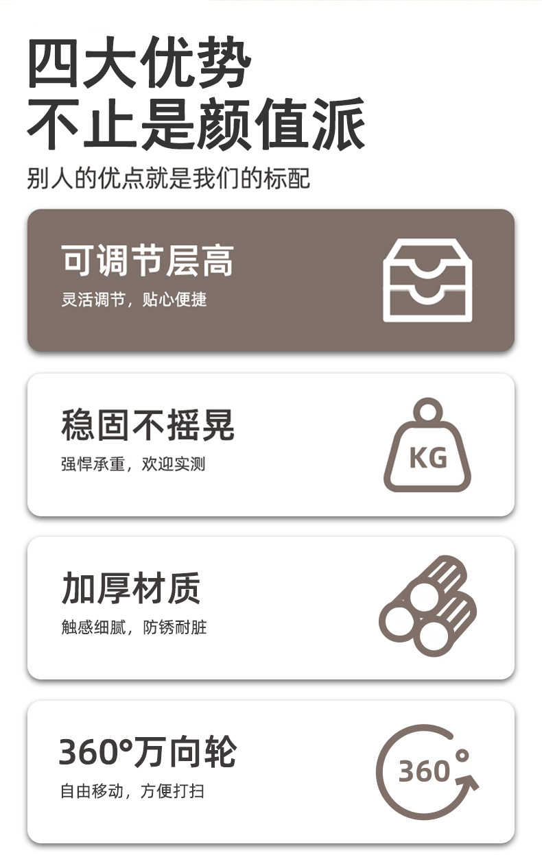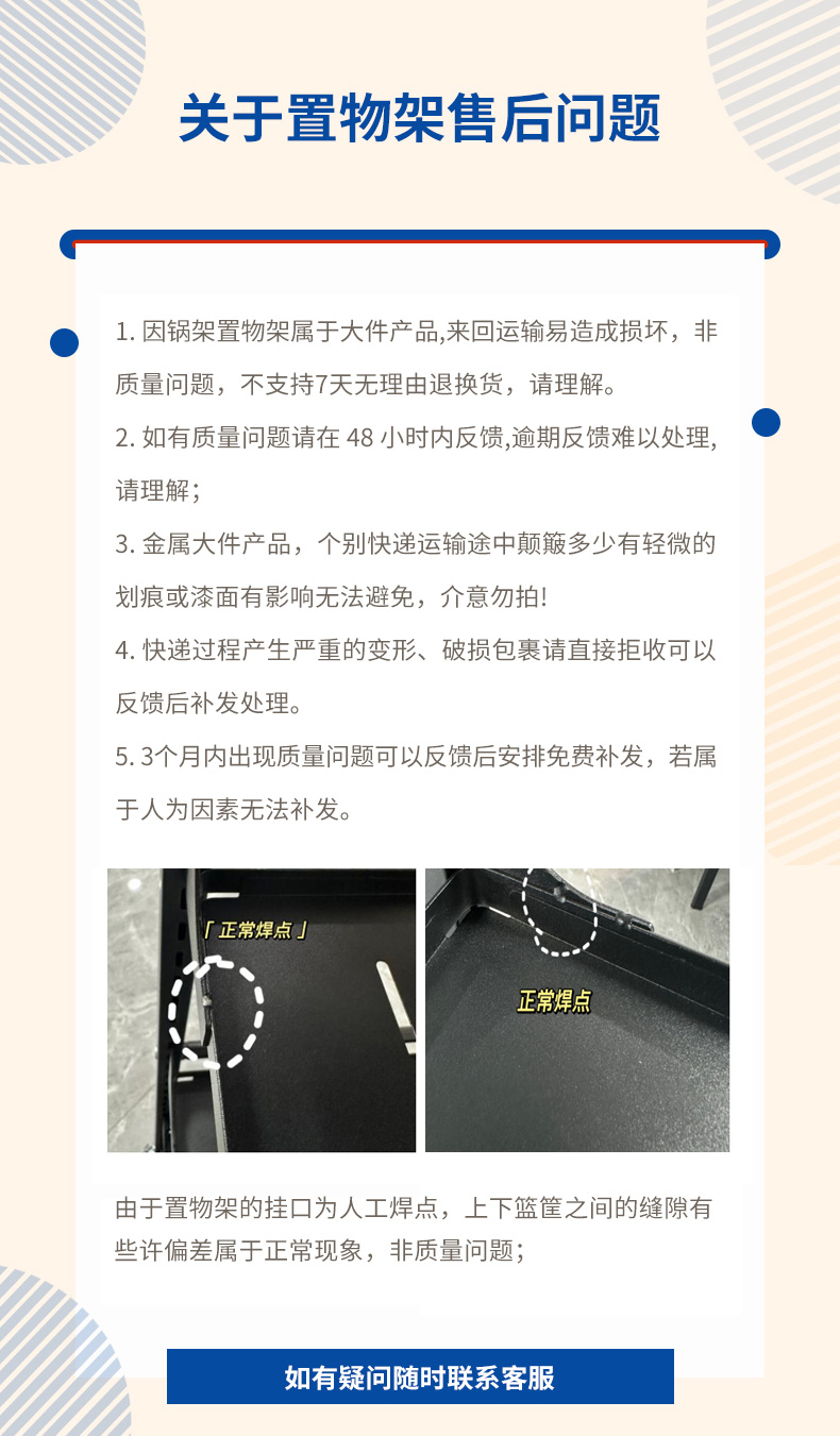 四、退换货及售后政策:置物架为大件物品,不支持7天无理由退换货,如有质量问题,请及时报售后!