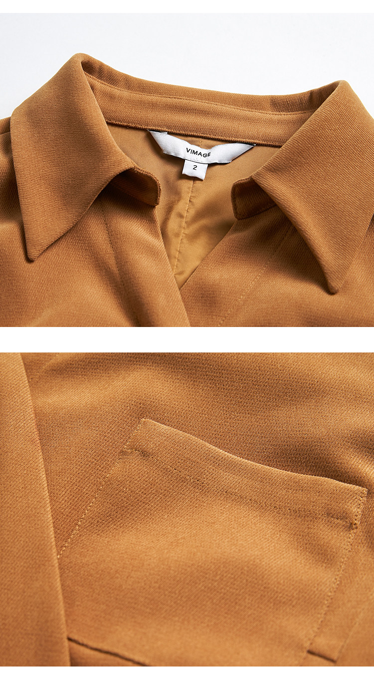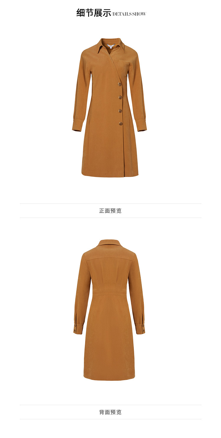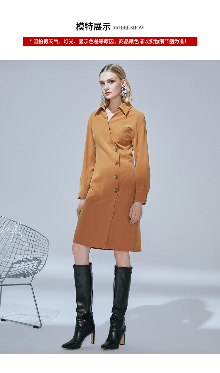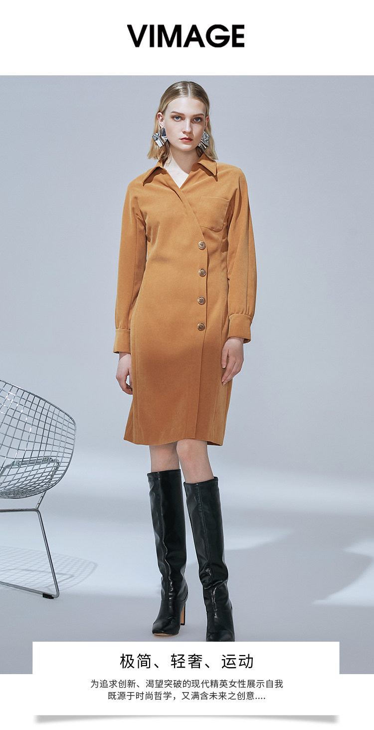 VIMAGE纬漫纪品牌女装新款气质翻领斜襟单排扣修身连衣裙V1407042
