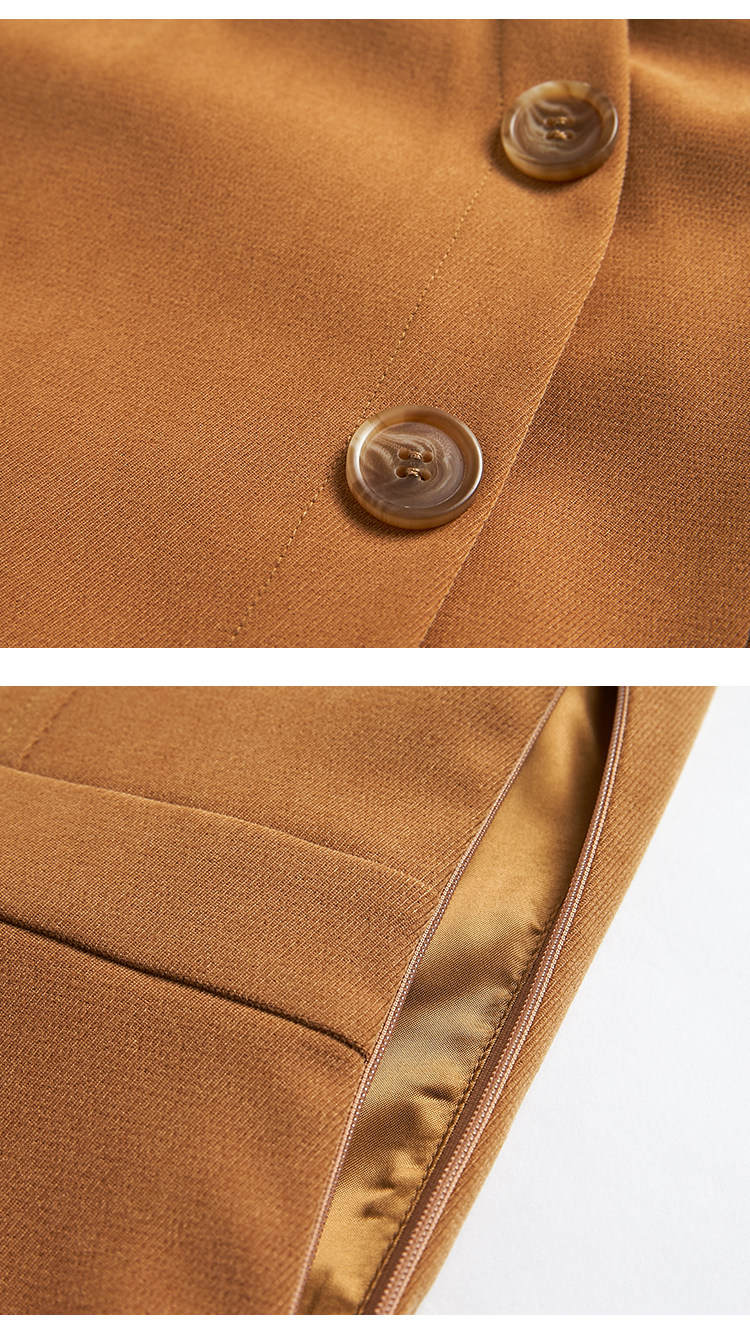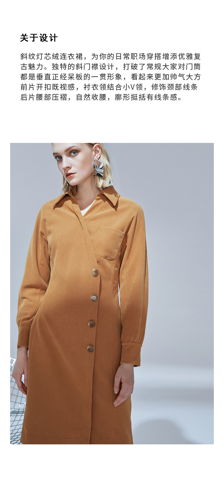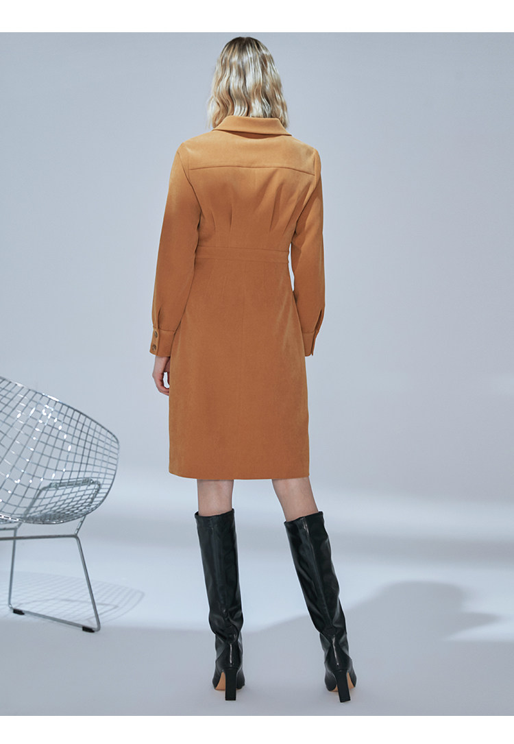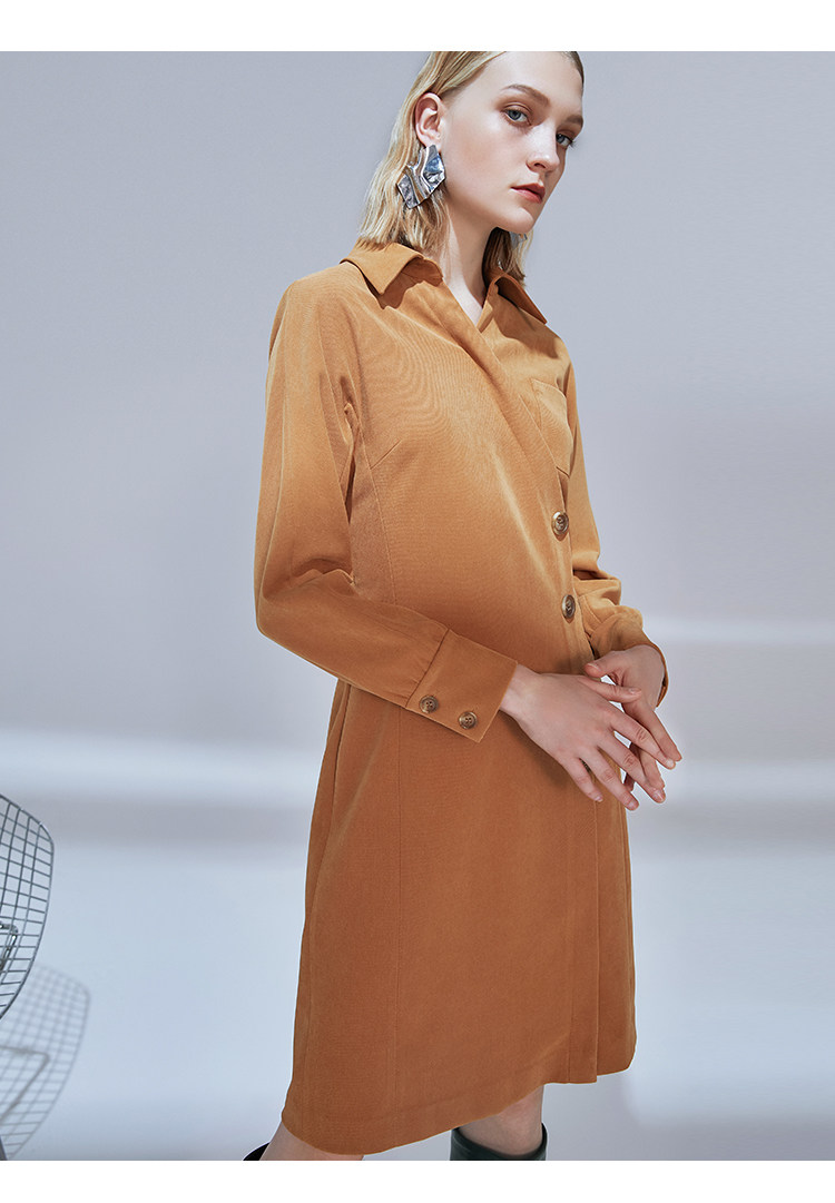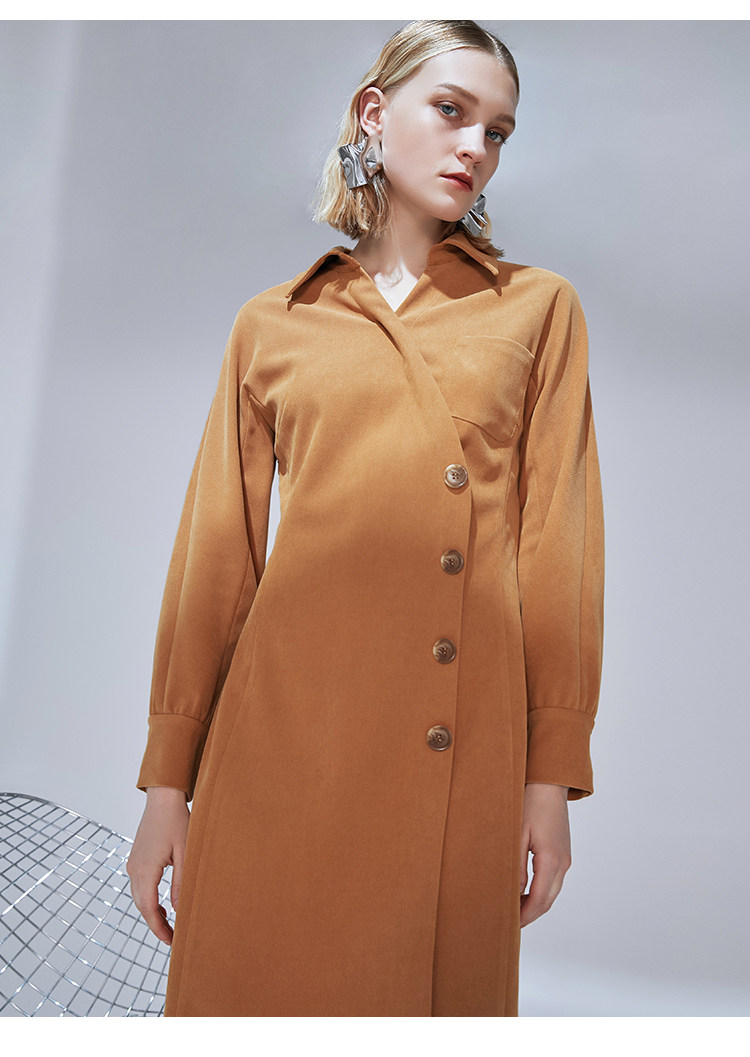 VIMAGE纬漫纪品牌女装新款气质翻领斜襟单排扣修身连衣裙V1407042