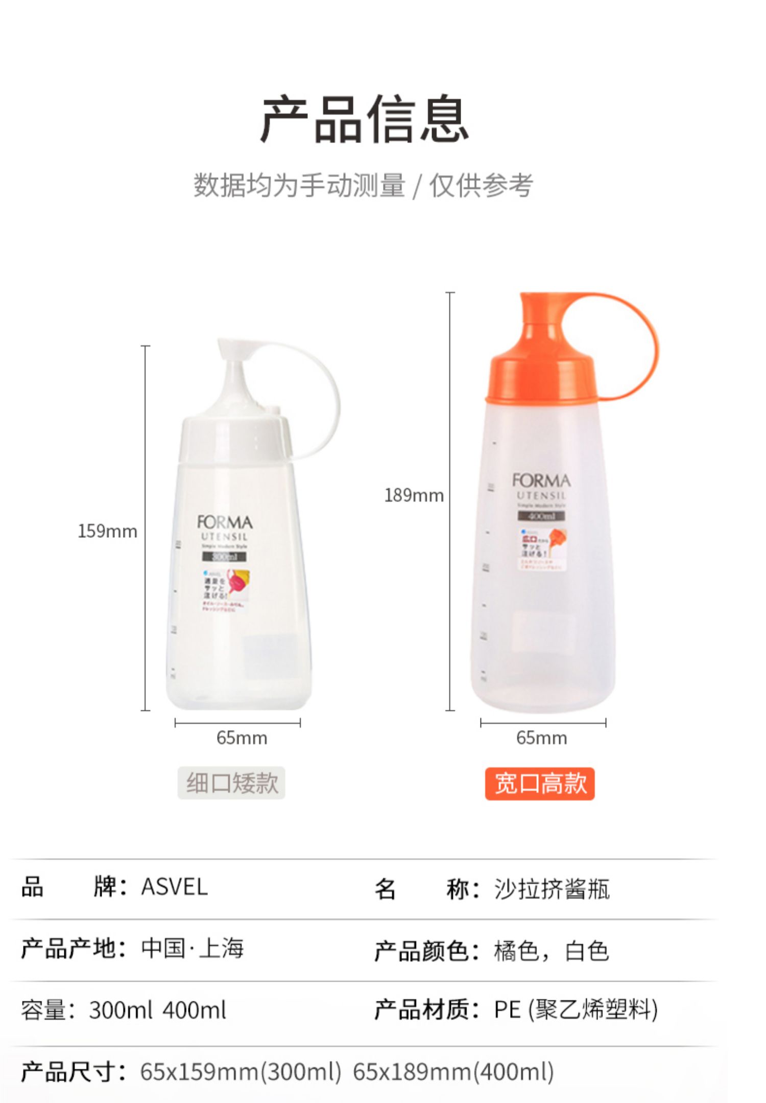 日本Asvel挤压式细口调味瓶400ml(白色)