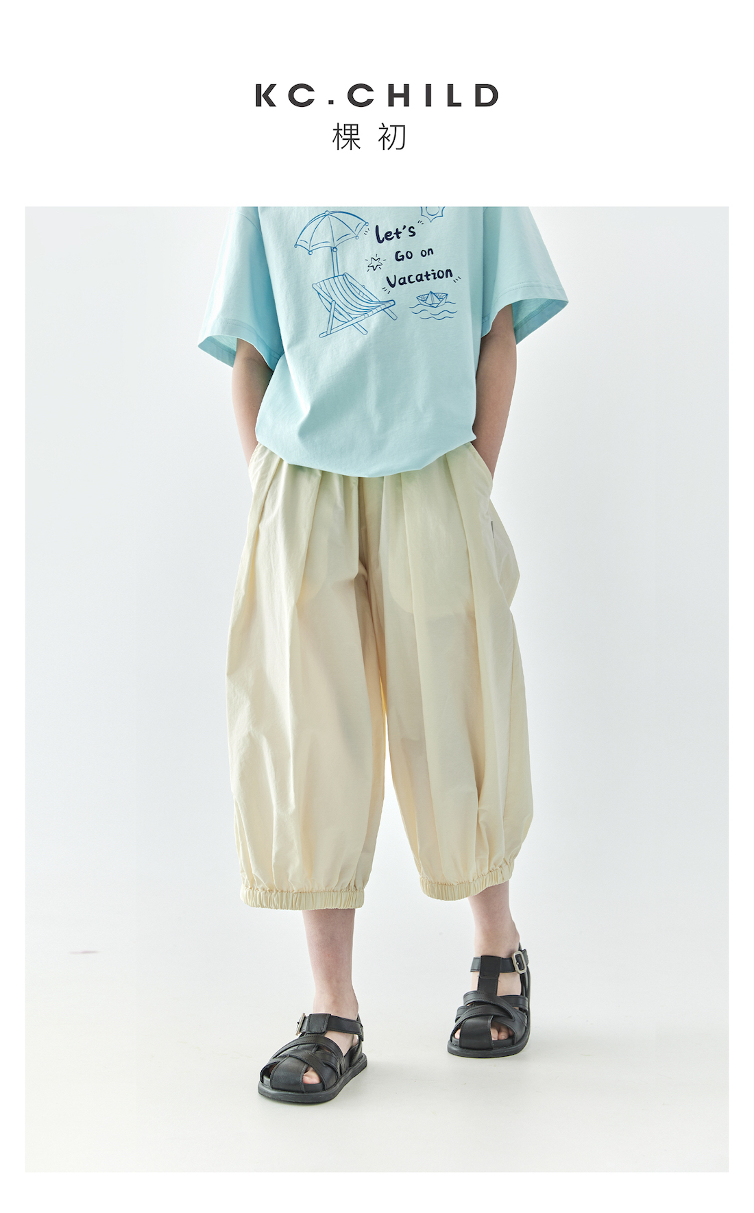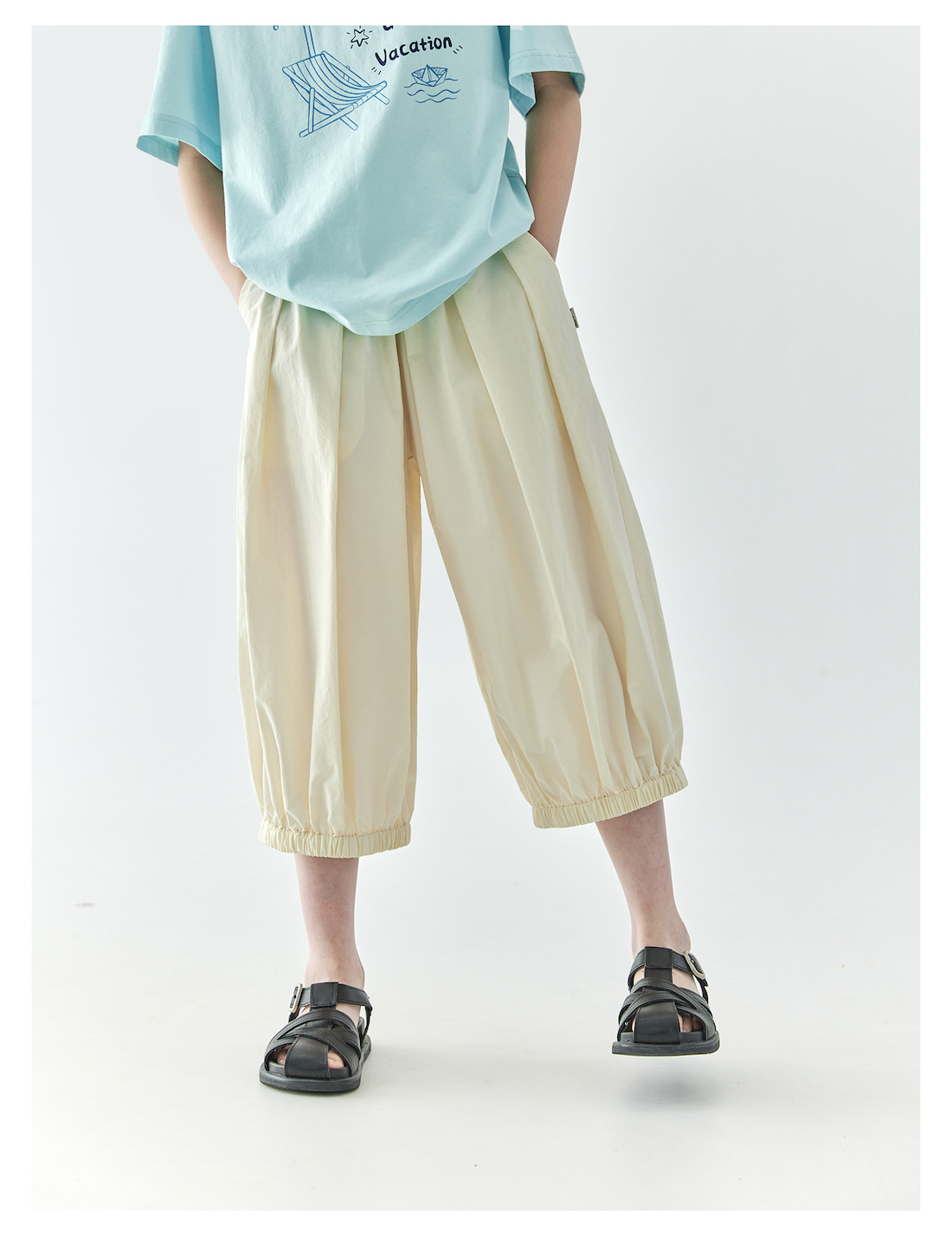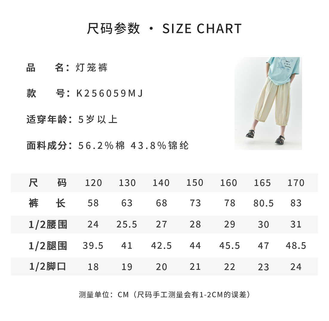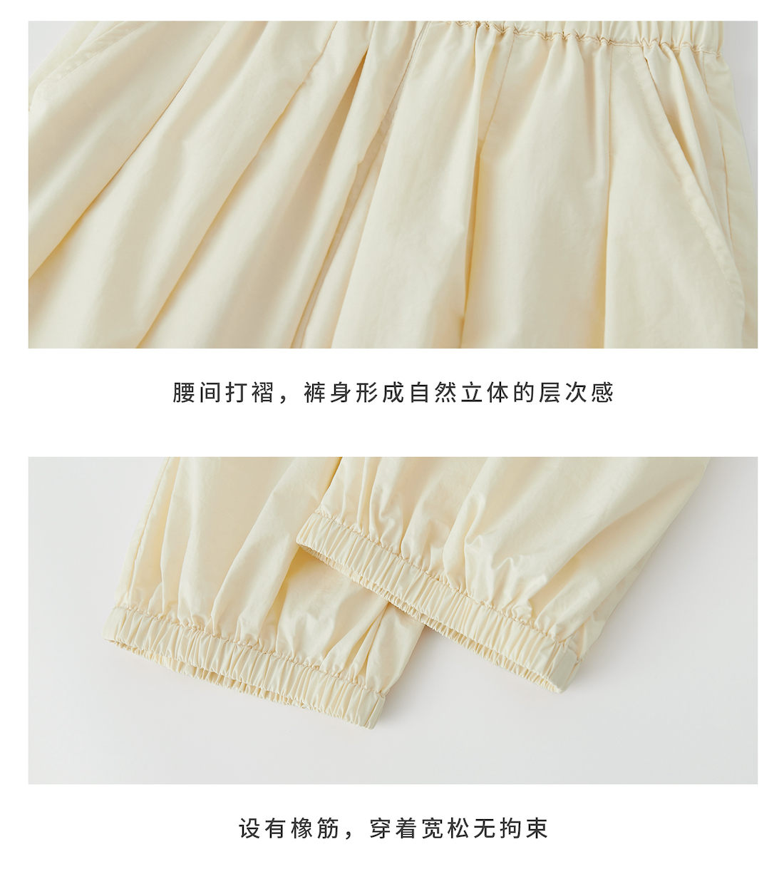 棵初2025夏季新款亲子女童棉混纺灯笼裤宽松米黄色休闲裤