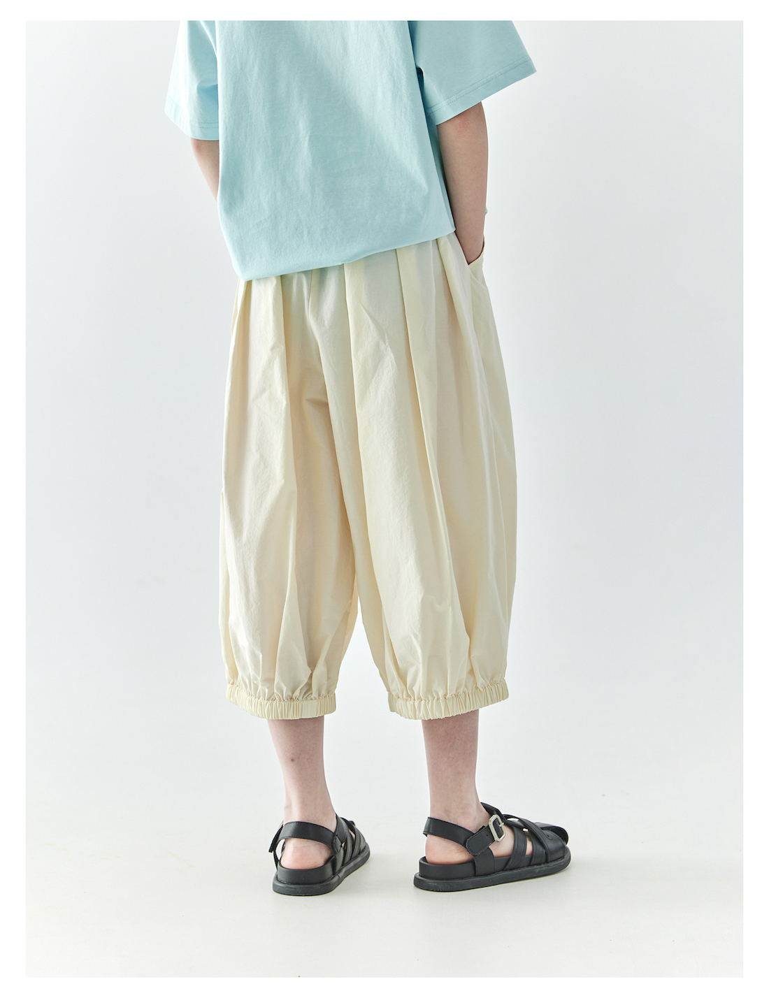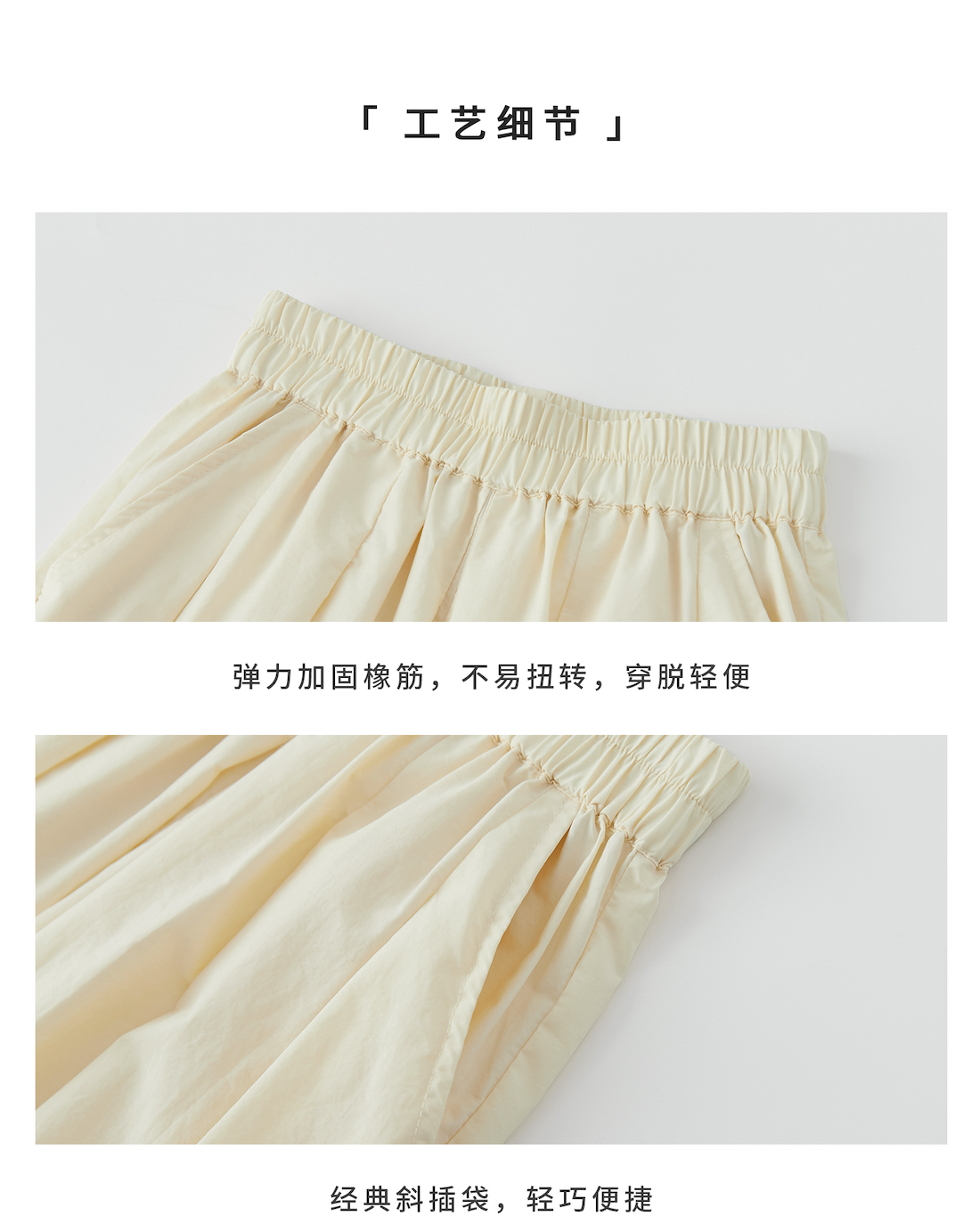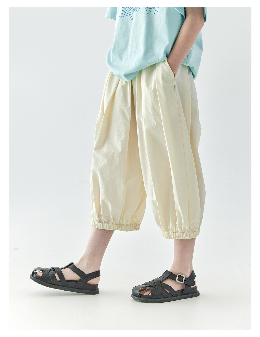 棵初2025夏季新款亲子女童棉混纺灯笼裤宽松米黄色休闲裤