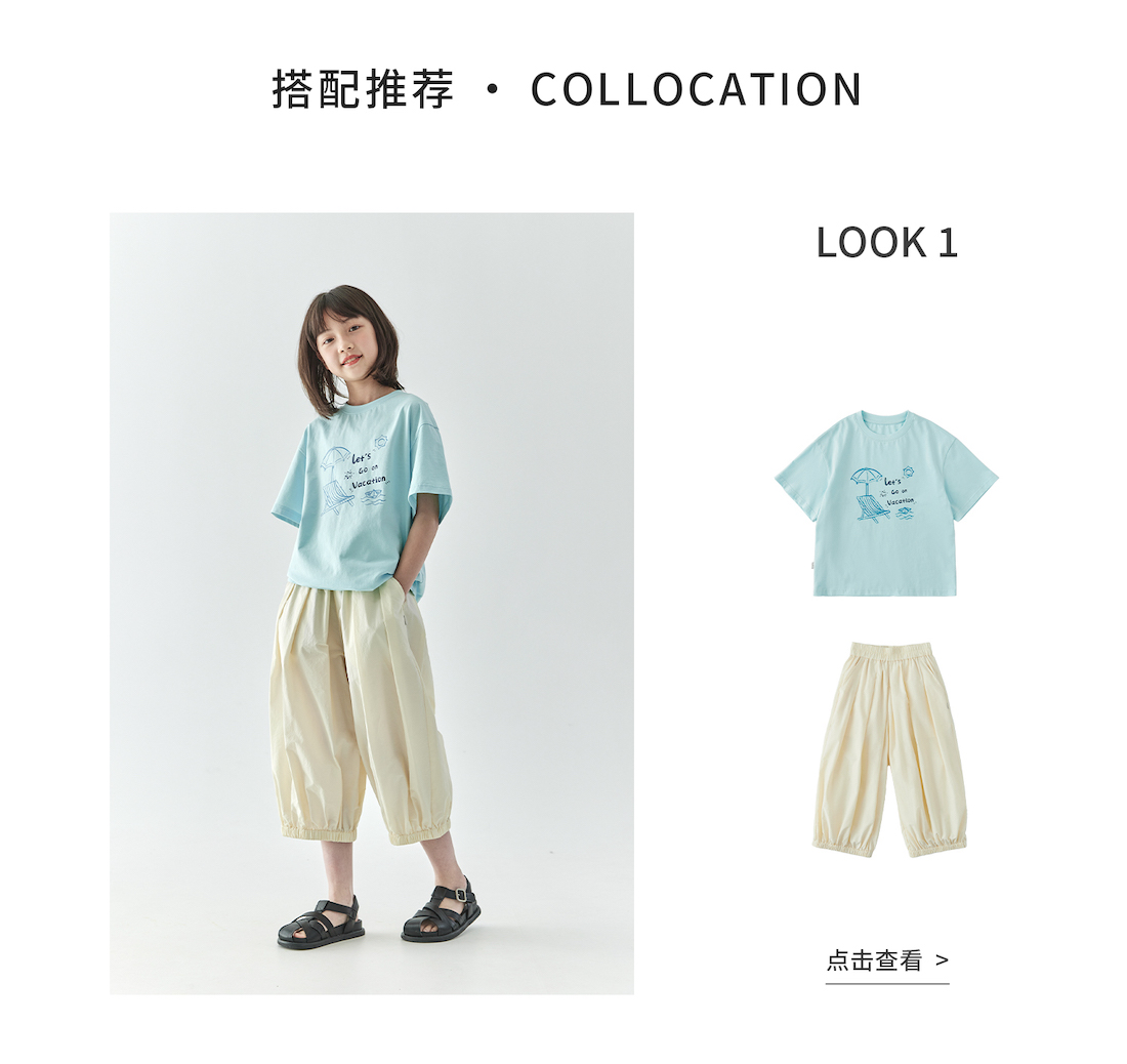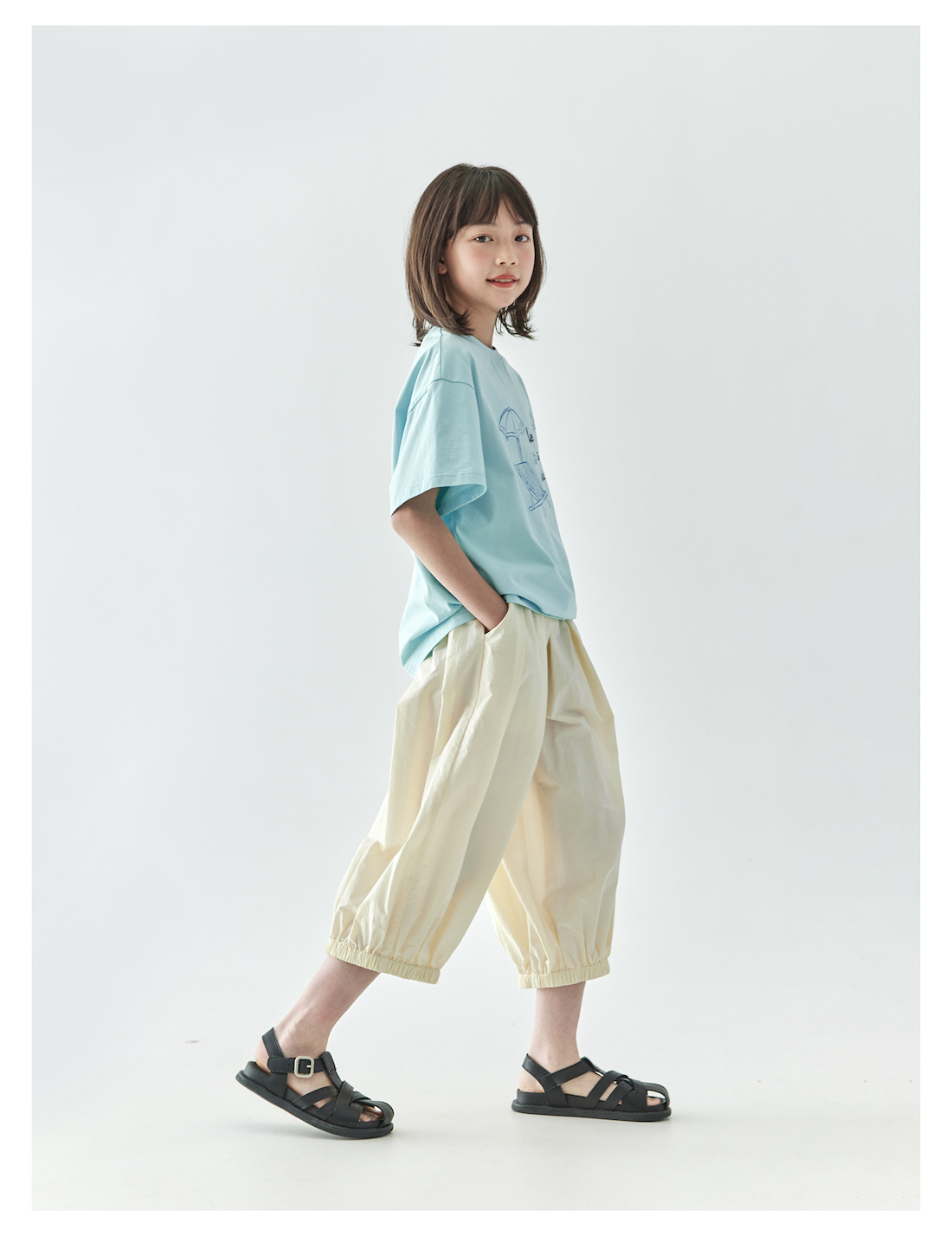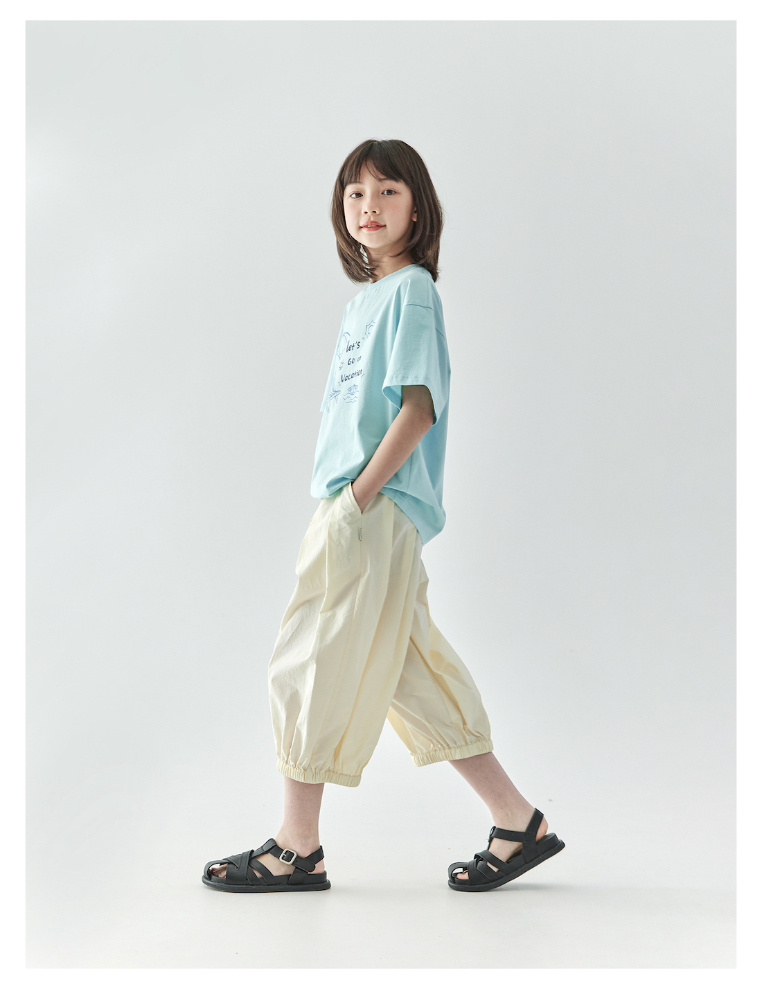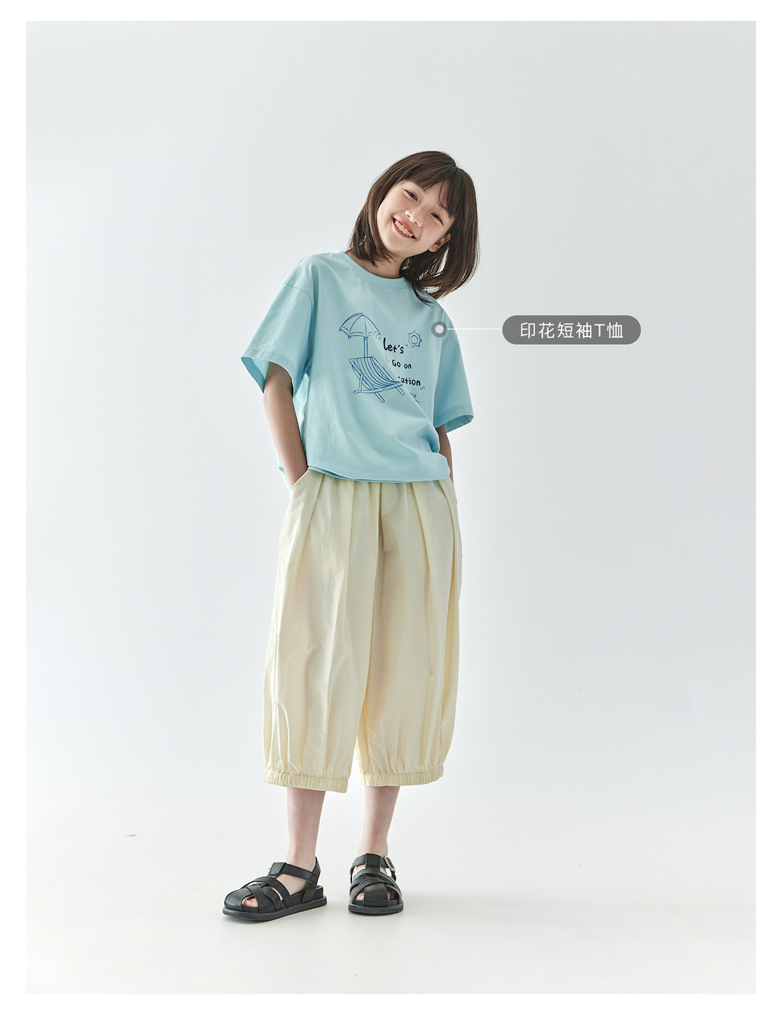 棵初2025夏季新款亲子女童棉混纺灯笼裤宽松米黄色休闲裤