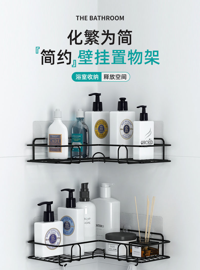 置物架免打孔卫生间浴室洗漱台置物架洗手间三角架厕所壁挂厨房收纳架子