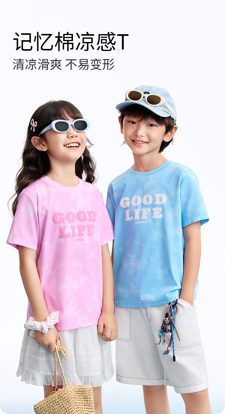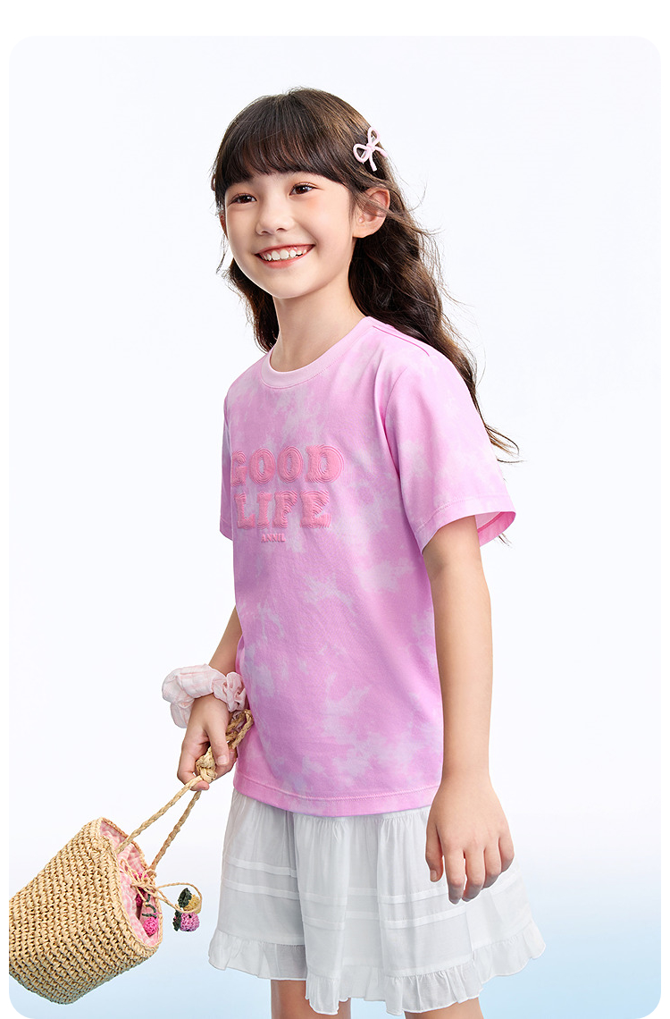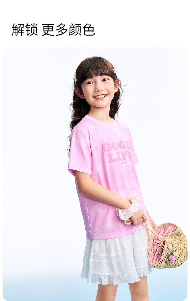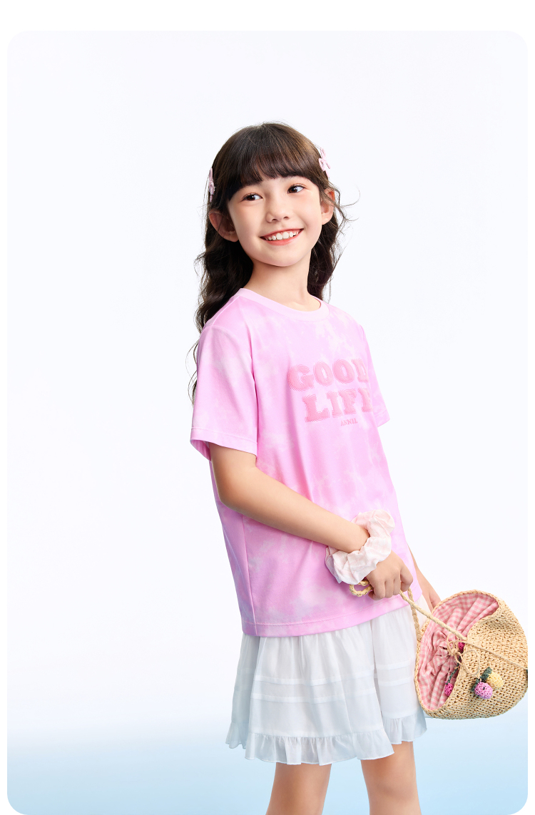 男女童圆领短袖针织衫夏季新款安奈儿童装EM621635