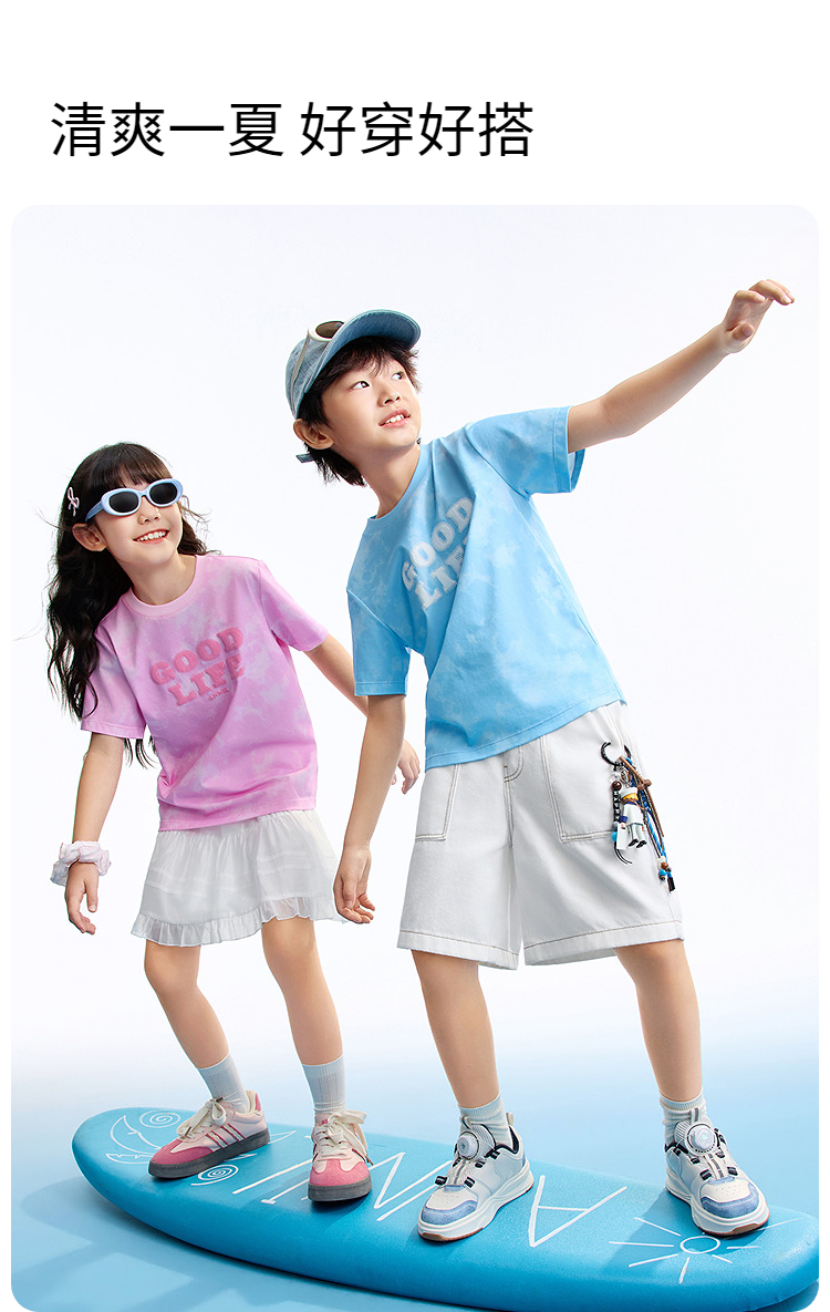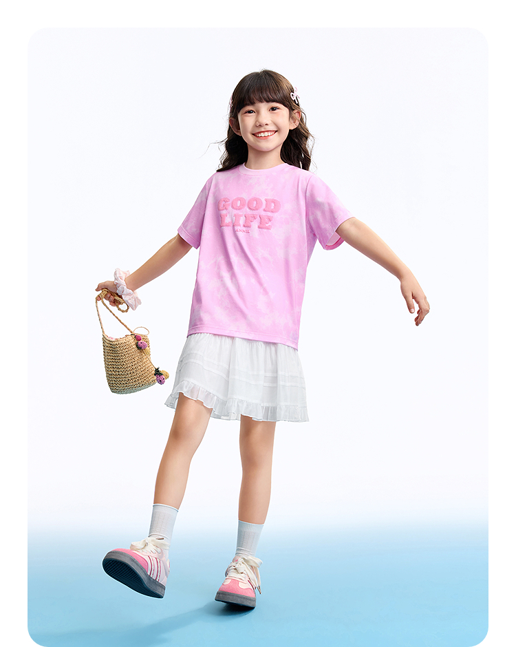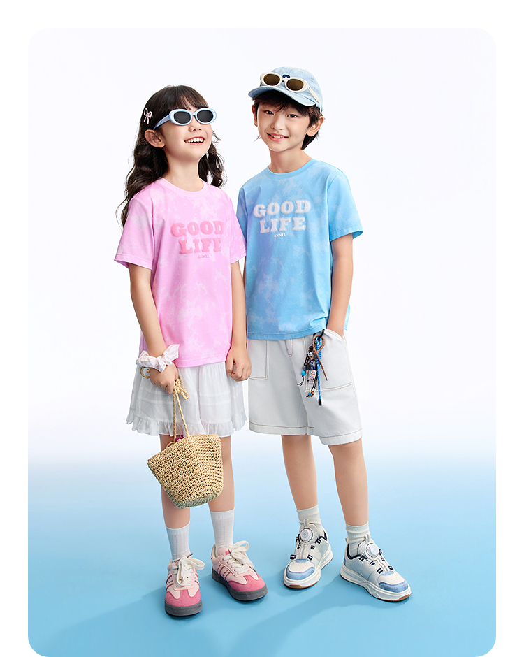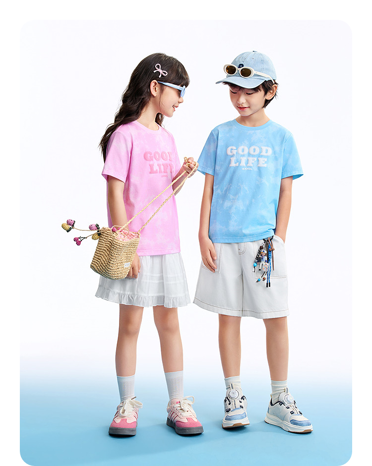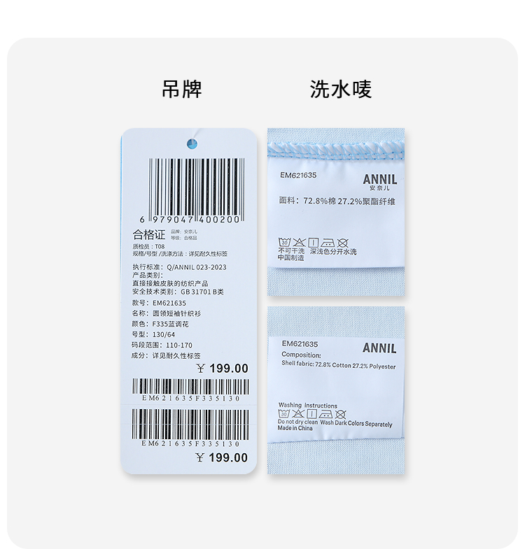 男女童圆领短袖针织衫夏季新款安奈儿童装EM621635