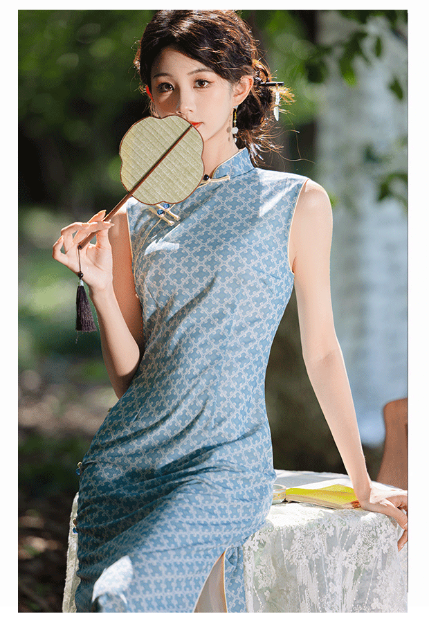 无袖改良素雅,民国风优雅印花旗袍LJX-854