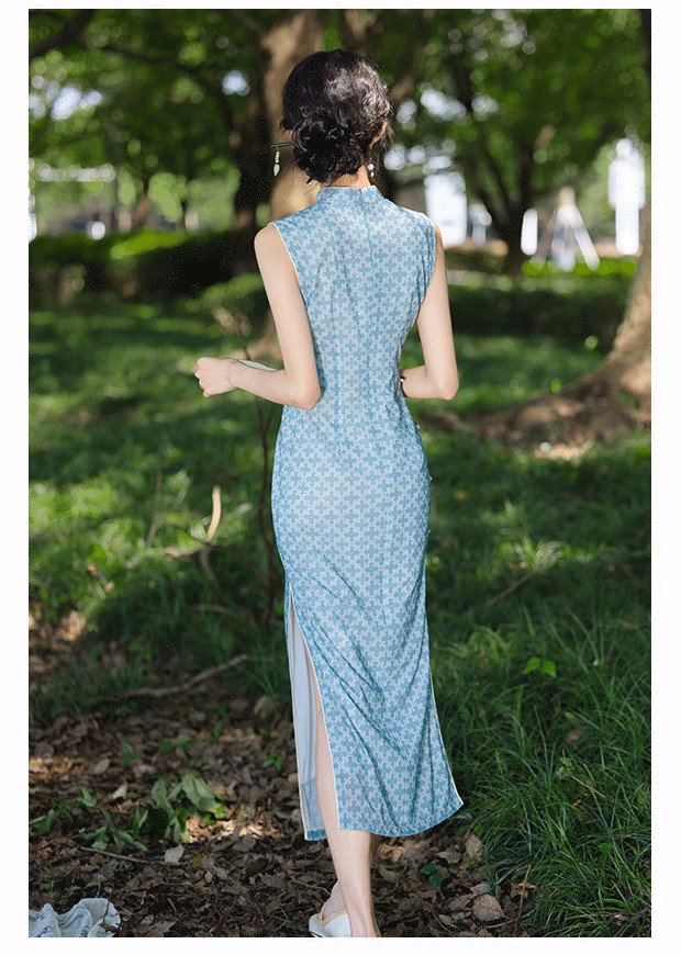 无袖改良素雅,民国风优雅印花旗袍LJX-854 商品图4