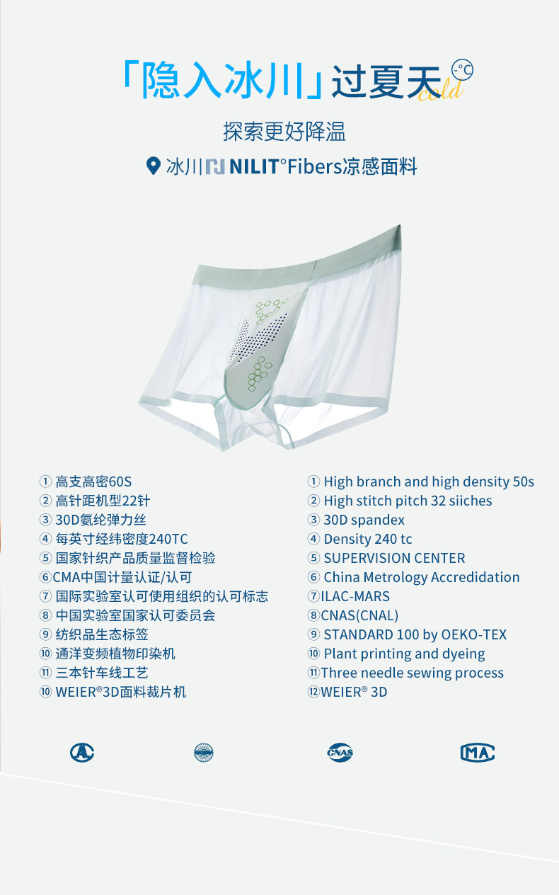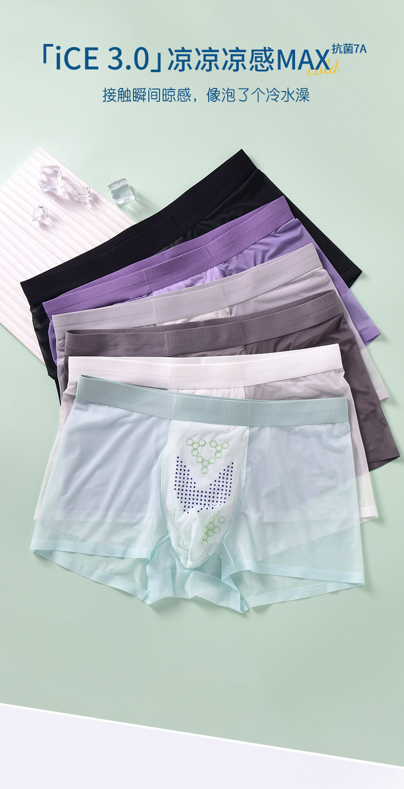 XN-MFS-H2543 【1条】冰丝无痕男士平角裤纯色透气中腰男士内裤四角裤短裤