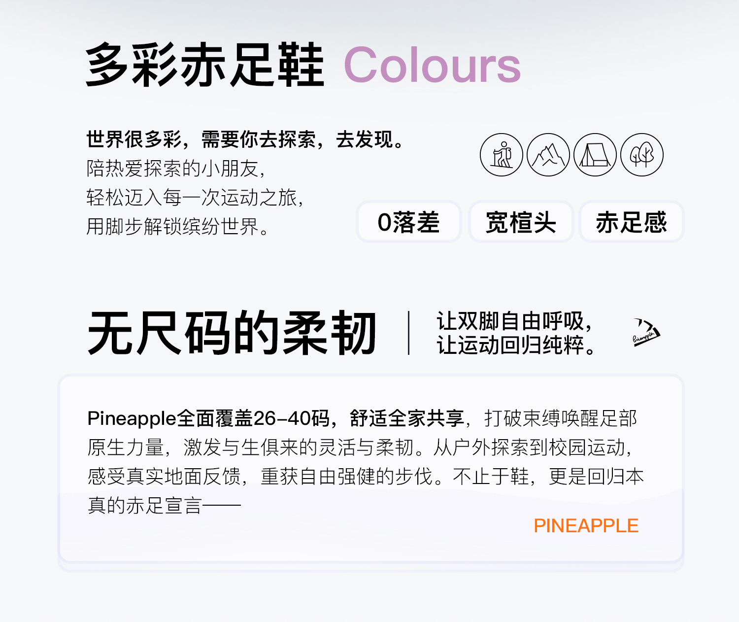 pineapple菠萝【多彩赤足鞋】2026春款儿童赤足鞋网面透气运动鞋中大童户外跑鞋【种草号团购】