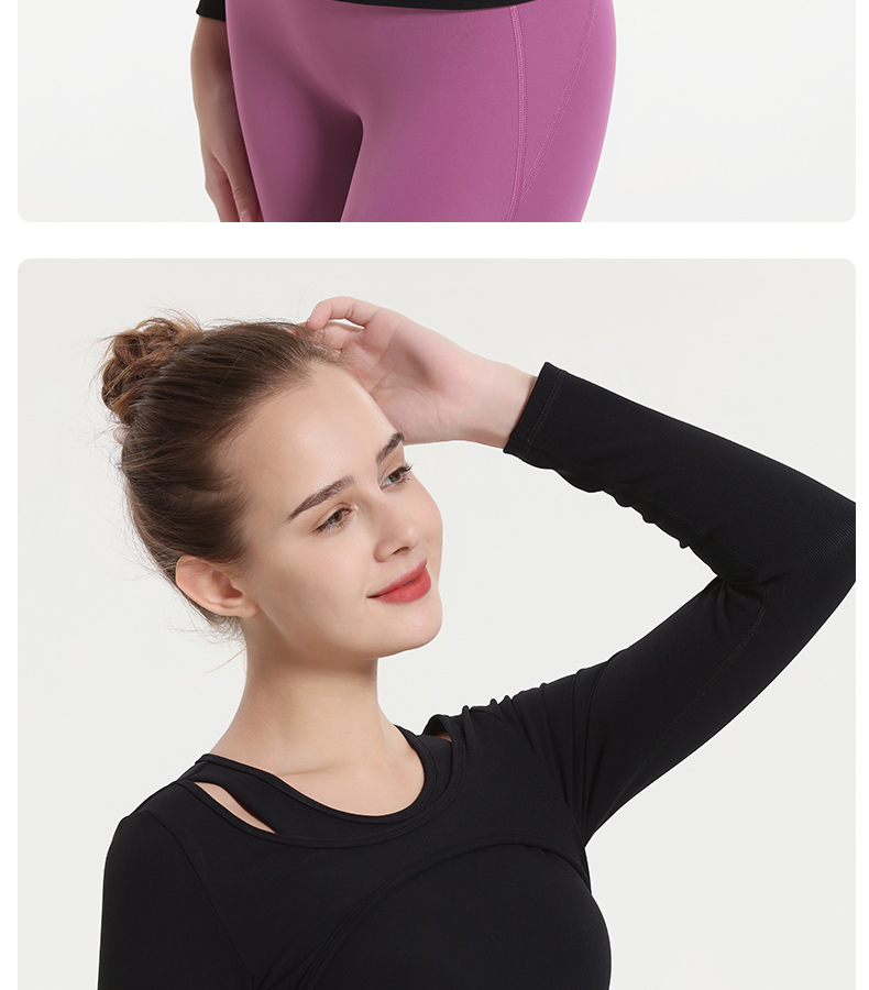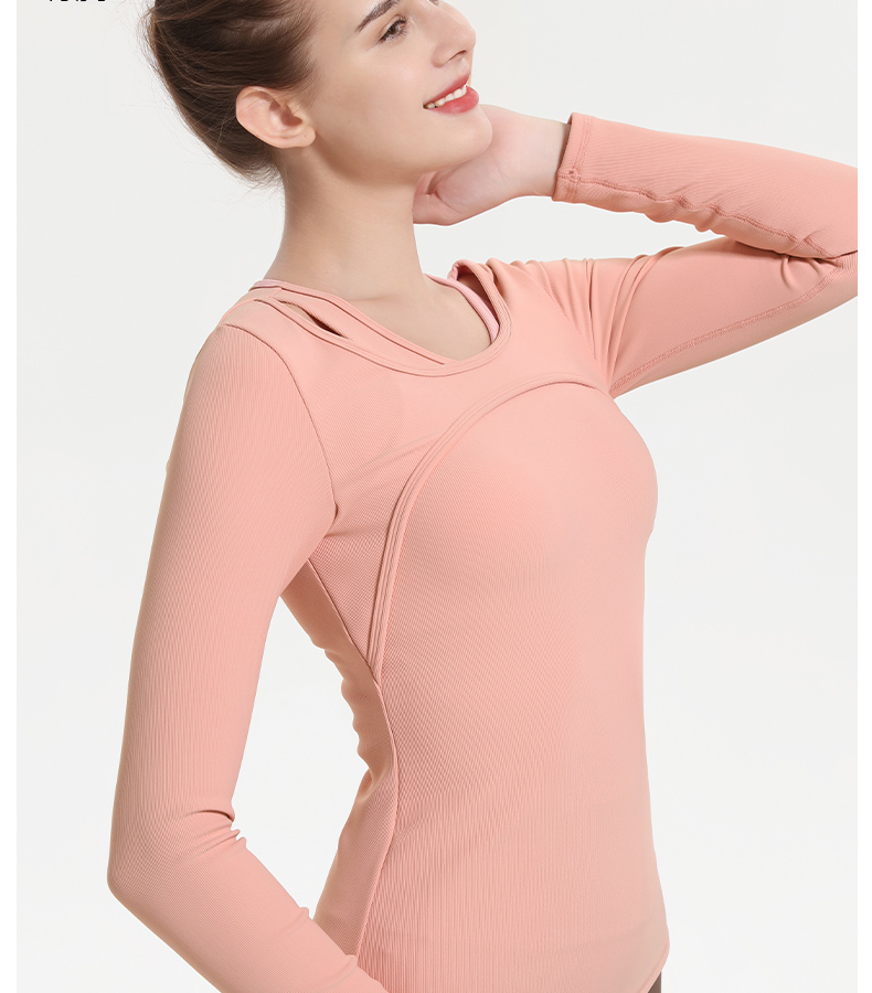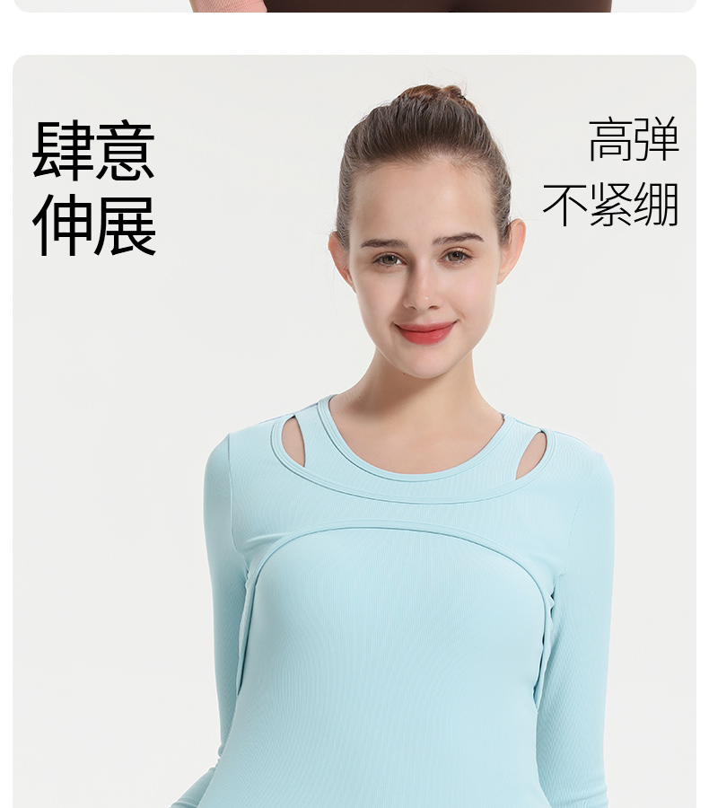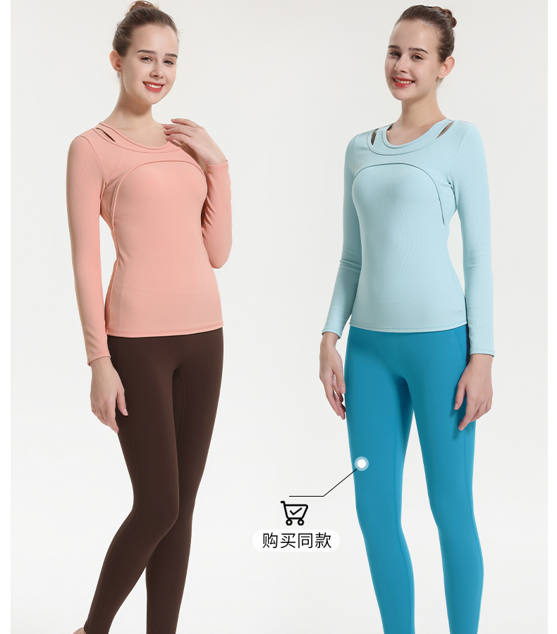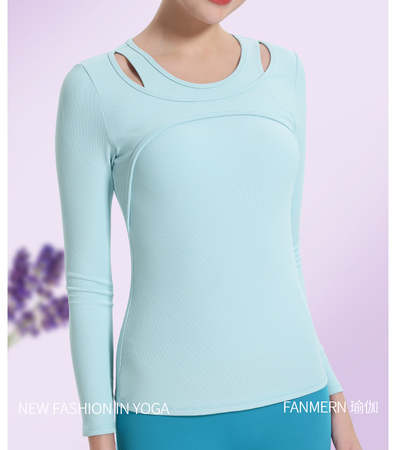 (断码清仓,不退不换)梵美人 F2057Y 瑜伽长袖 带胸垫 细美人条
