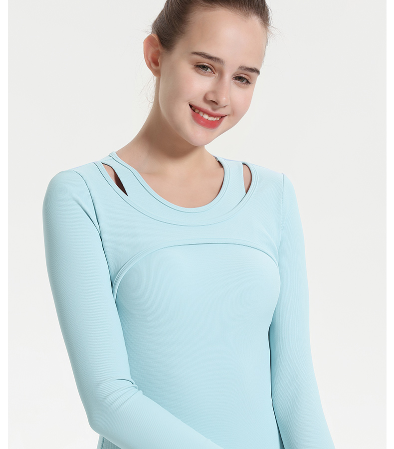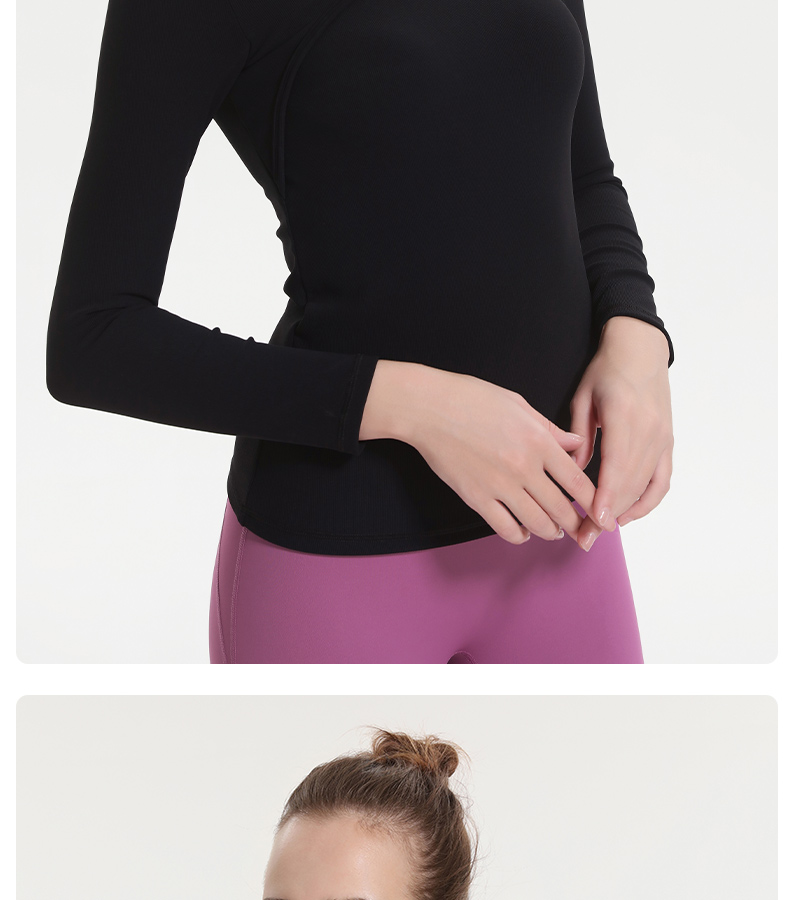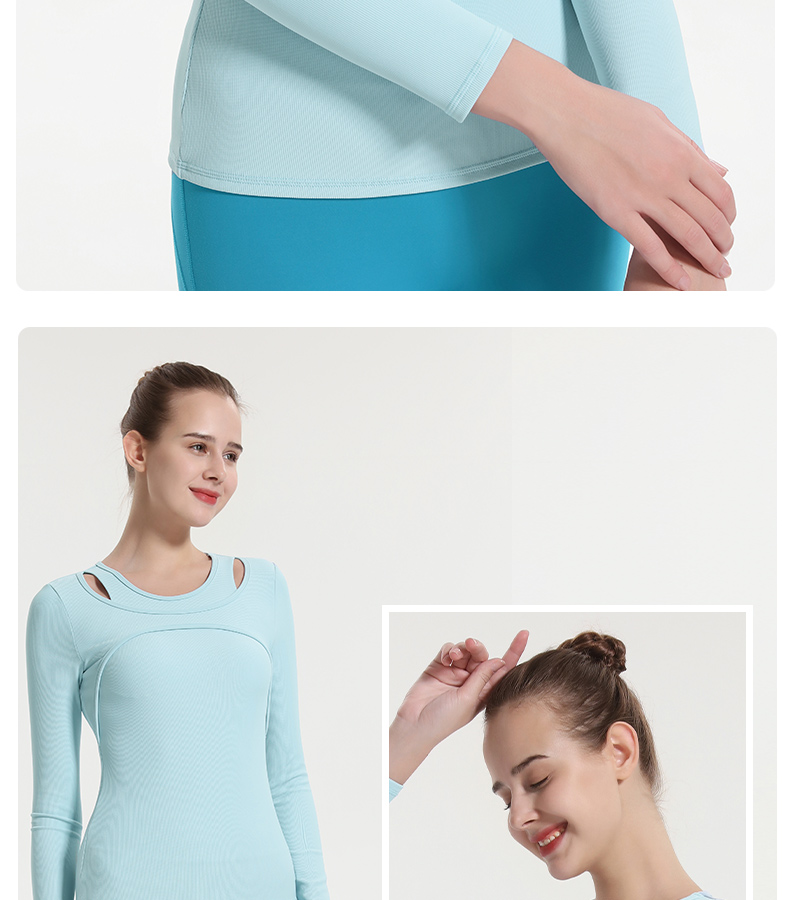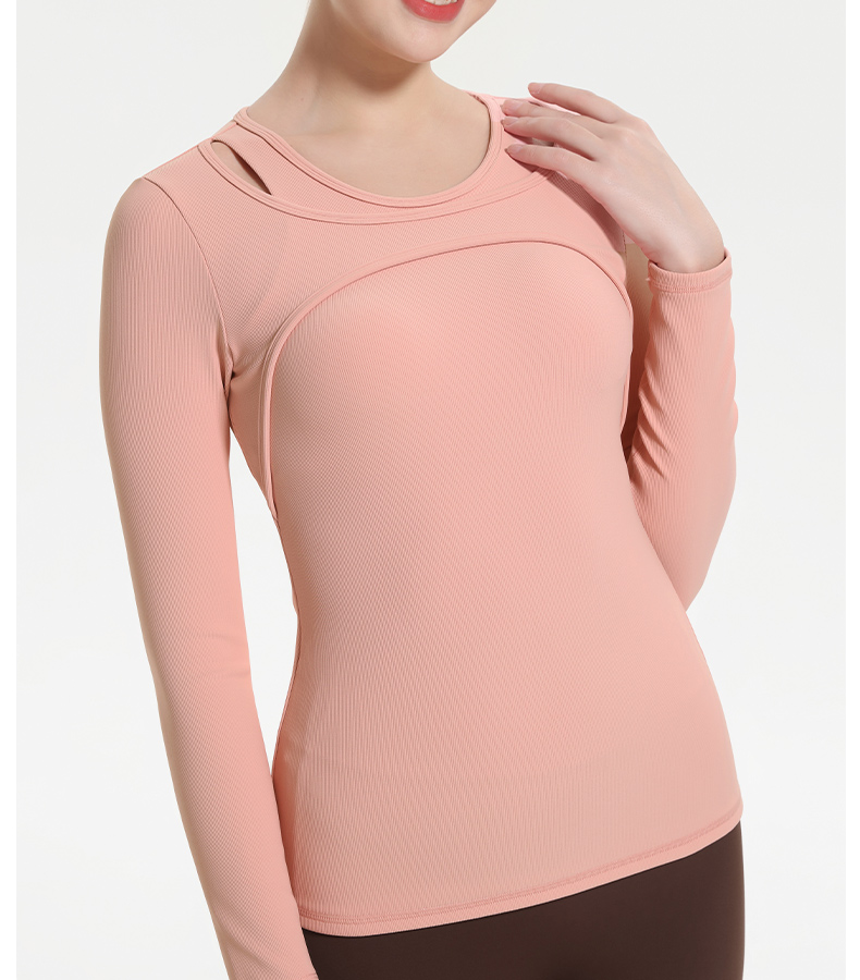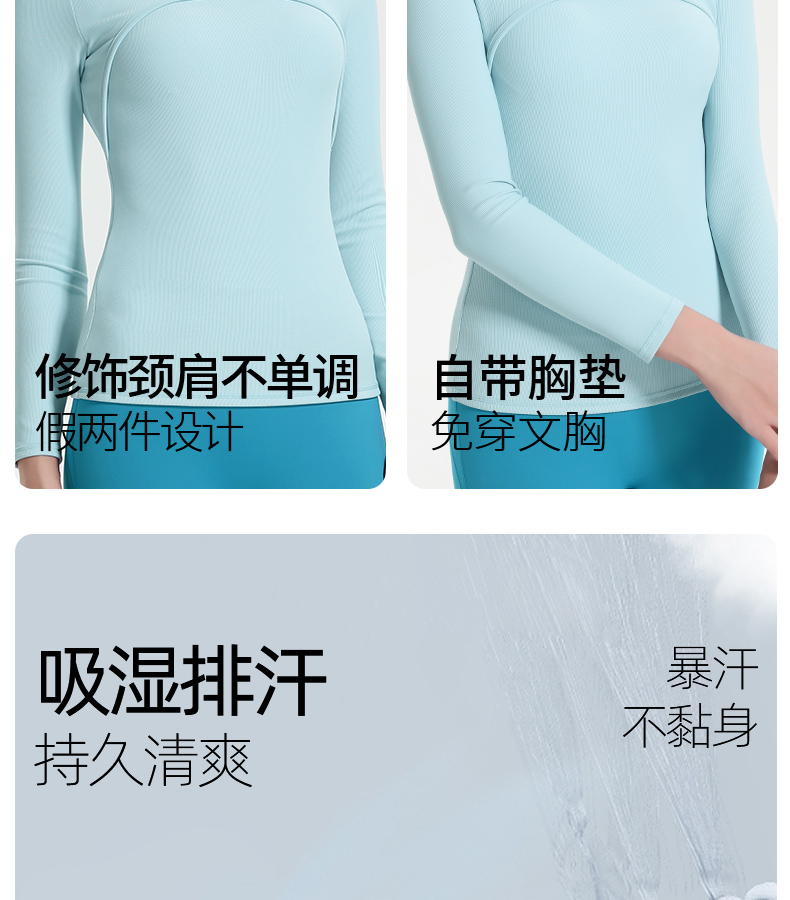 (断码清仓,不退不换)梵美人 F2057Y 瑜伽长袖 带胸垫 细美人条