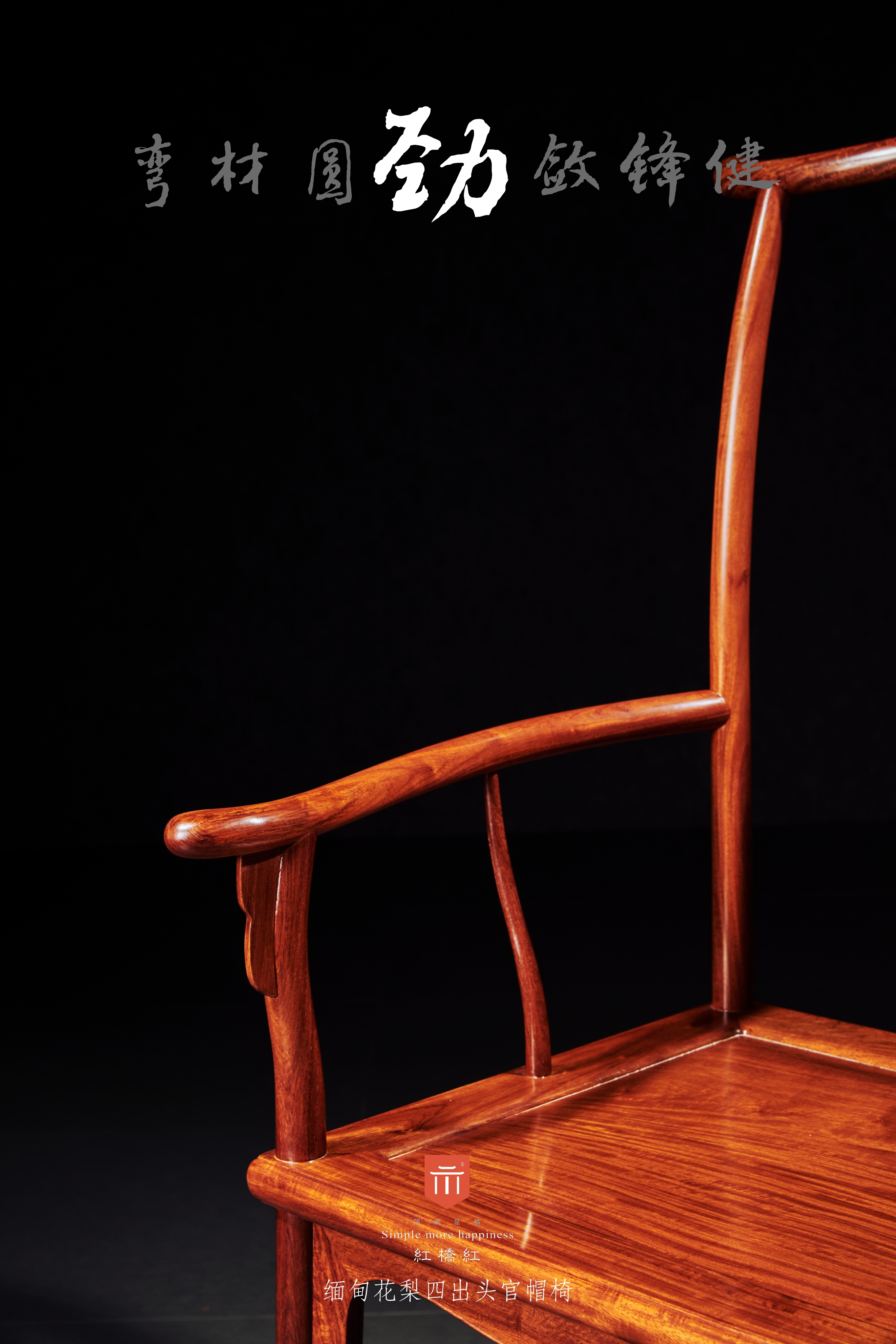 搭脑弧度大如绷弓,用料颇奢,两端上翘如幞头,三弯靠背与后腿上段的后弯体现曲线之美,充分贴合人体脊椎,提升舒适感。