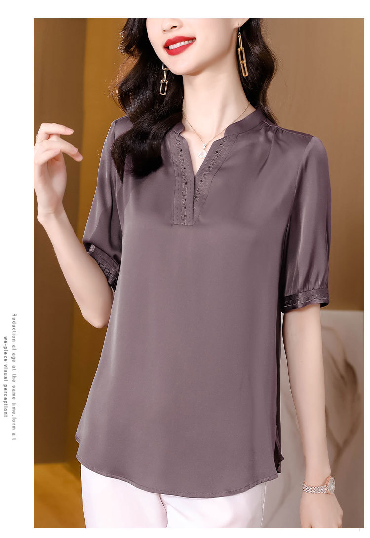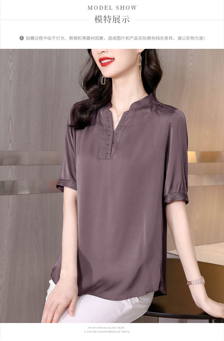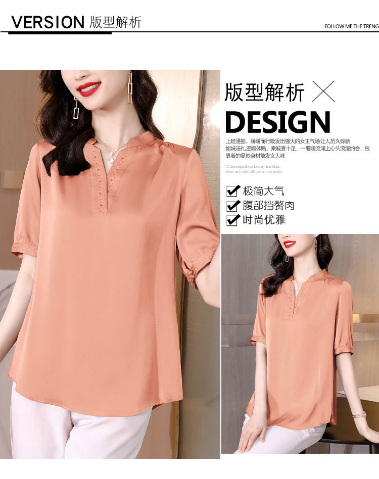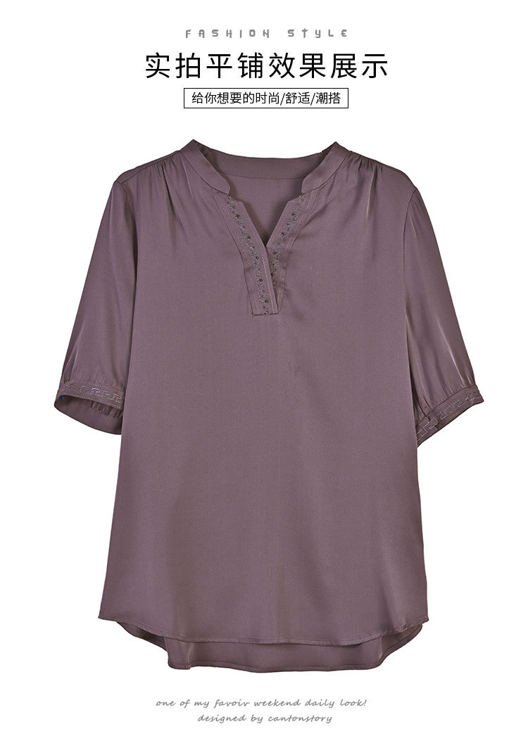【MZ】2022重磅真丝衬衫女短袖中年妈妈宽松上衣中长款夏季新款桑蚕丝衬