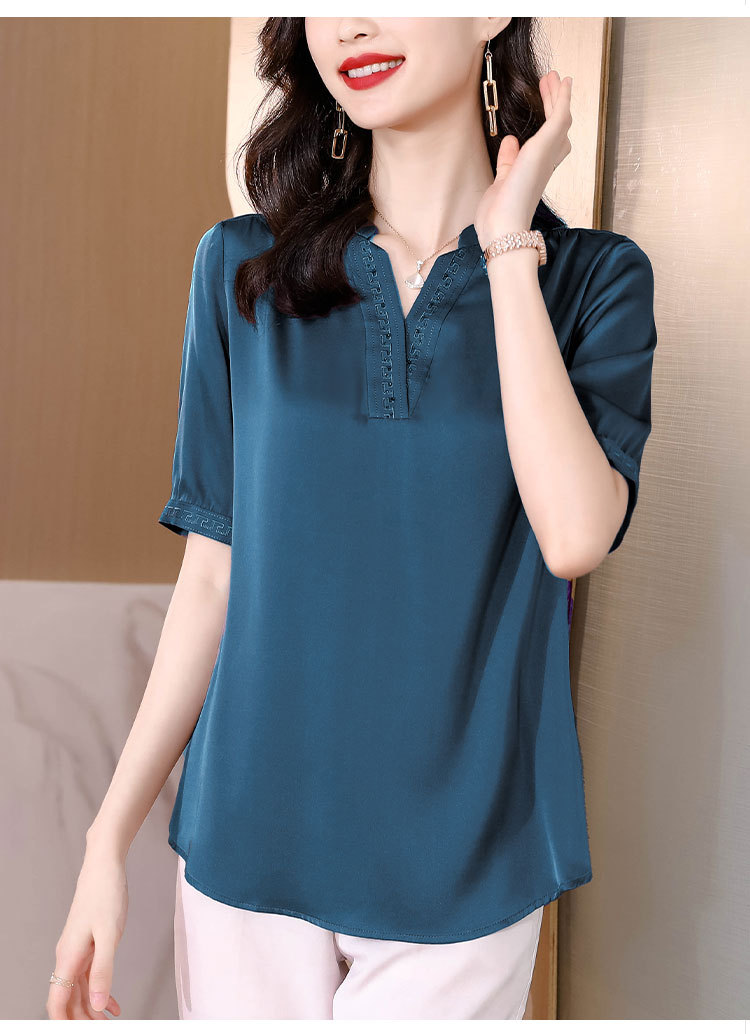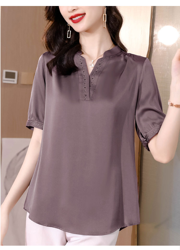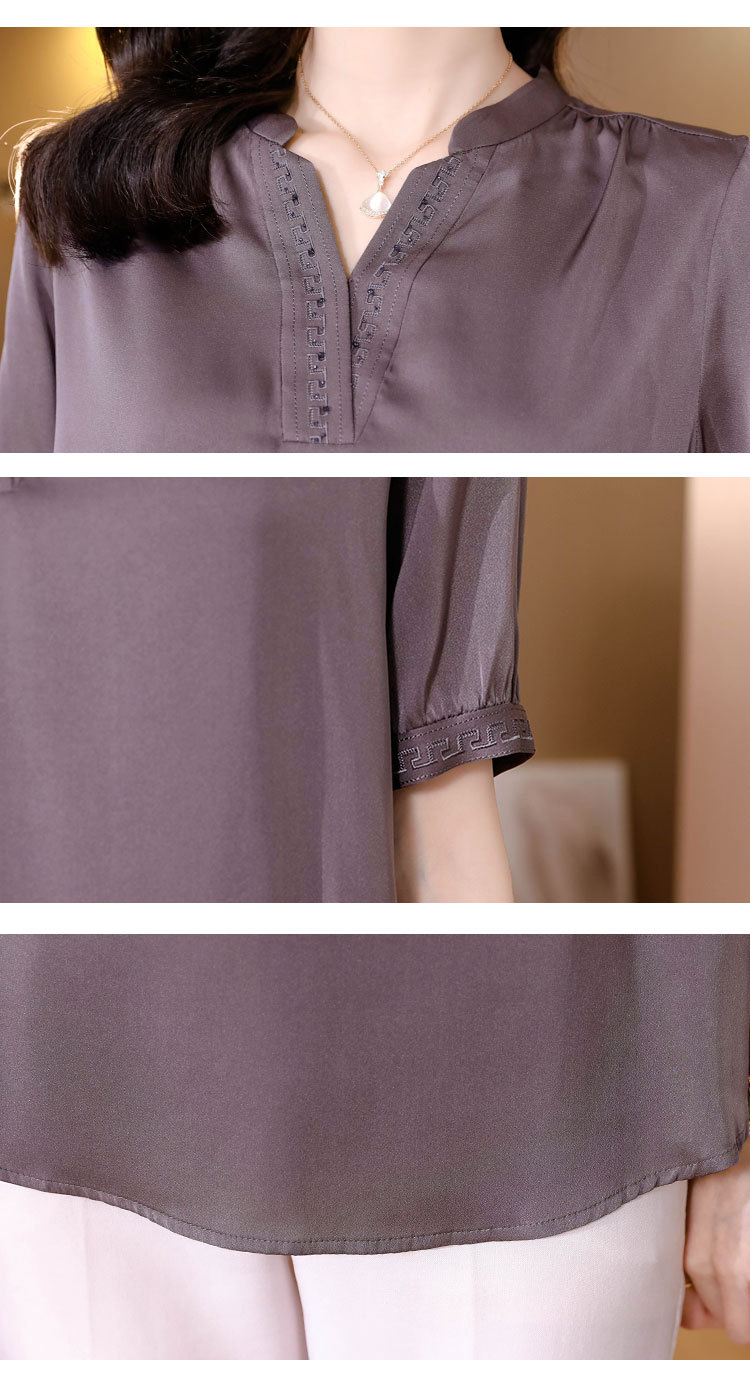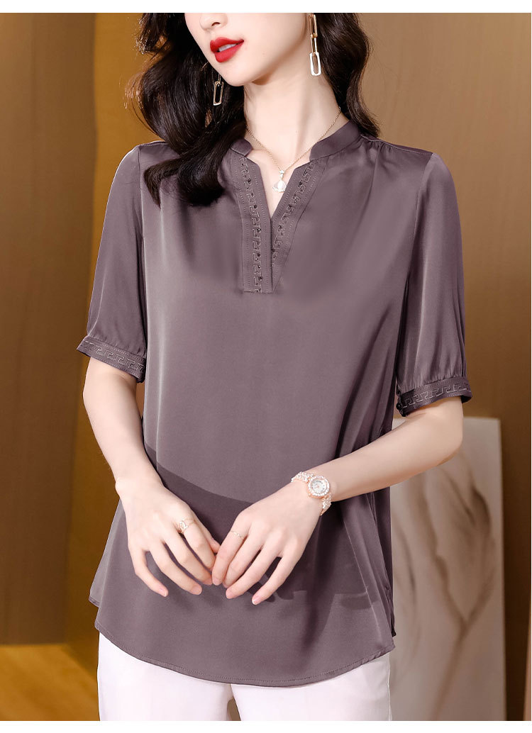 【MZ】2022重磅真丝衬衫女短袖中年妈妈宽松上衣中长款夏季新款桑蚕丝衬