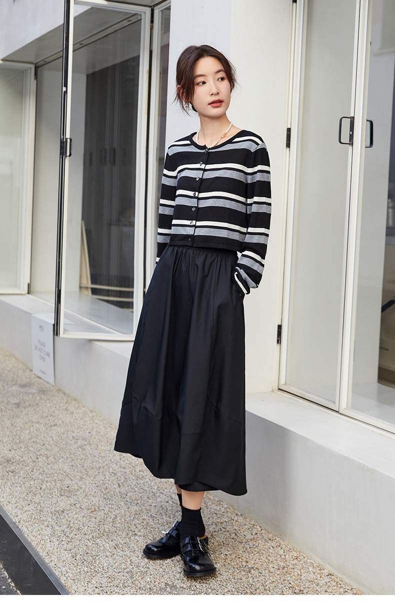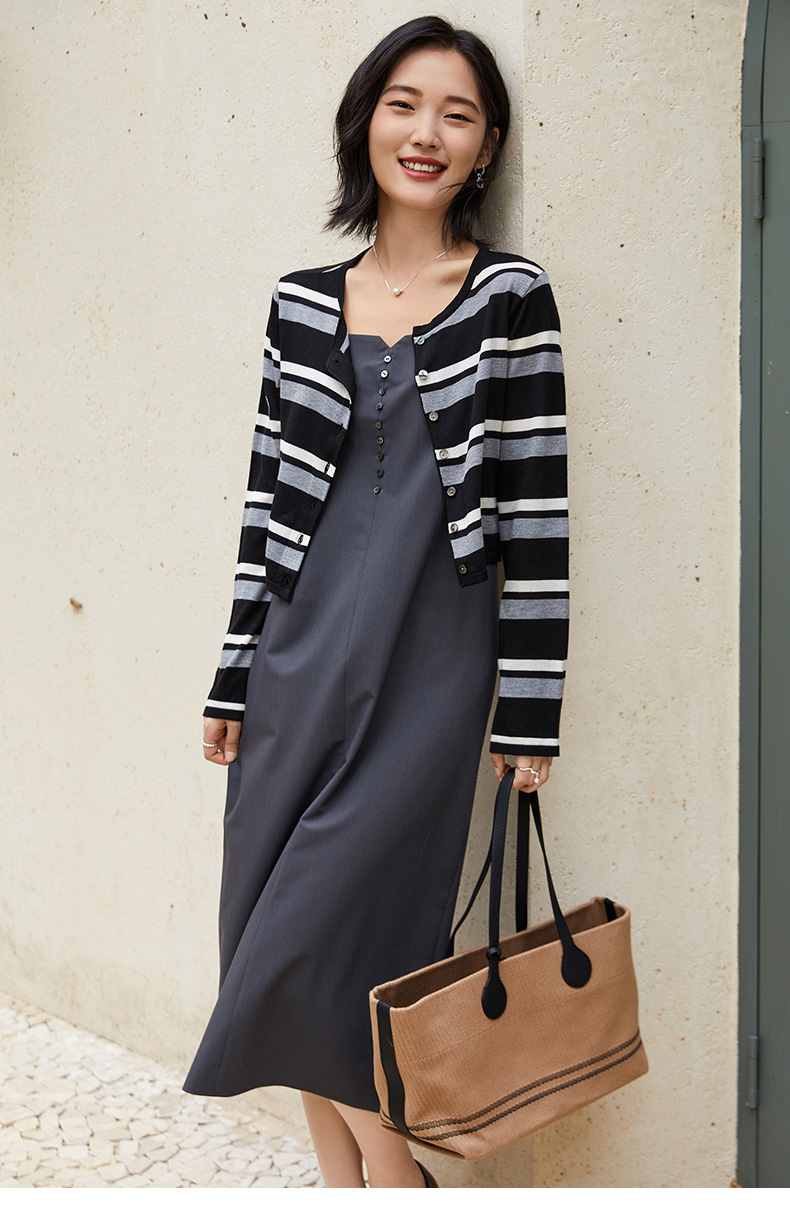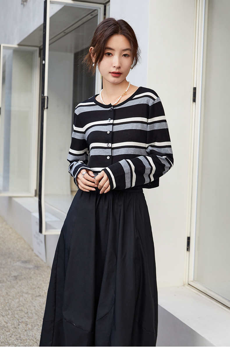 条纹控必入!黑白灰条纹针织开衫,复古又摩登
