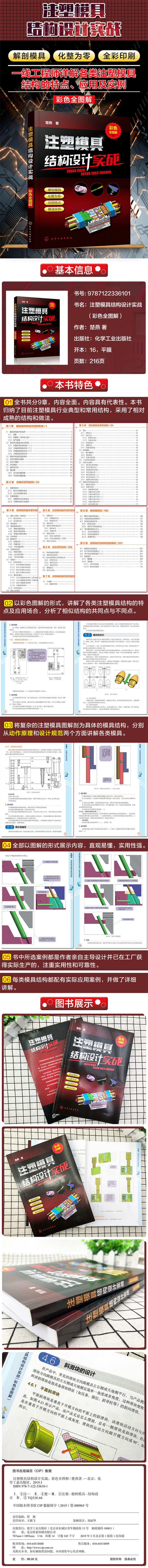 笔者经过在注塑模具行业十几年的积淀,在从按键手机模具,到汽车、家电等模具的设计和指导设计中积累了大量的经验,经过总结,把一些看似没有章法的东西,以一个较为系统的框架做了定义和规范。本书归纳了目前注塑模具行业典型和常用结构,舍弃了一些老旧的、风险性较高的结构,采用了相对成熟的结构和做法。在实际设计中,确定产品某处需要用某种结构时,可快速从本书中找出该结构的做法,并且知道其优缺点在哪里,以及如何规避容易犯错的地方。