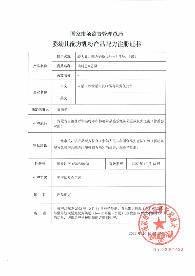 蒙牛瑞哺恩恩至2段较大婴儿配方奶粉 800g(2022版)