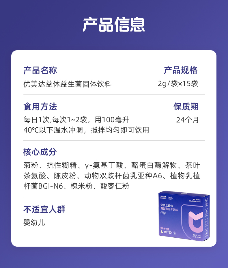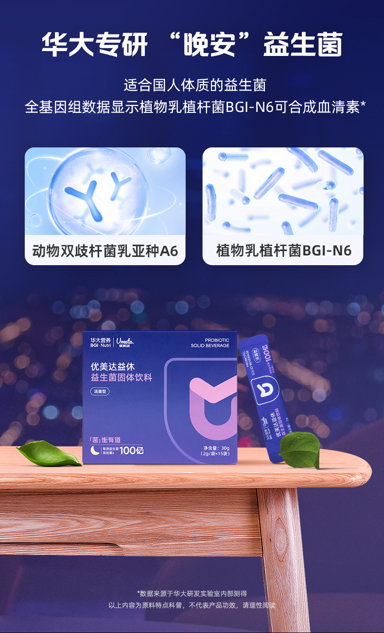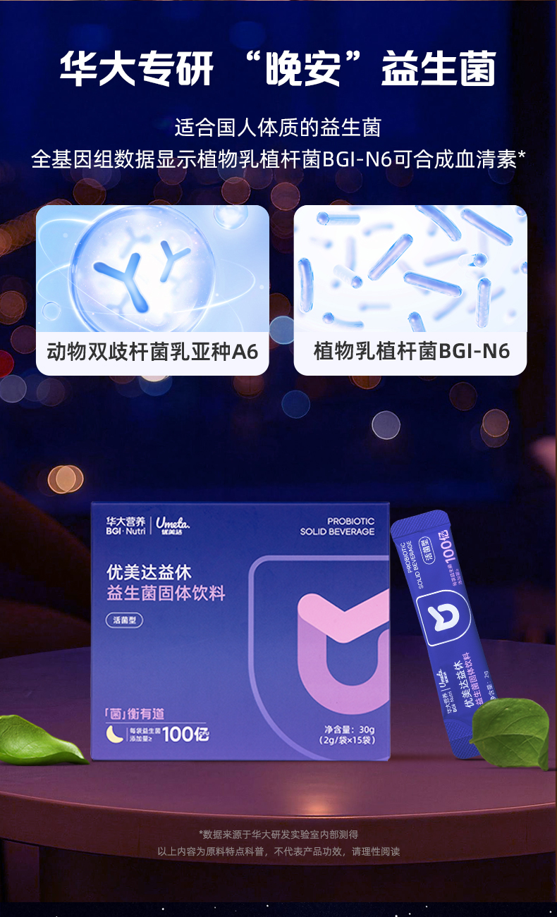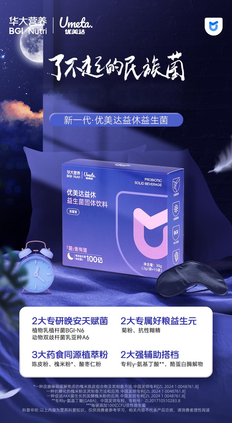 【益休益生菌晚安饮】华大优美达益休益生菌 轻松好眠 酣睡入梦 睡眠晚安饮组合 益休益生菌15袋/盒