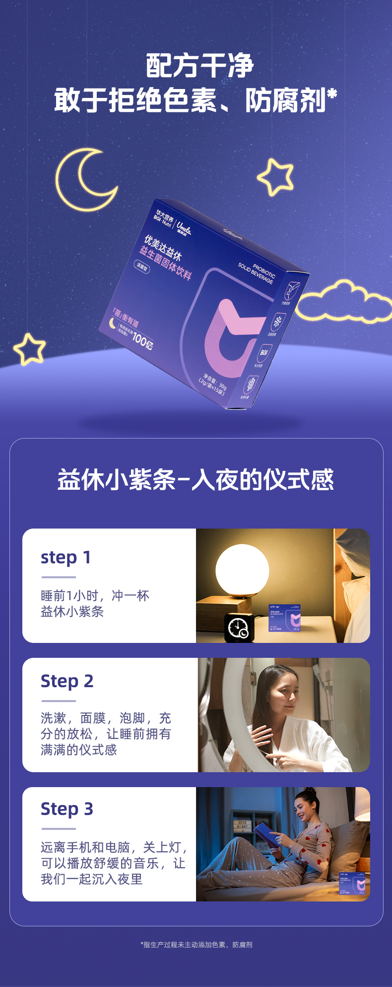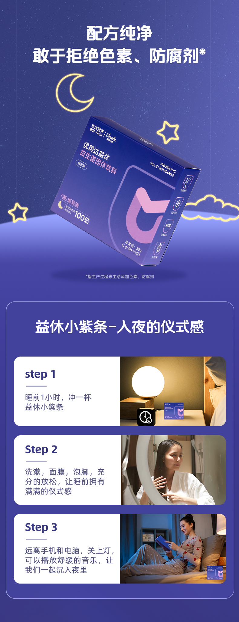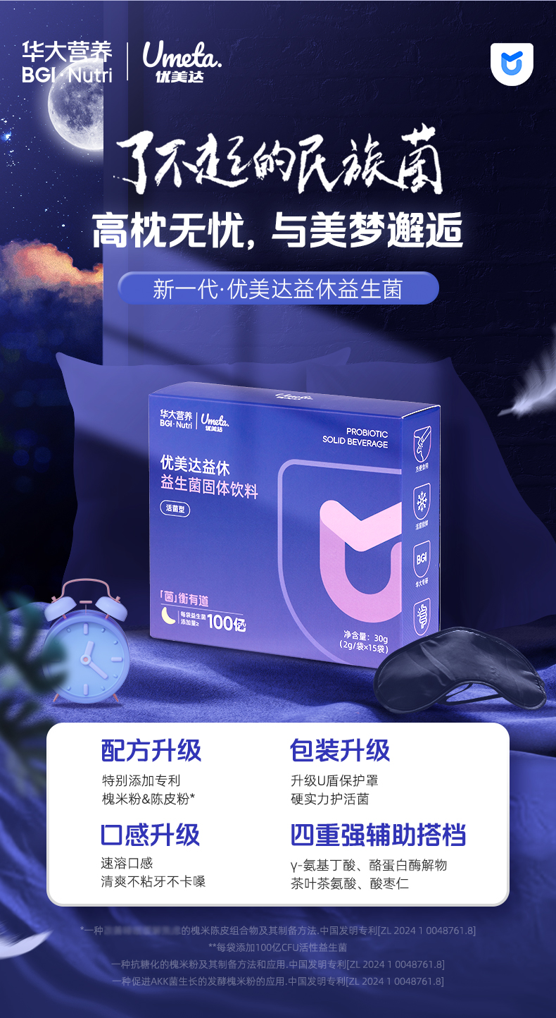【益休益生菌晚安饮】华大优美达益休益生菌 轻松好眠 酣睡入梦 睡眠晚安饮组合 益休益生菌15袋/盒