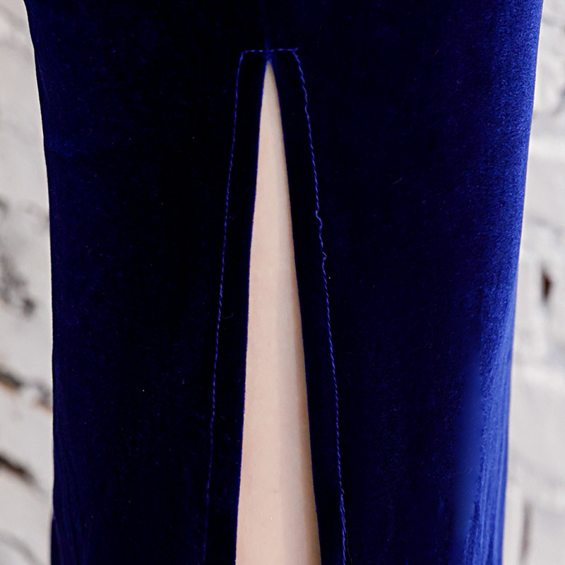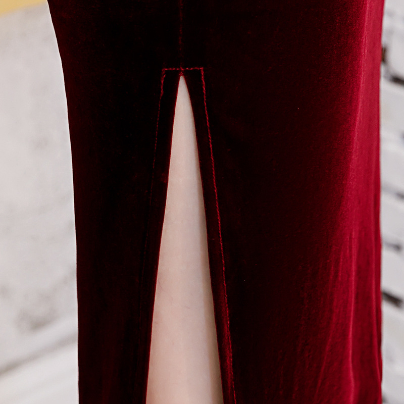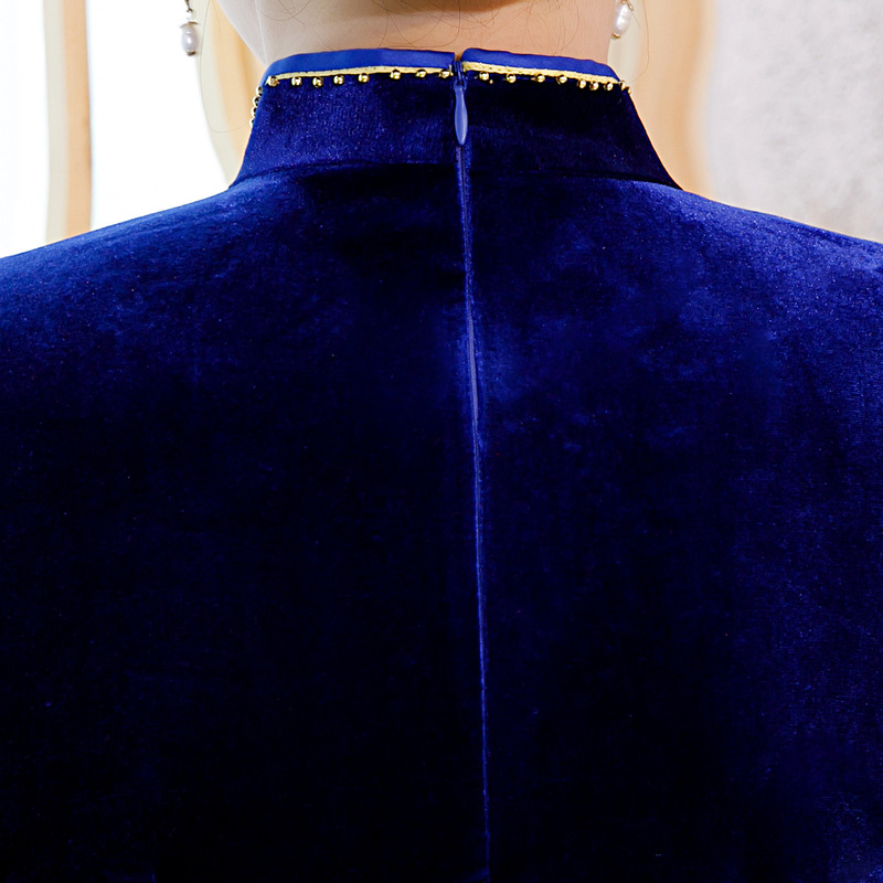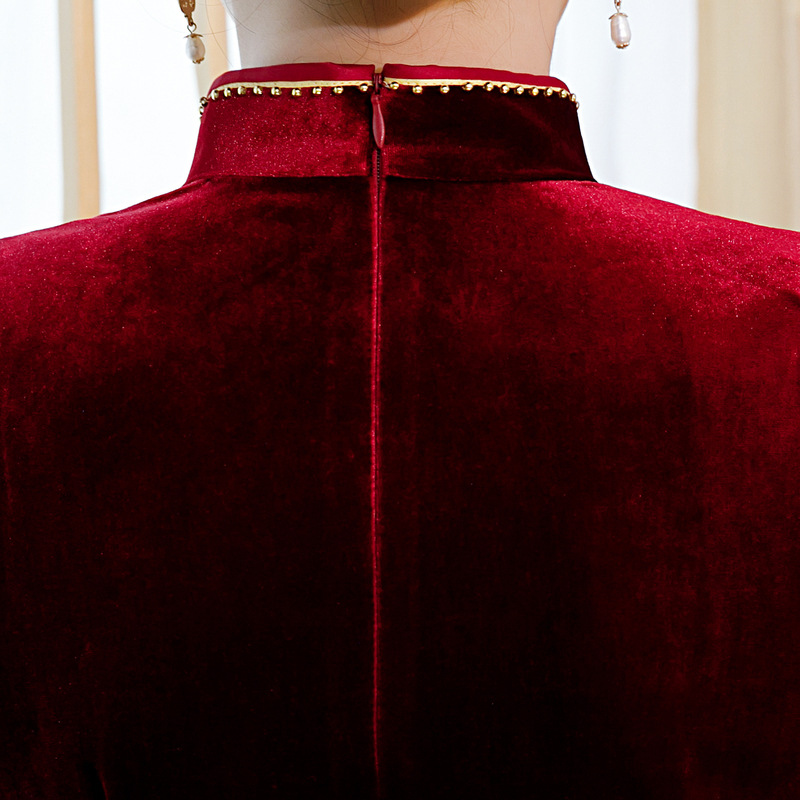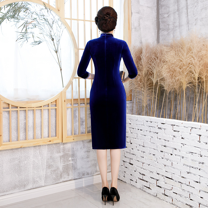 ZAYS-亮晶晶 金丝绒钉珠中长七分袖旗袍日常宴会礼服复古立领连衣裙旗袍