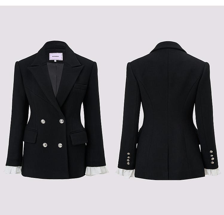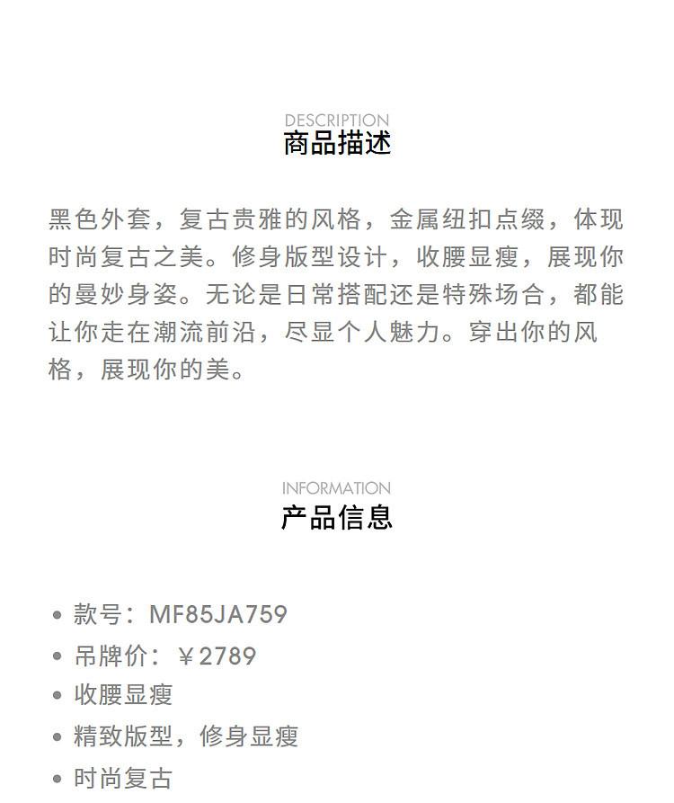 MAXRIENY时尚复古金属纽扣收腰修身黑色外套女
