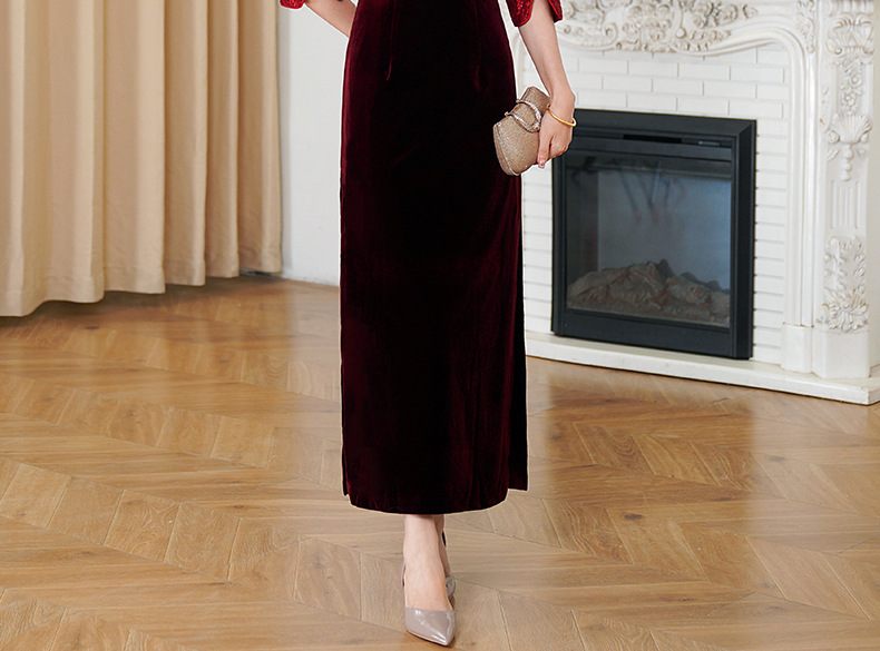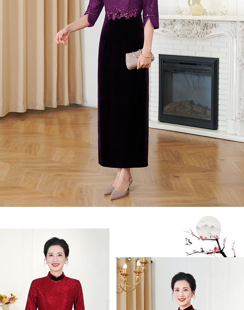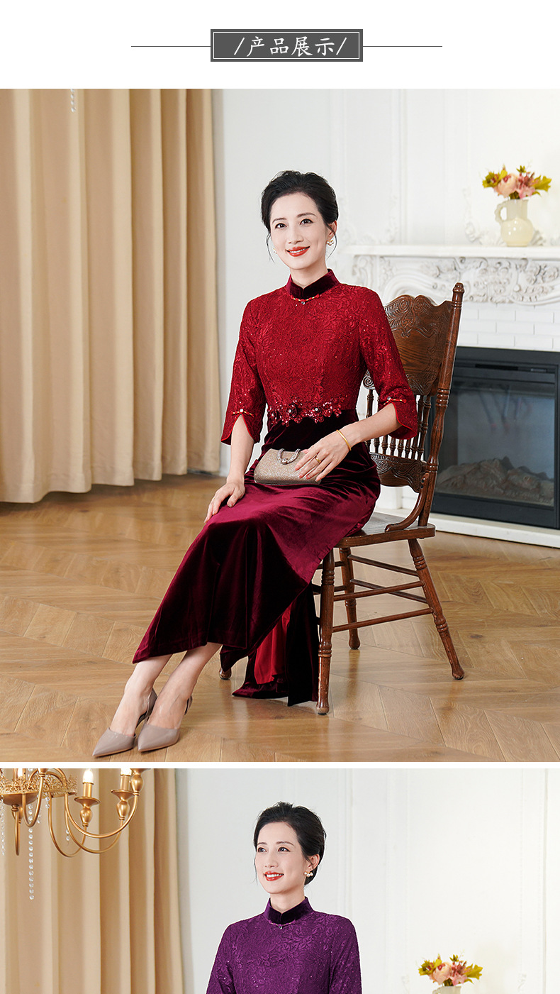 HYX秋装新款高级感旗袍连衣裙婚礼国潮婚宴装气质