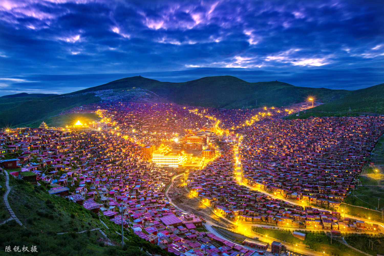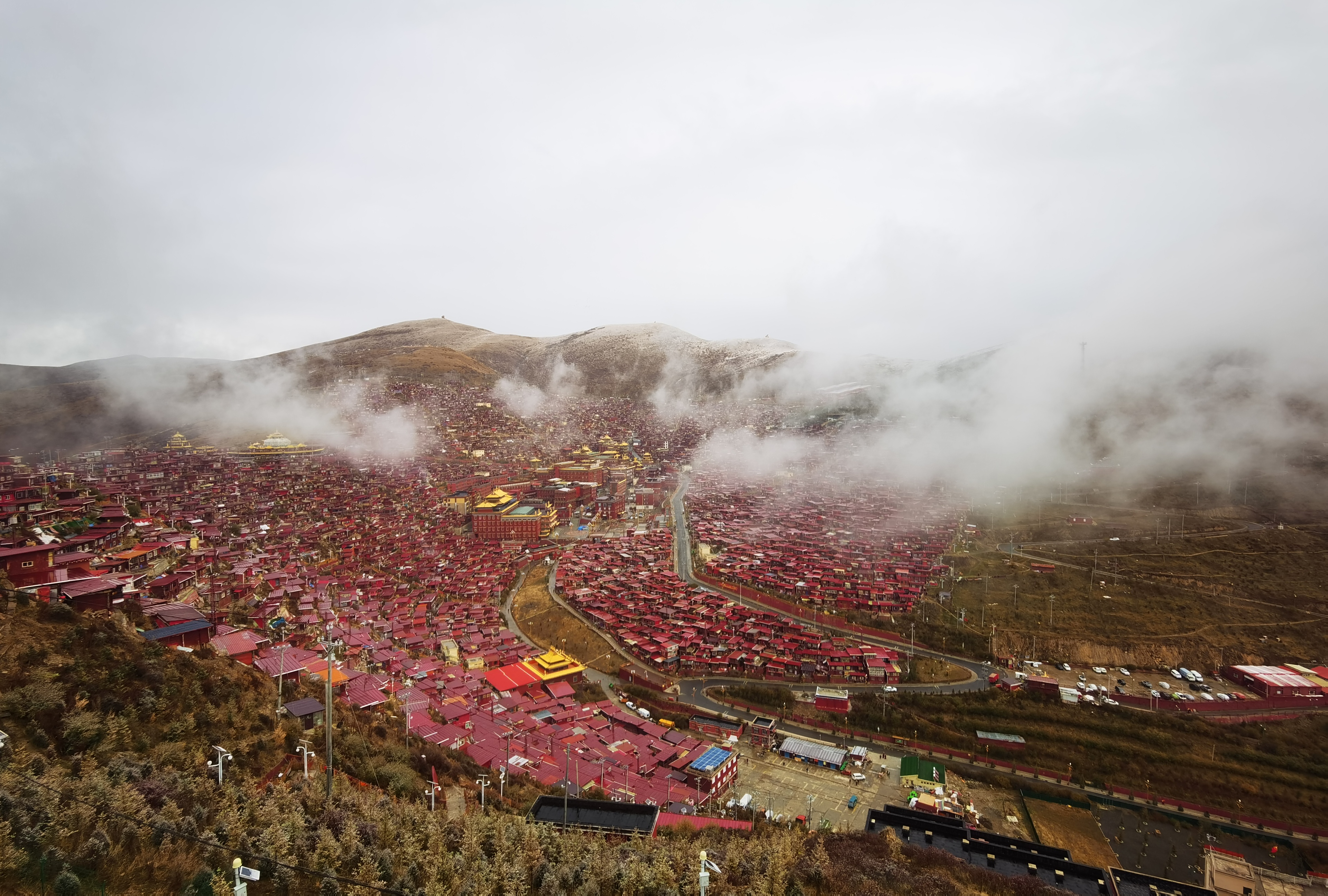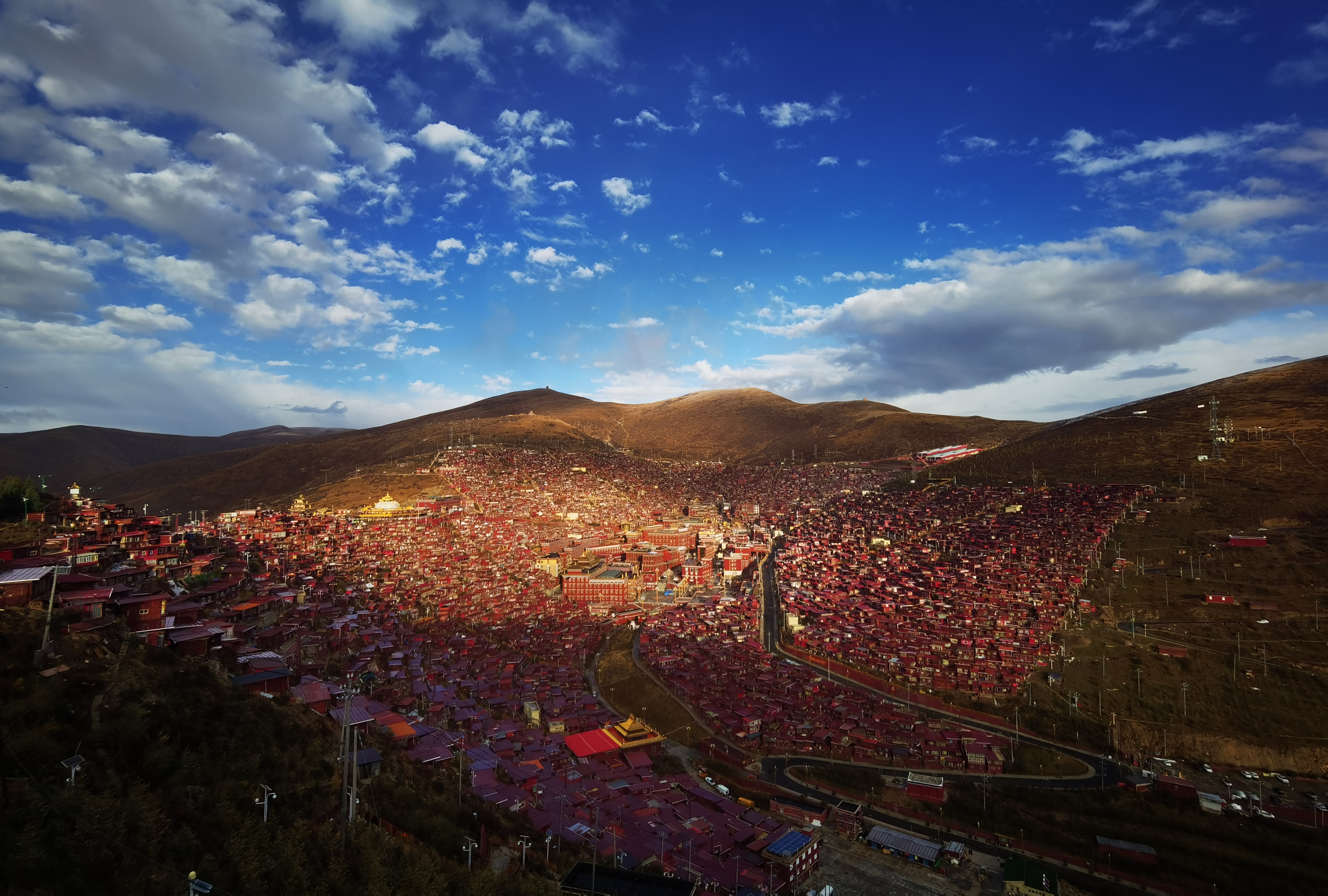 早上沿途拍摄梭磨河彩林,然后先前往全世界最大的“色达喇荣五明佛学院”。如果当天寺院有活动, 傍晚前往拍摄学院僧人辩经。随后拍摄佛学院全景、晚霞和夜景。
