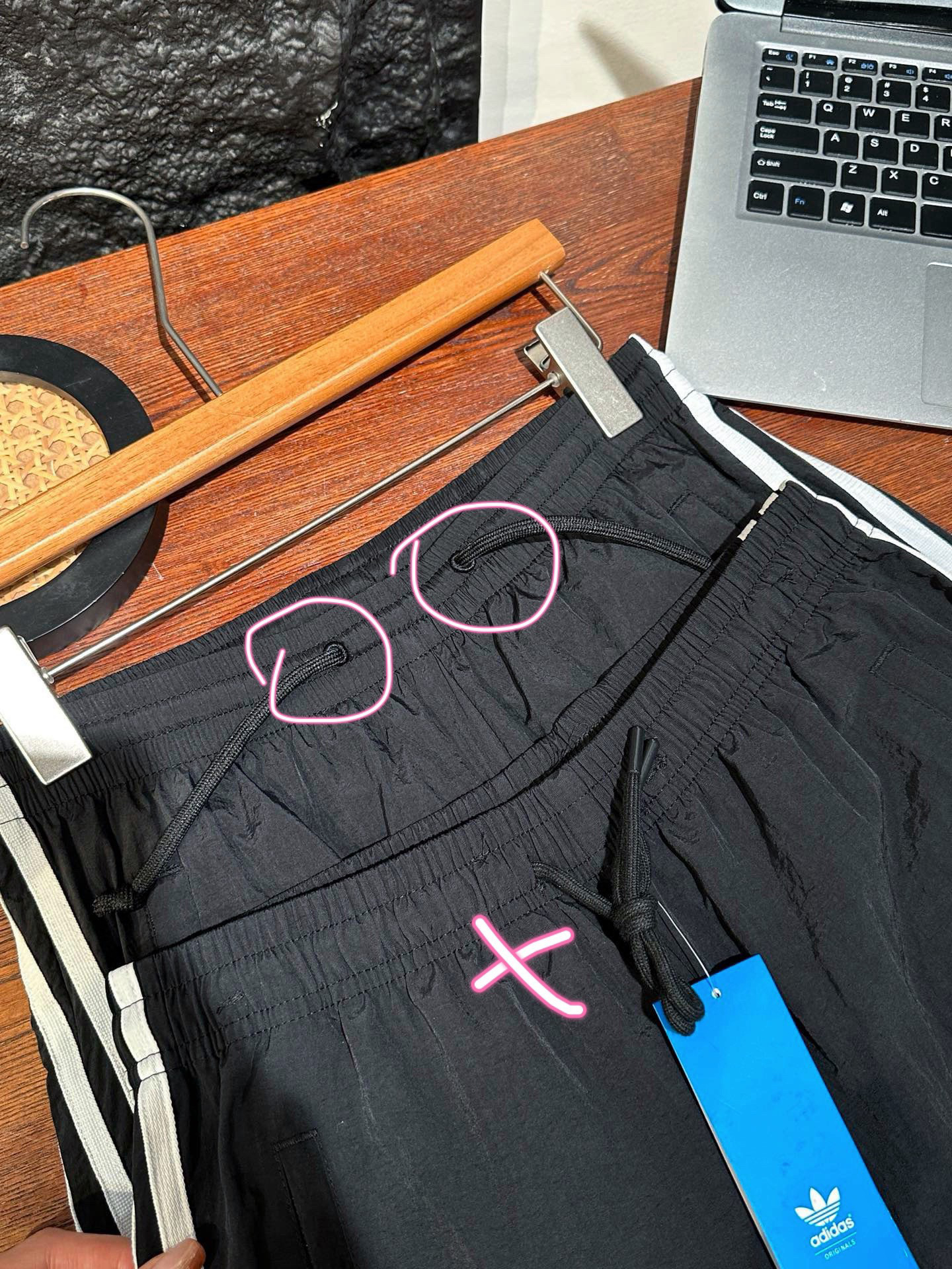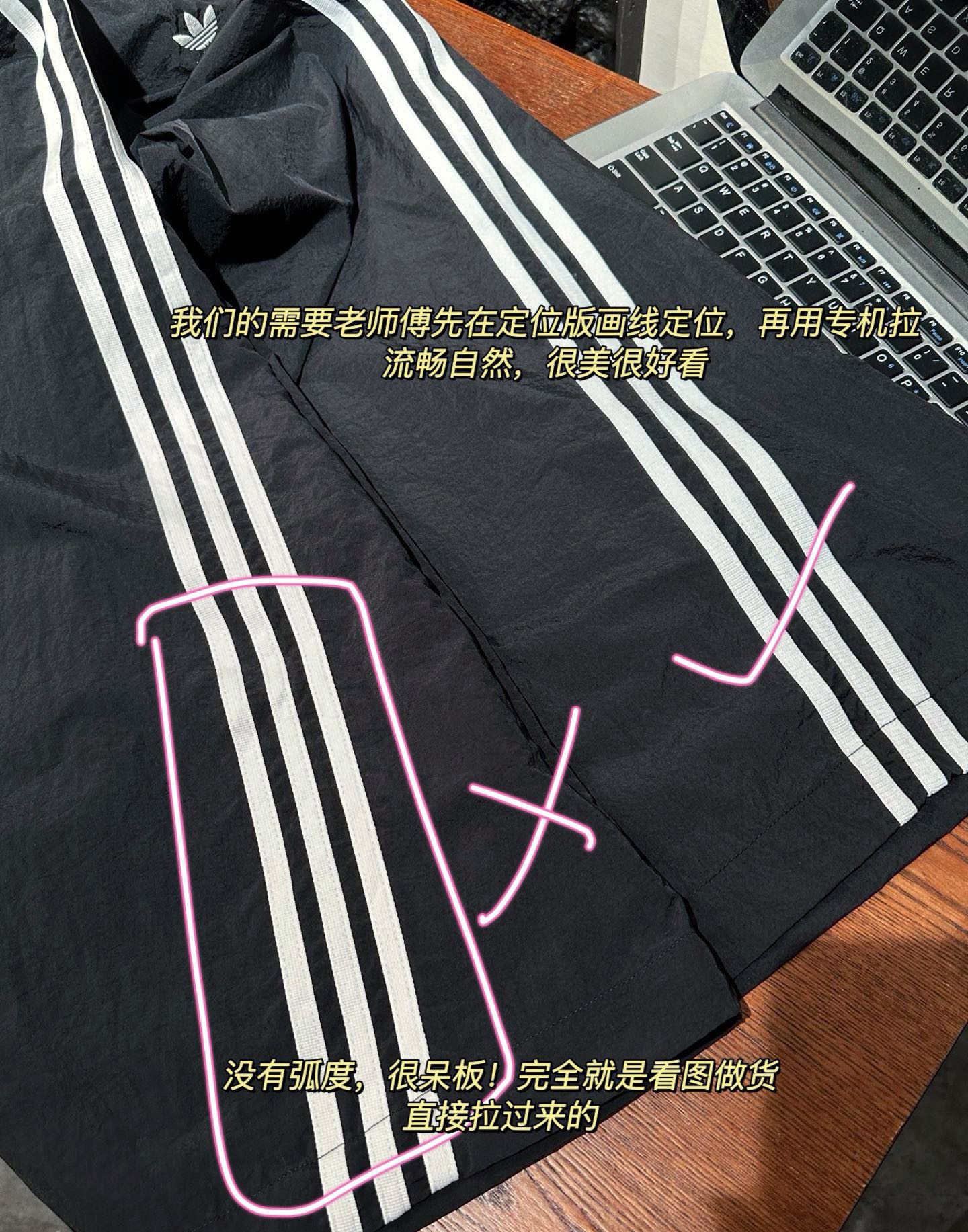 重点看‼️织带 整条裤子的灵魂,从裤长到三道杠的弧度再到内里抽绳细节,都差别很大