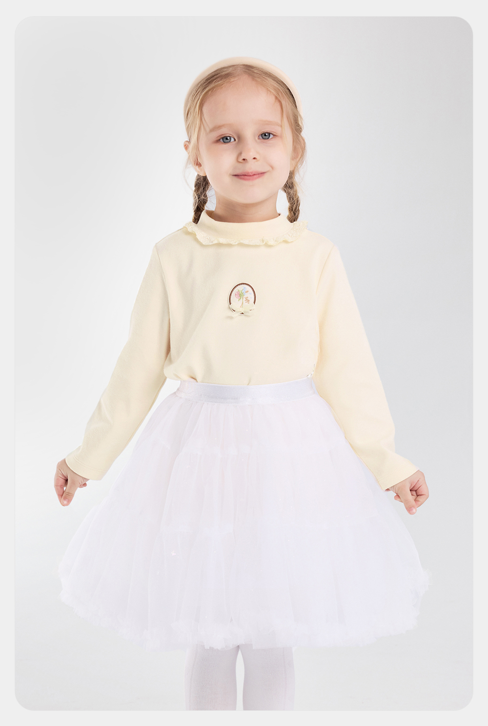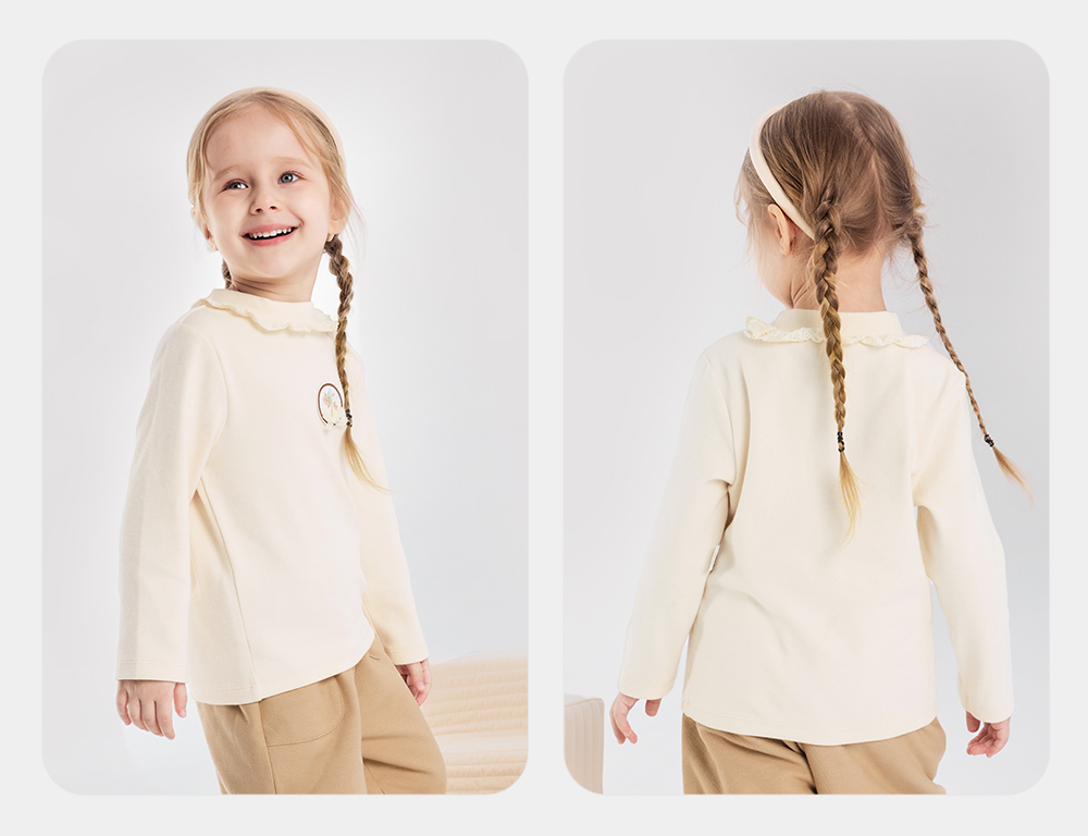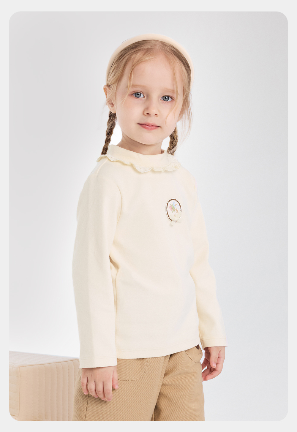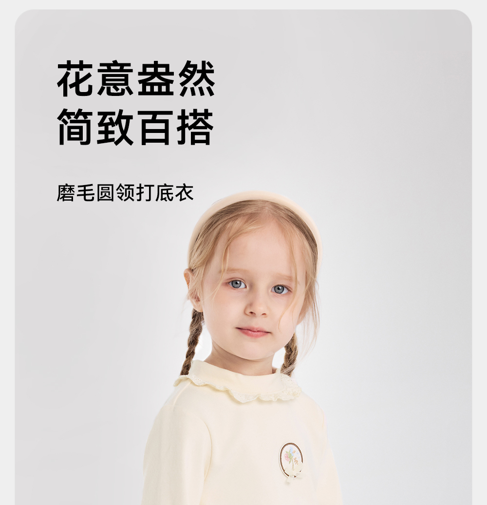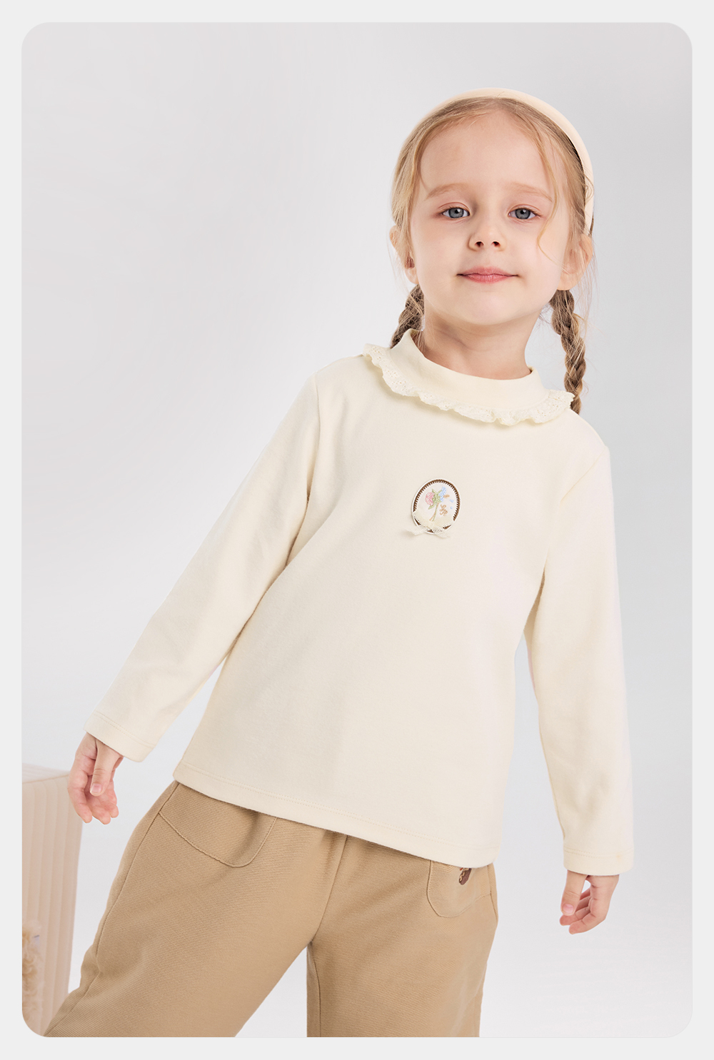 【商场同款】英氏儿童套头衫秋季长袖女童纯色打底衫圆领上衣T恤