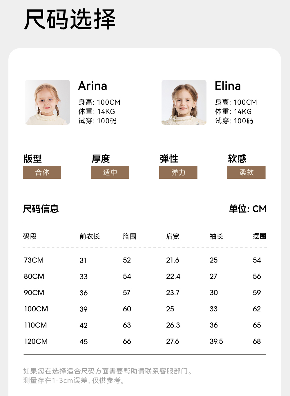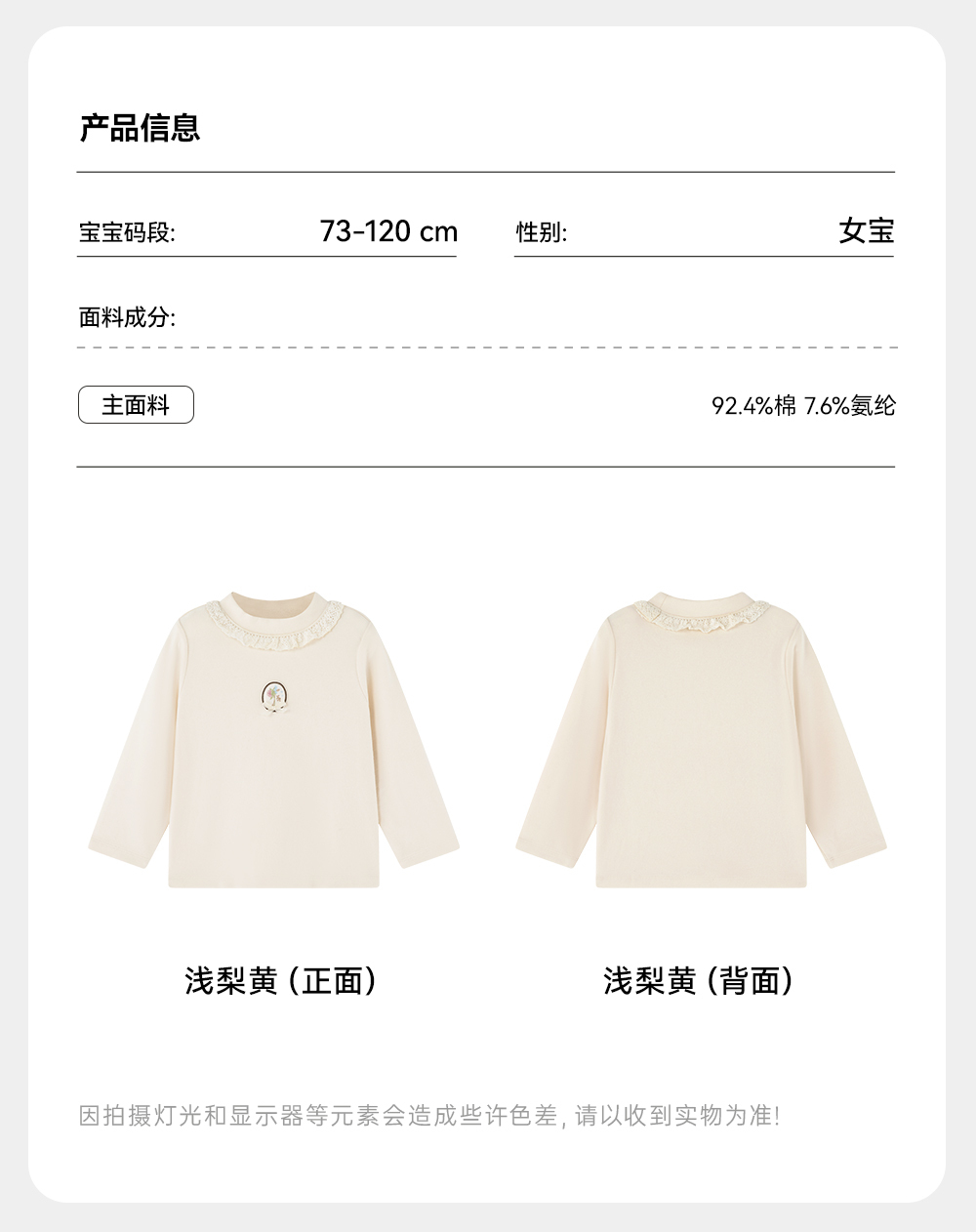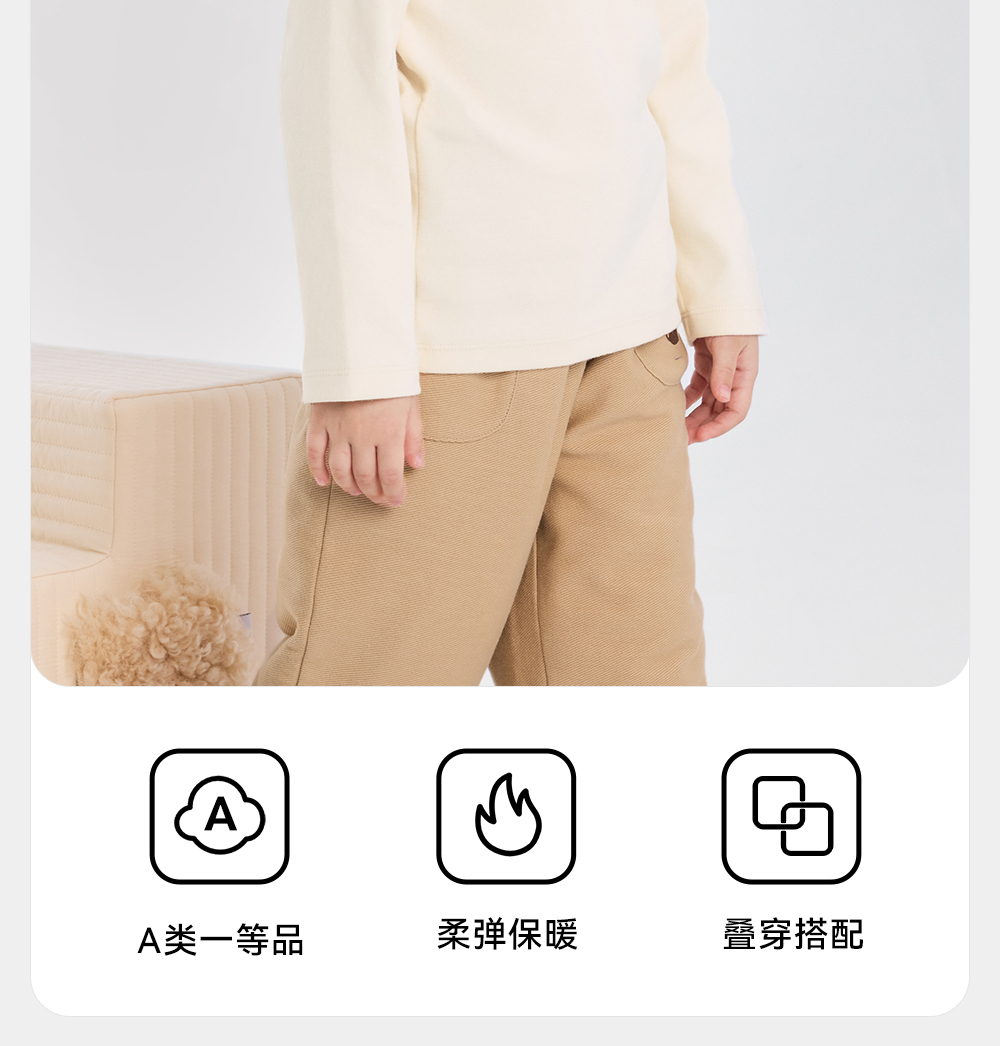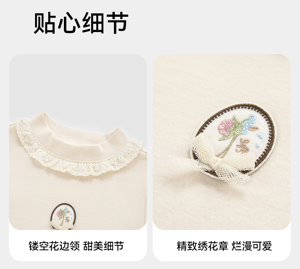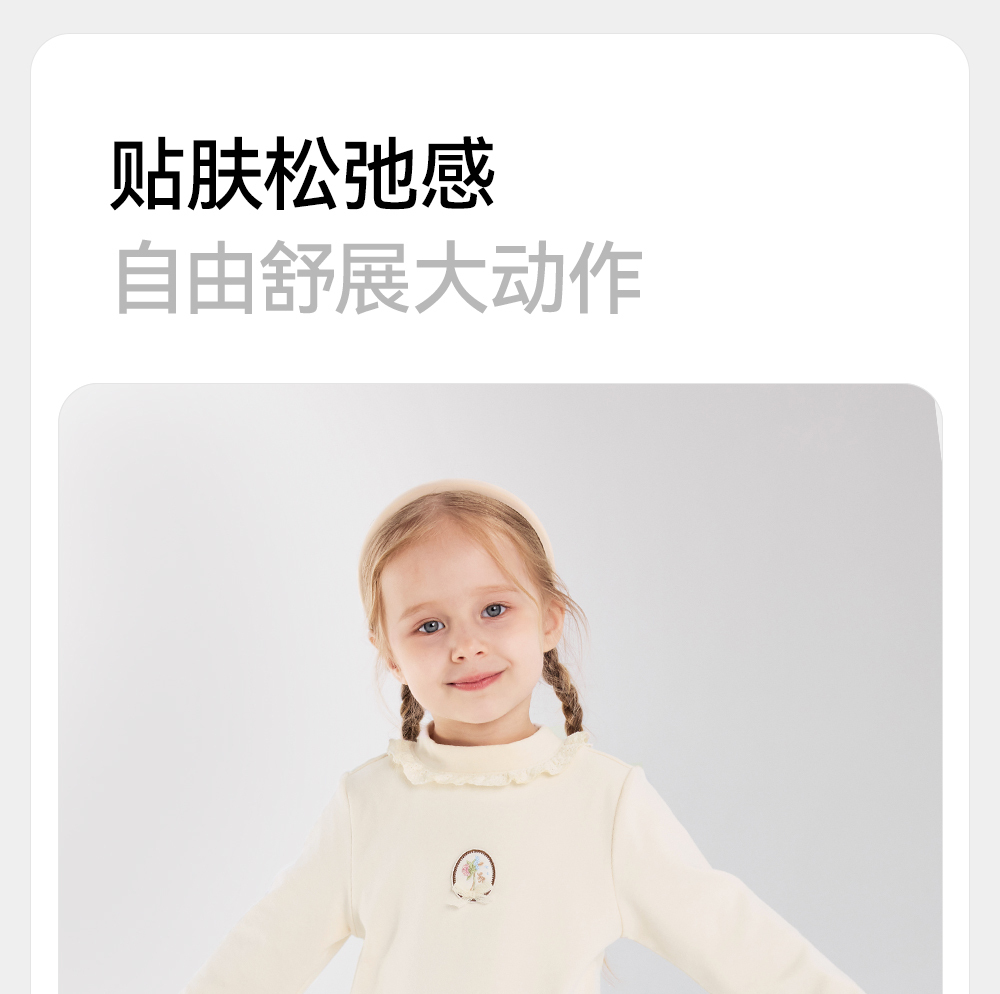 【商场同款】英氏儿童套头衫秋季长袖女童纯色打底衫圆领上衣T恤