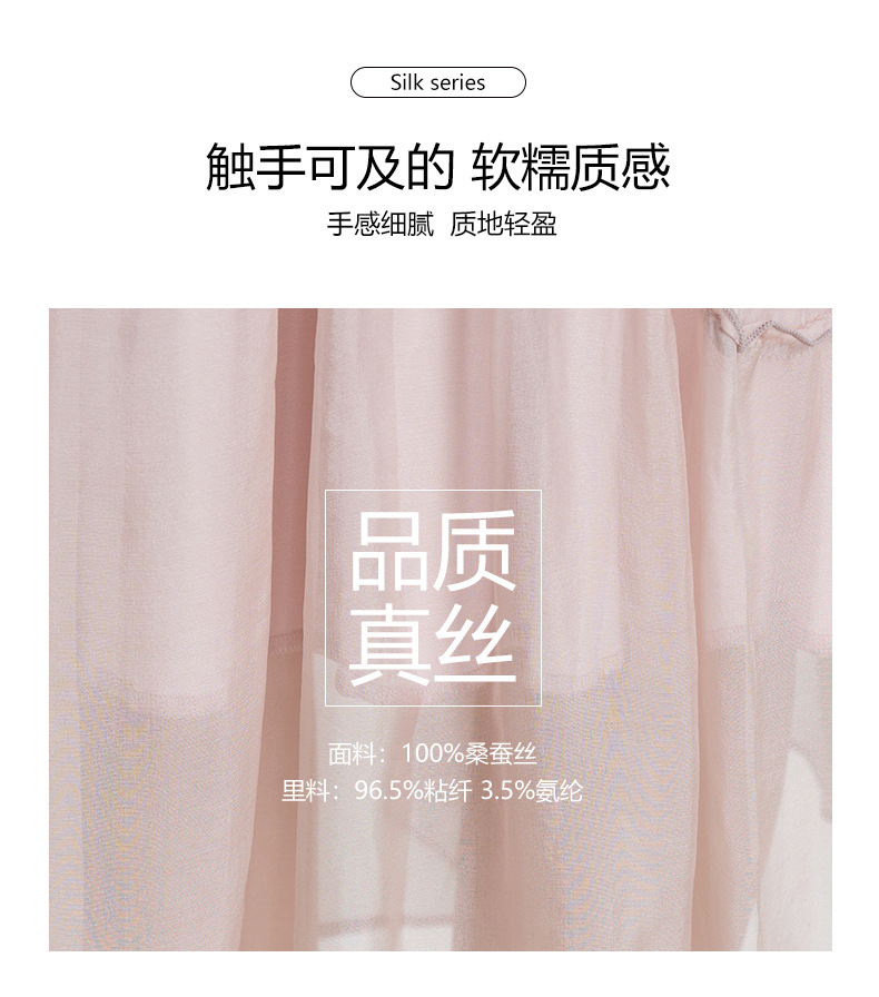 面料:100%桑蚕丝,里料96.5%粘纤,3.5%氨纶