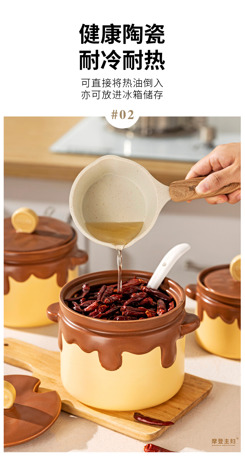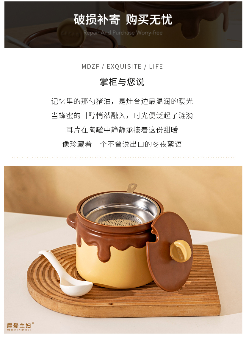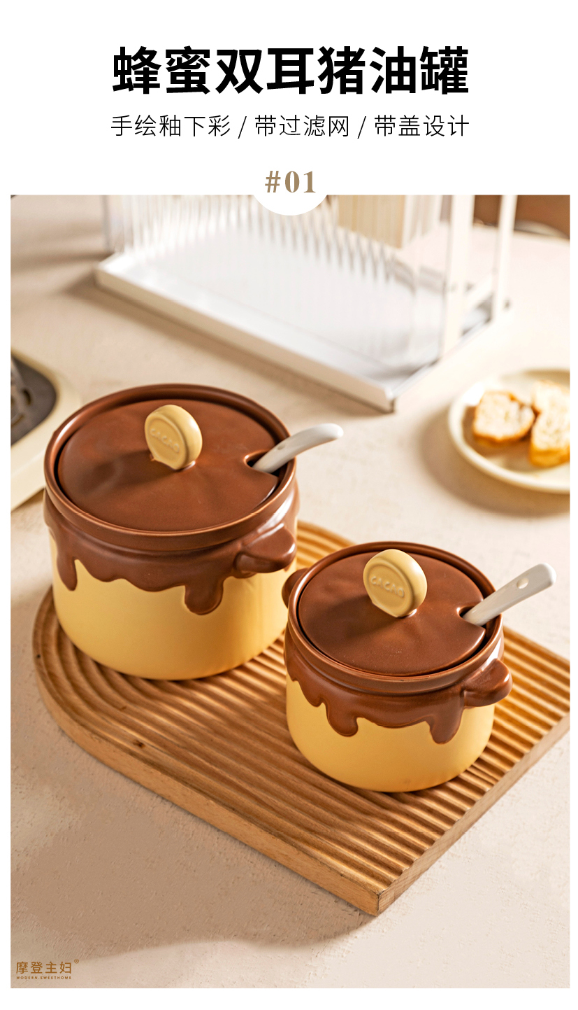 摩登主妇蜂蜜双耳猪油罐家用陶瓷耐高温食品级辣椒罐油泼辣子荤油专用罐子