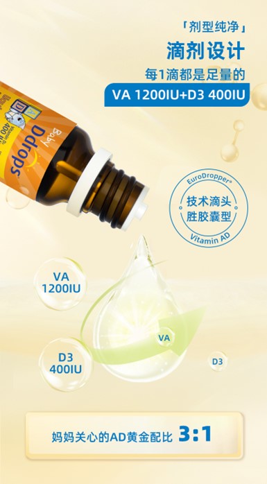 Ddrops滴卓思婴儿维生素AD滴剂 AD同补营养均衡 DD小滴瓶W
