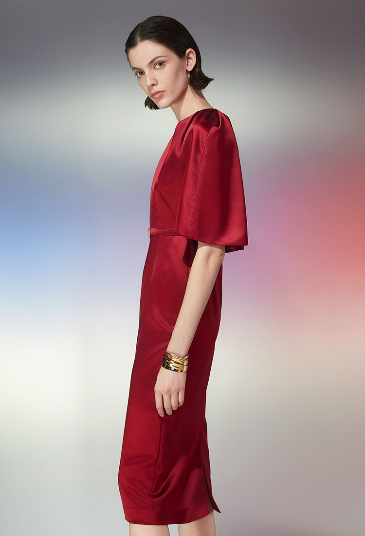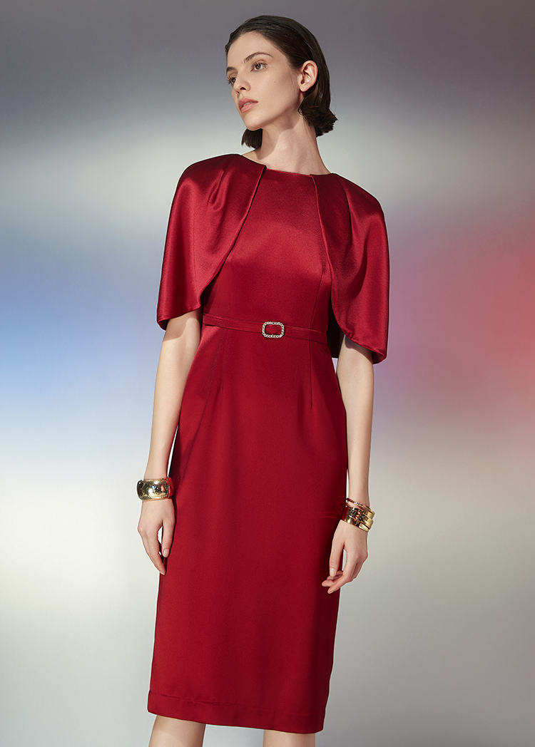 EITIE爱特爱夏季新款时尚斗篷修身显瘦优雅礼服连衣裙7777406