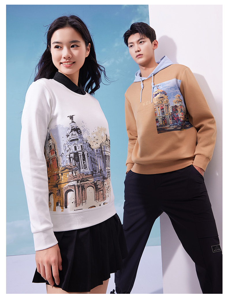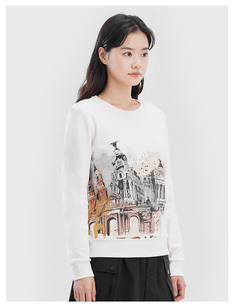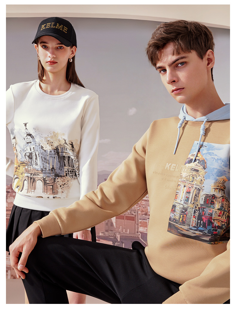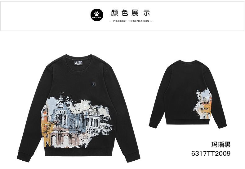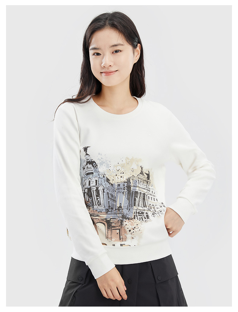 卡尔美春季女式圆领卫衣套头衫马德里印花