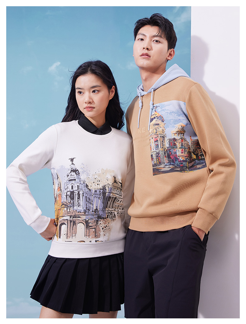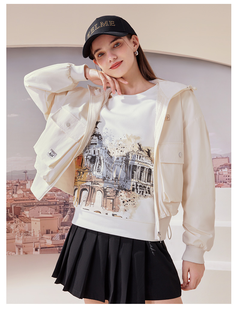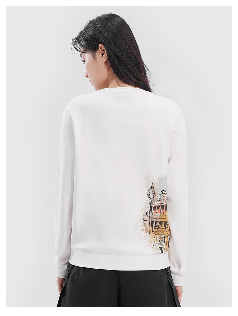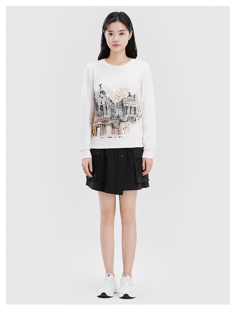 卡尔美春季女式圆领卫衣套头衫马德里印花